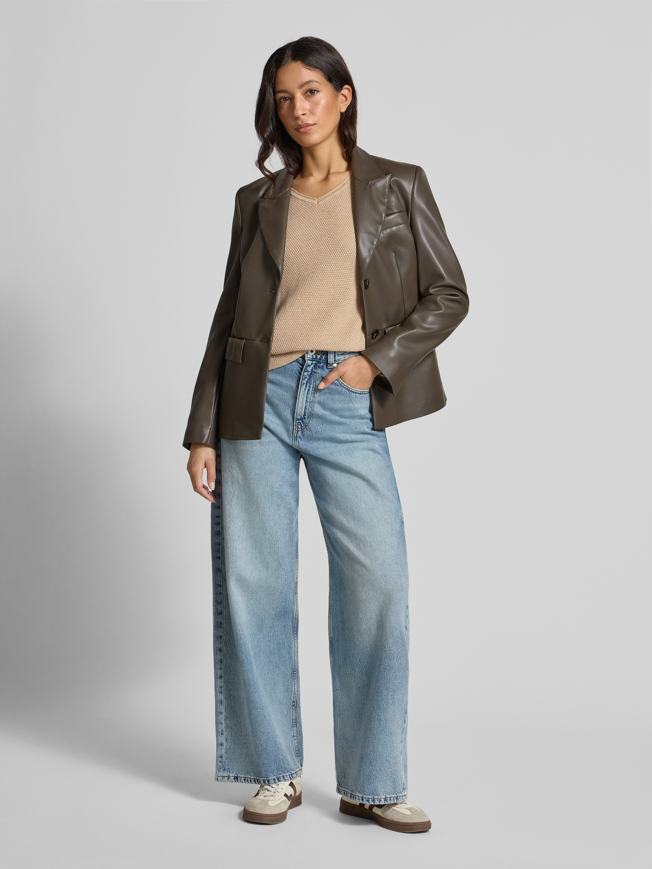 Żakiet o kroju slim fit z imitacji skóry z kieszeniami z patką
