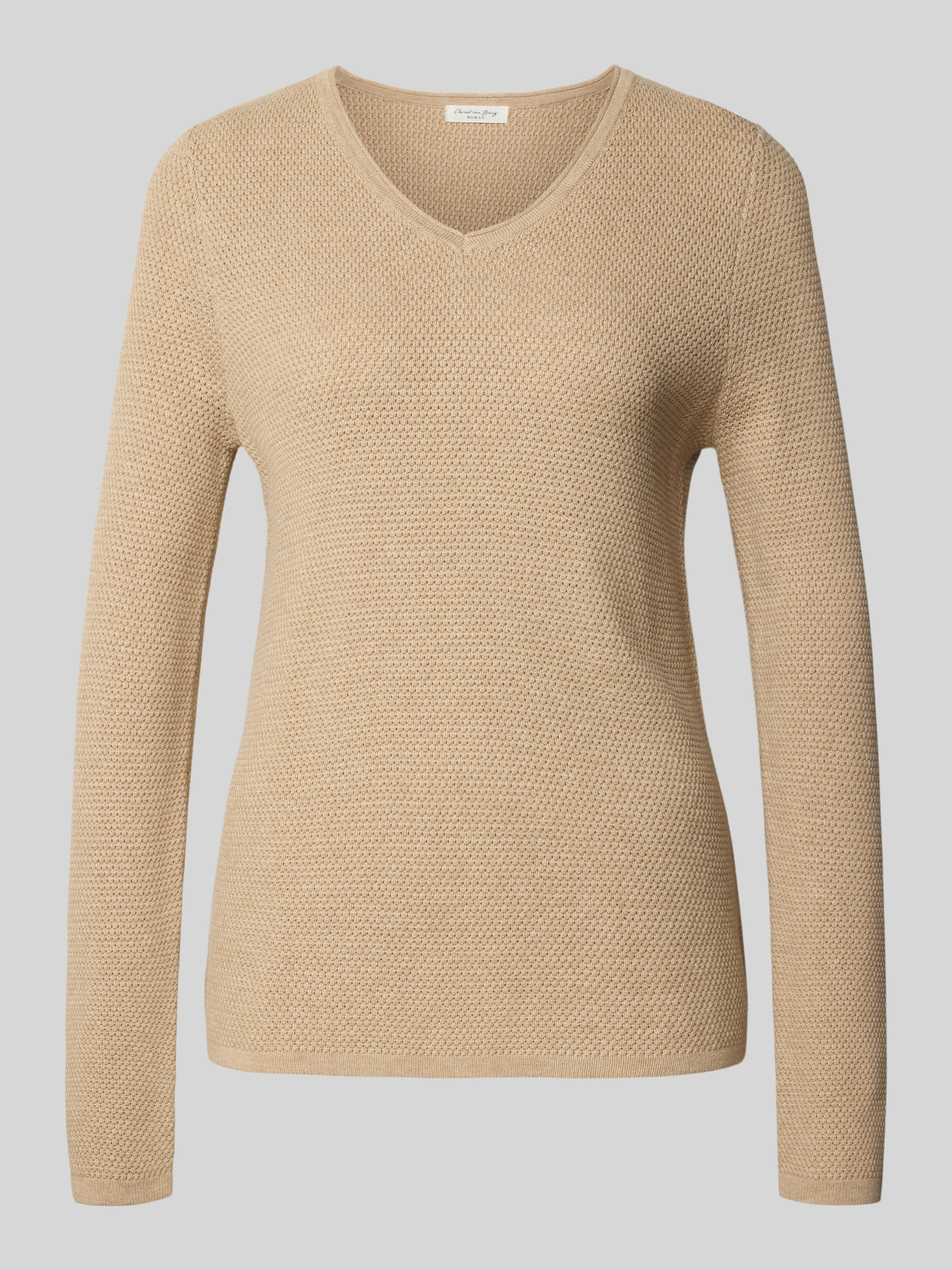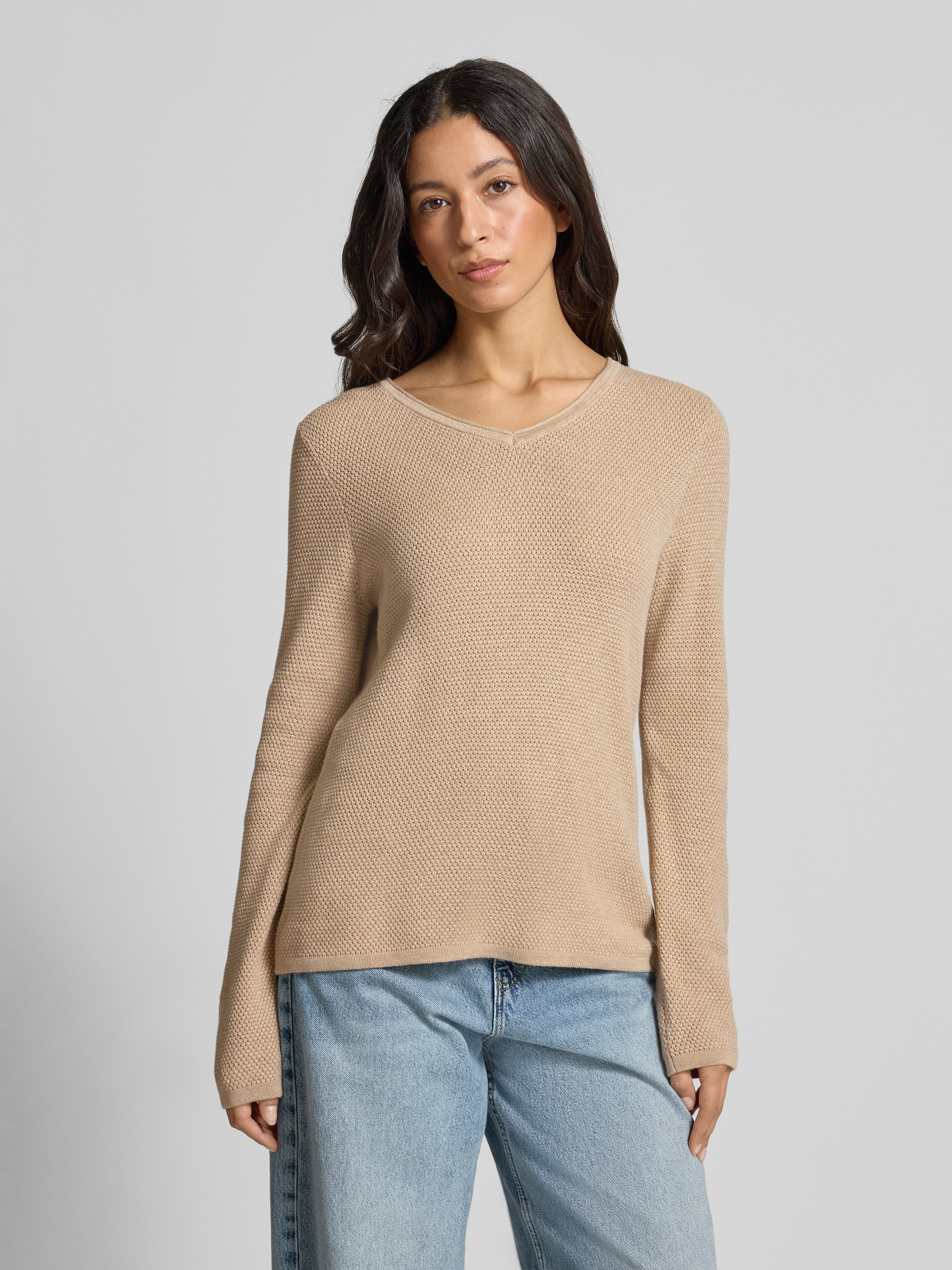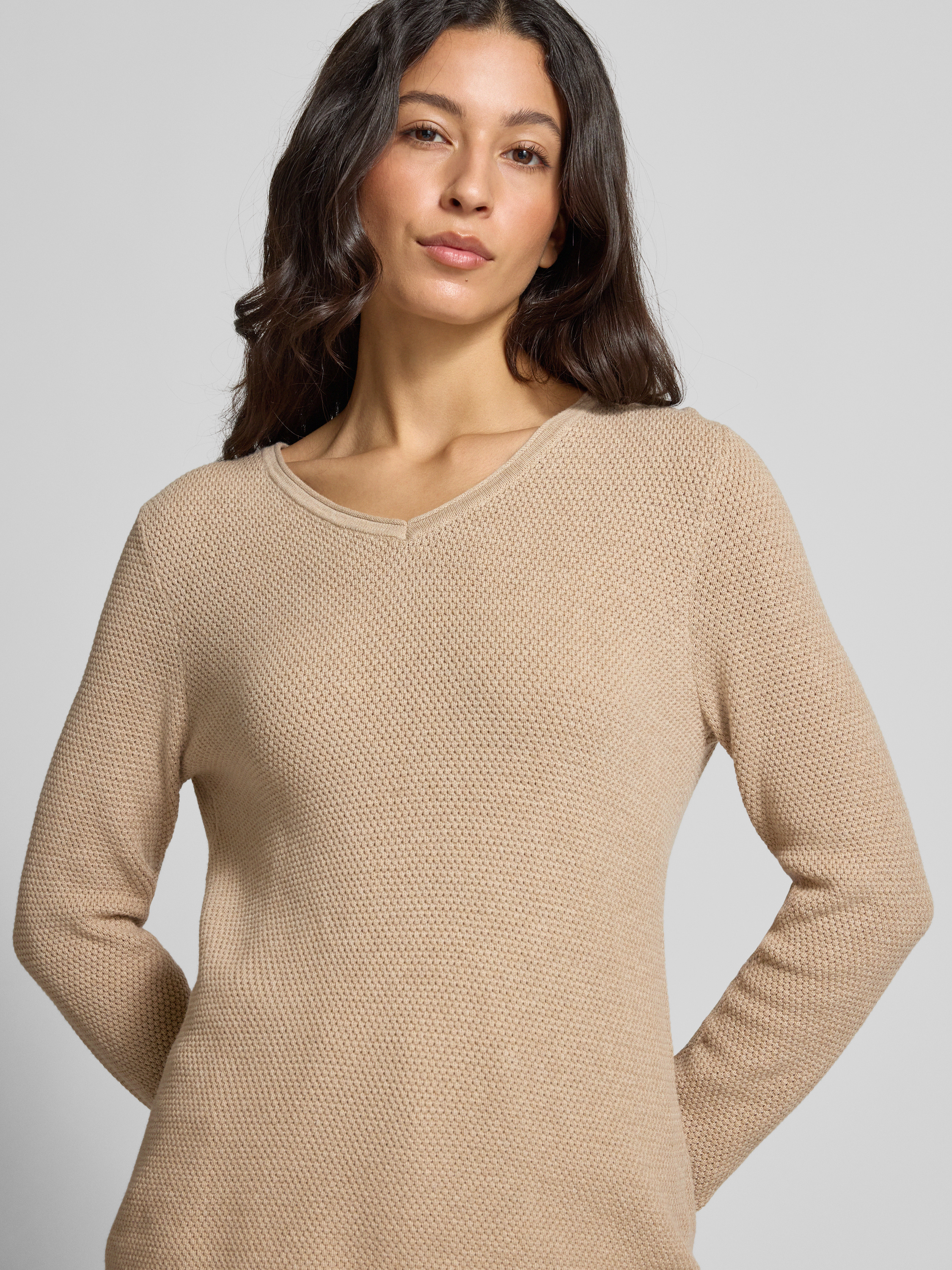 Sweter z dzianiny z dekoltem w serek - piaskowy melanż