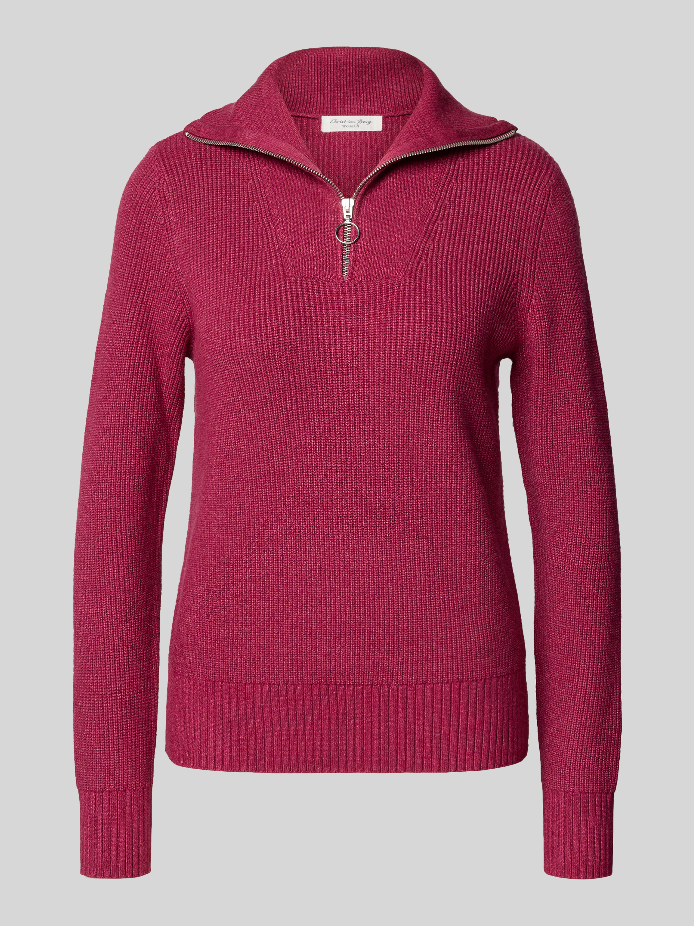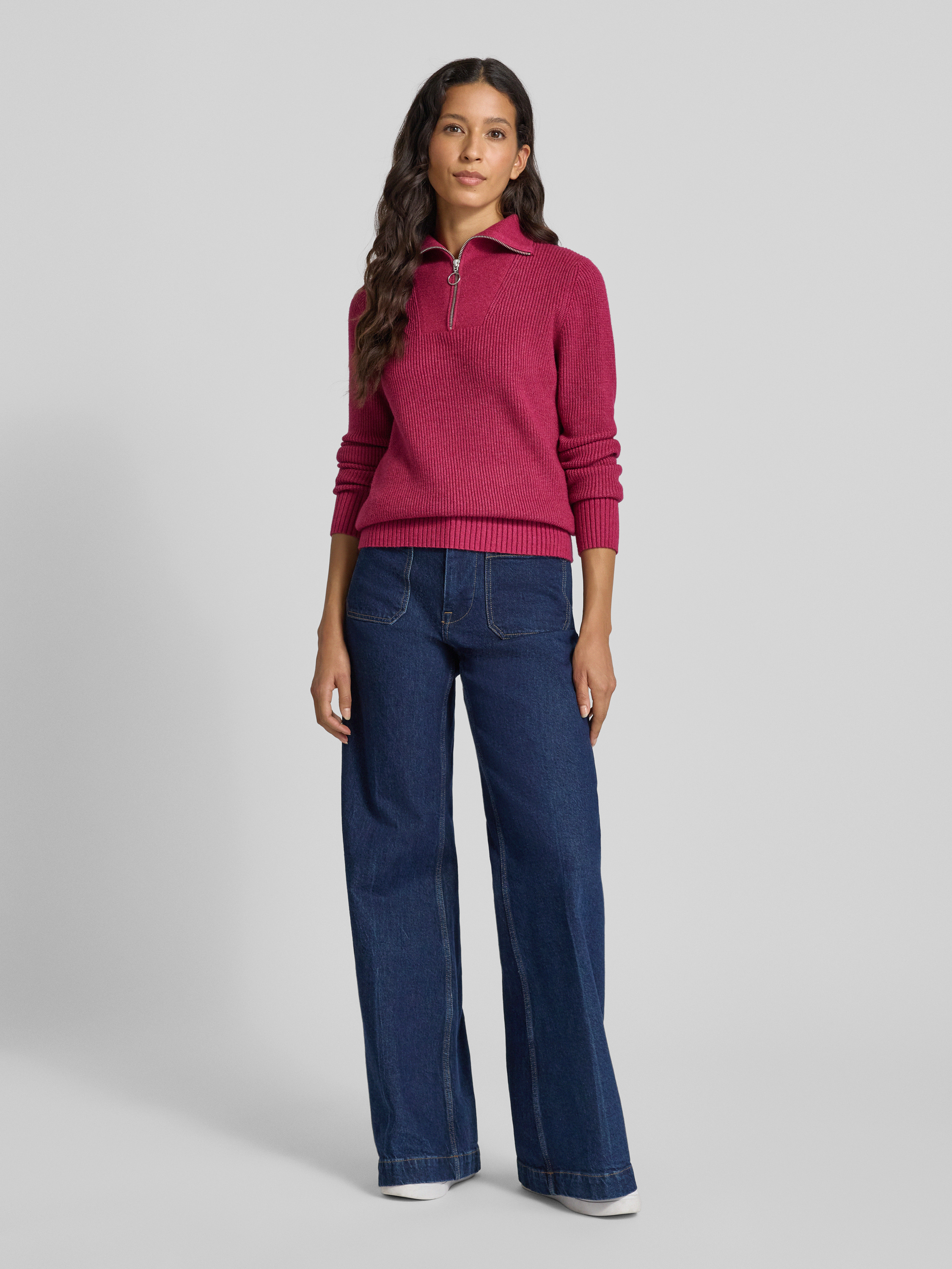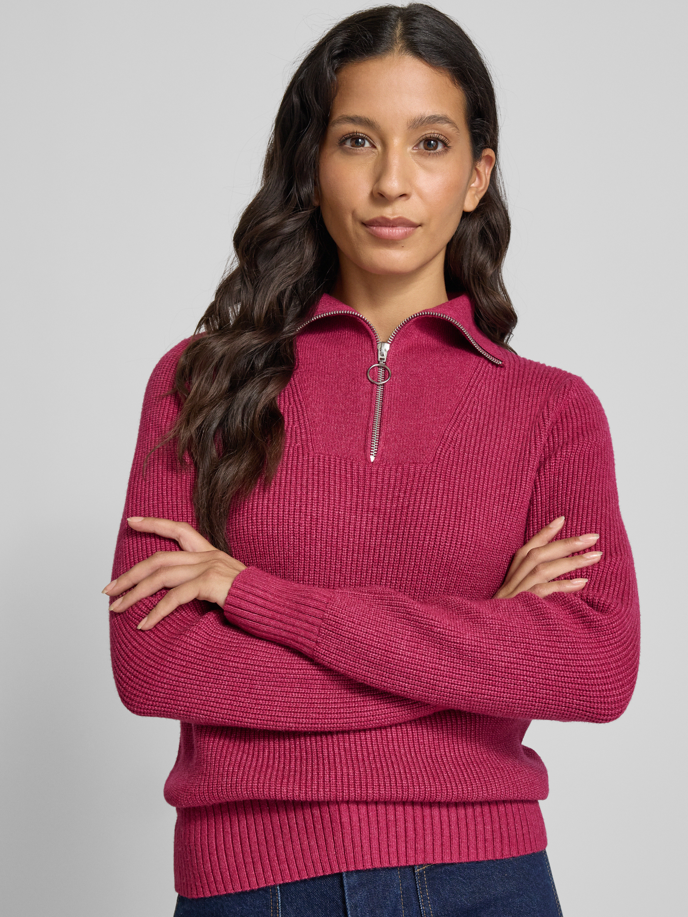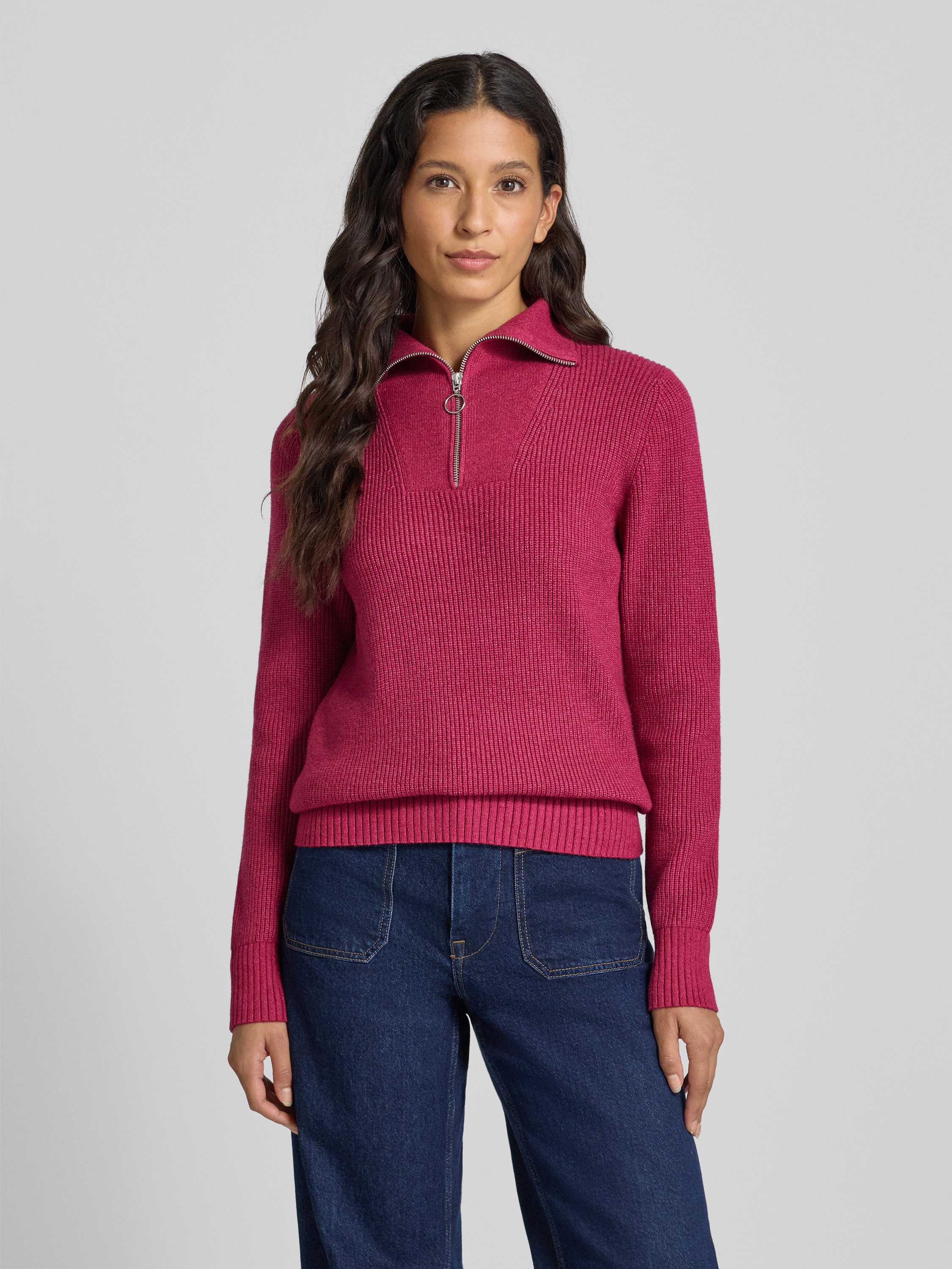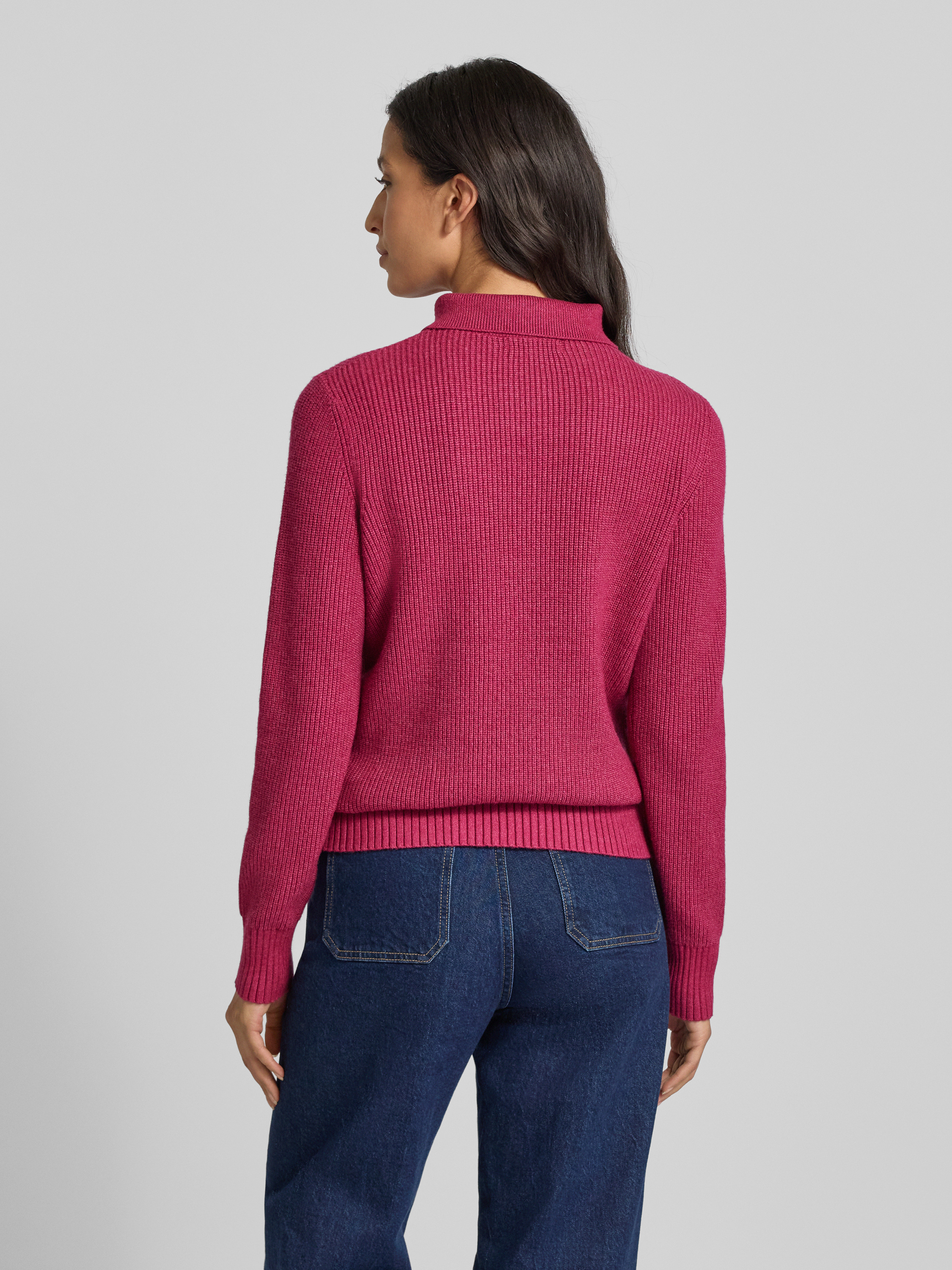 Sweter z dzianiny z kołnierzem - fuksjowy melanż