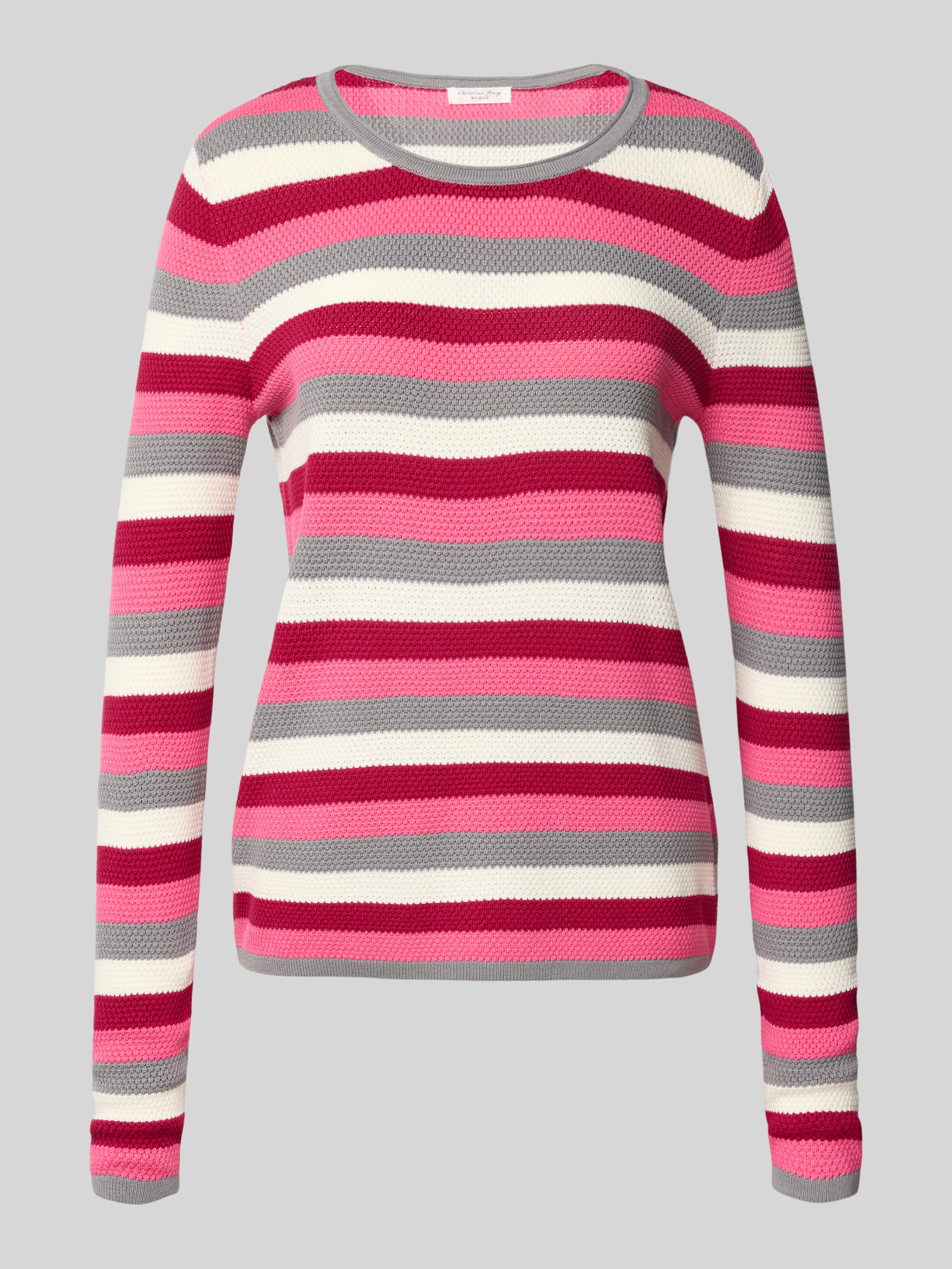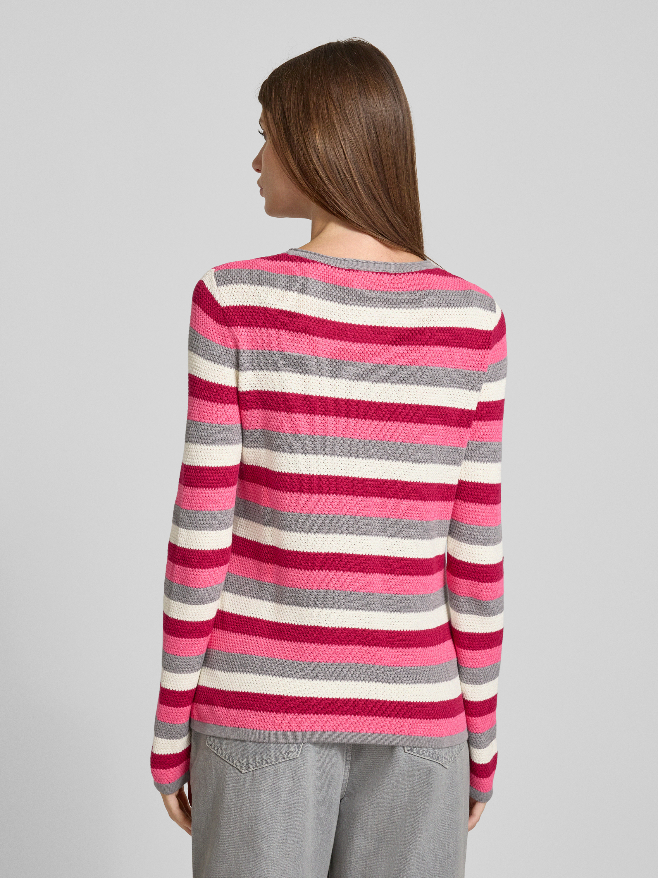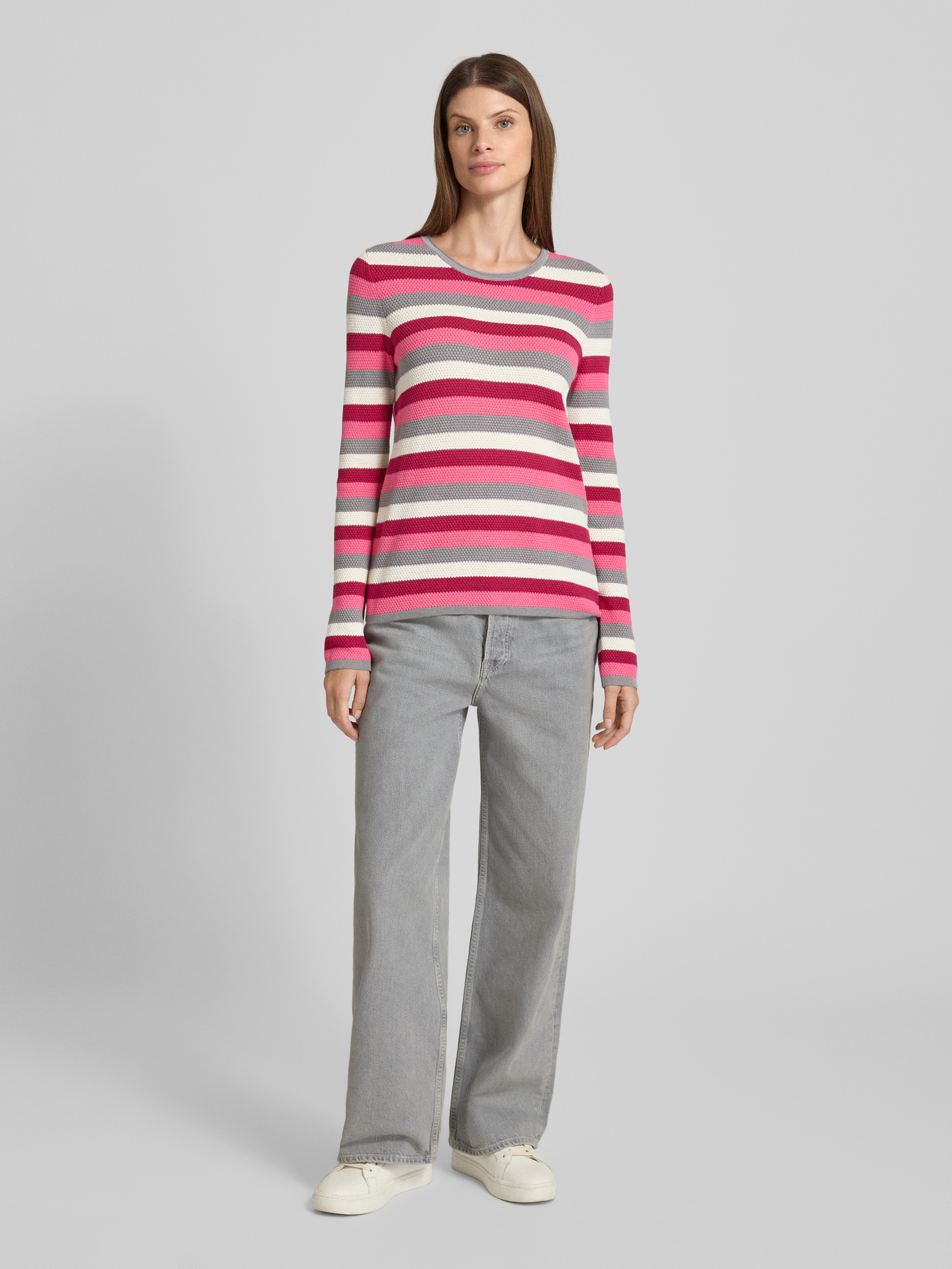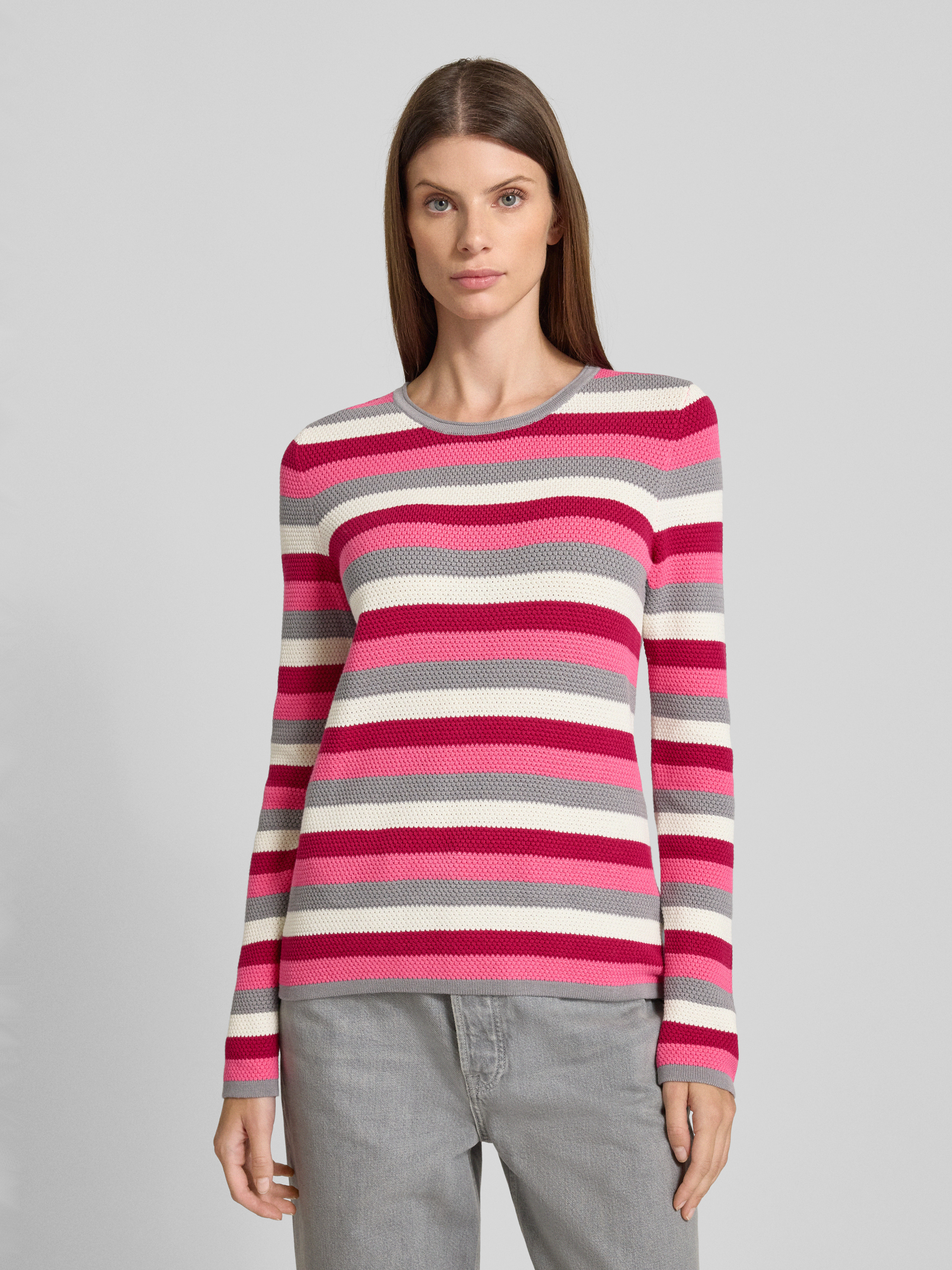 Sweter z dzianiny z okrągłym dekoltem - fuksjowy