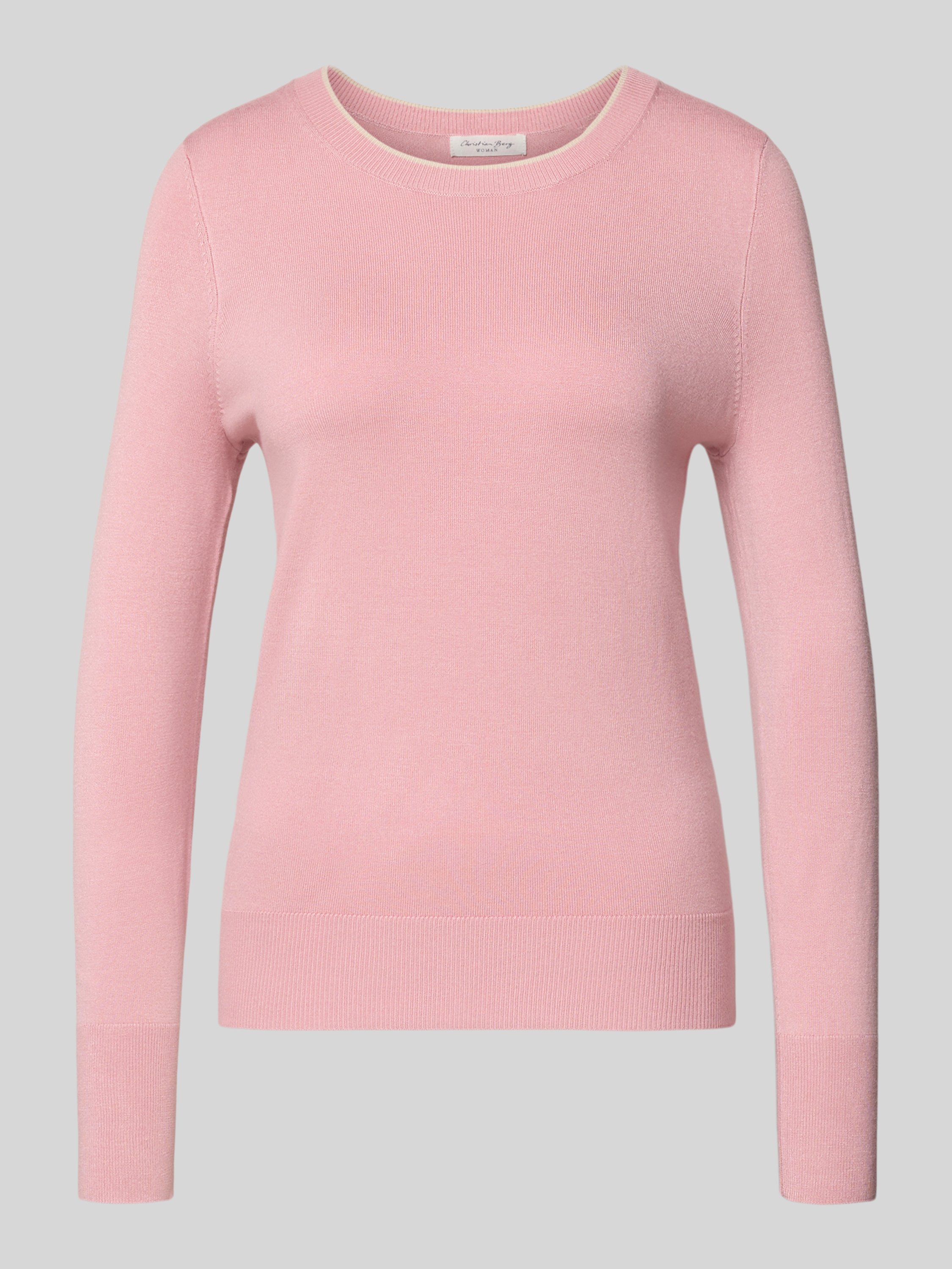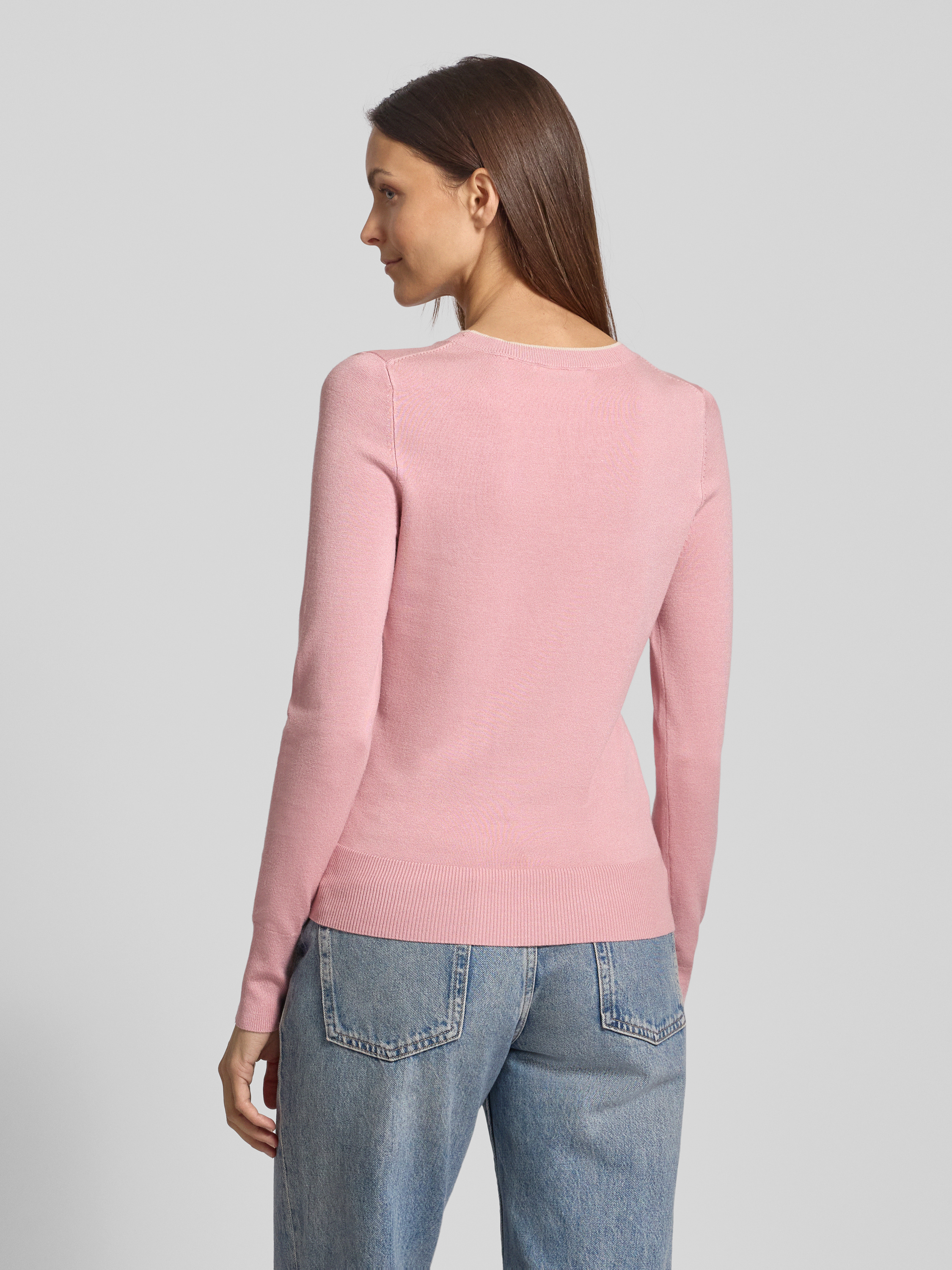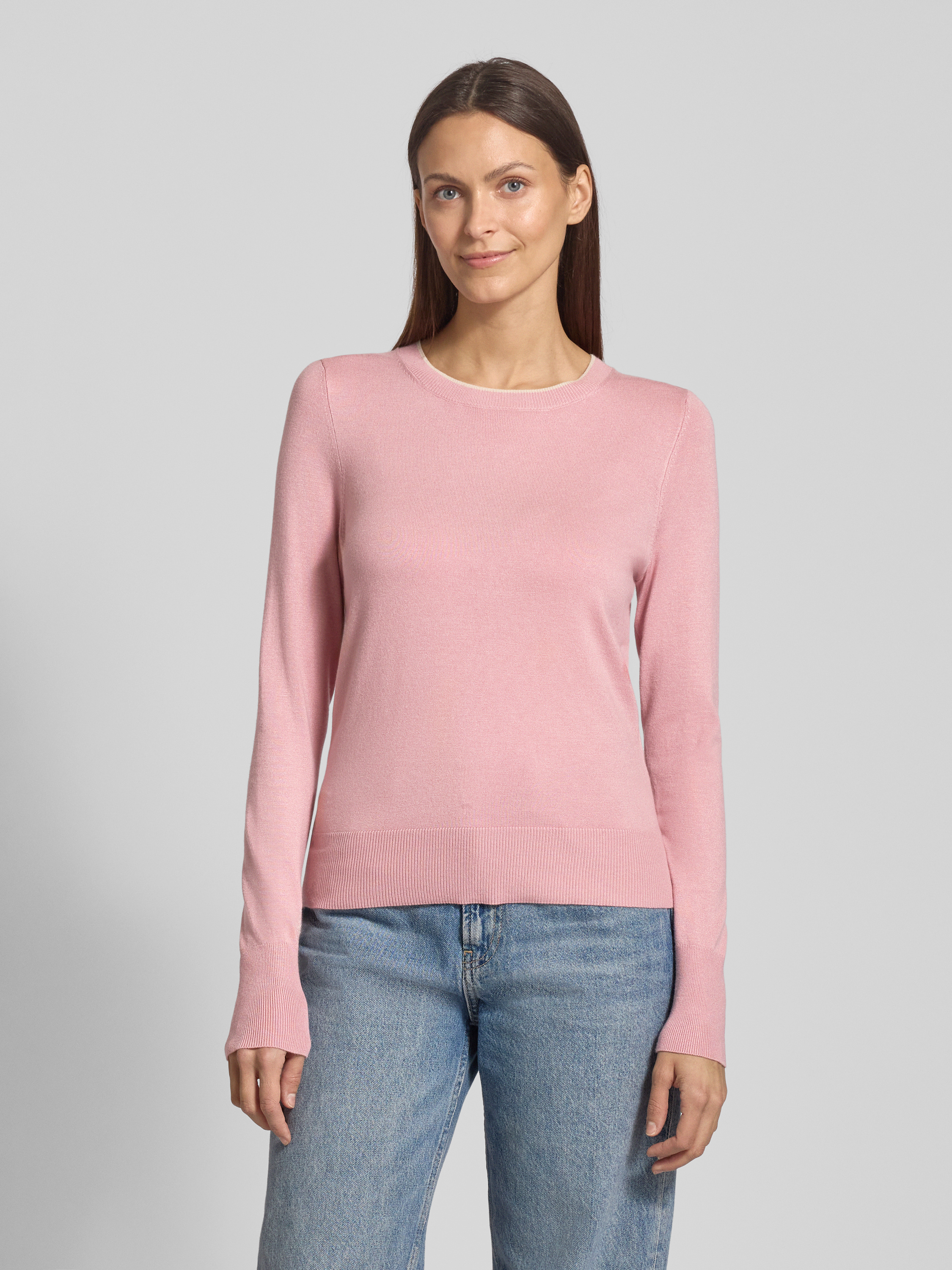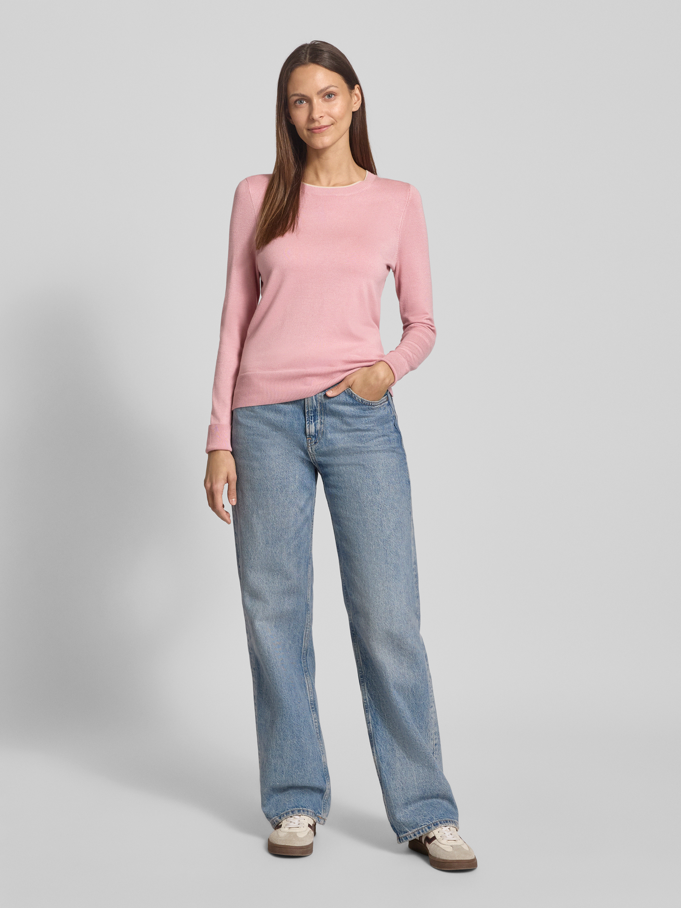 Sweter z dzianiny z prążkowanymi wykończeniami - brudnoróżowy