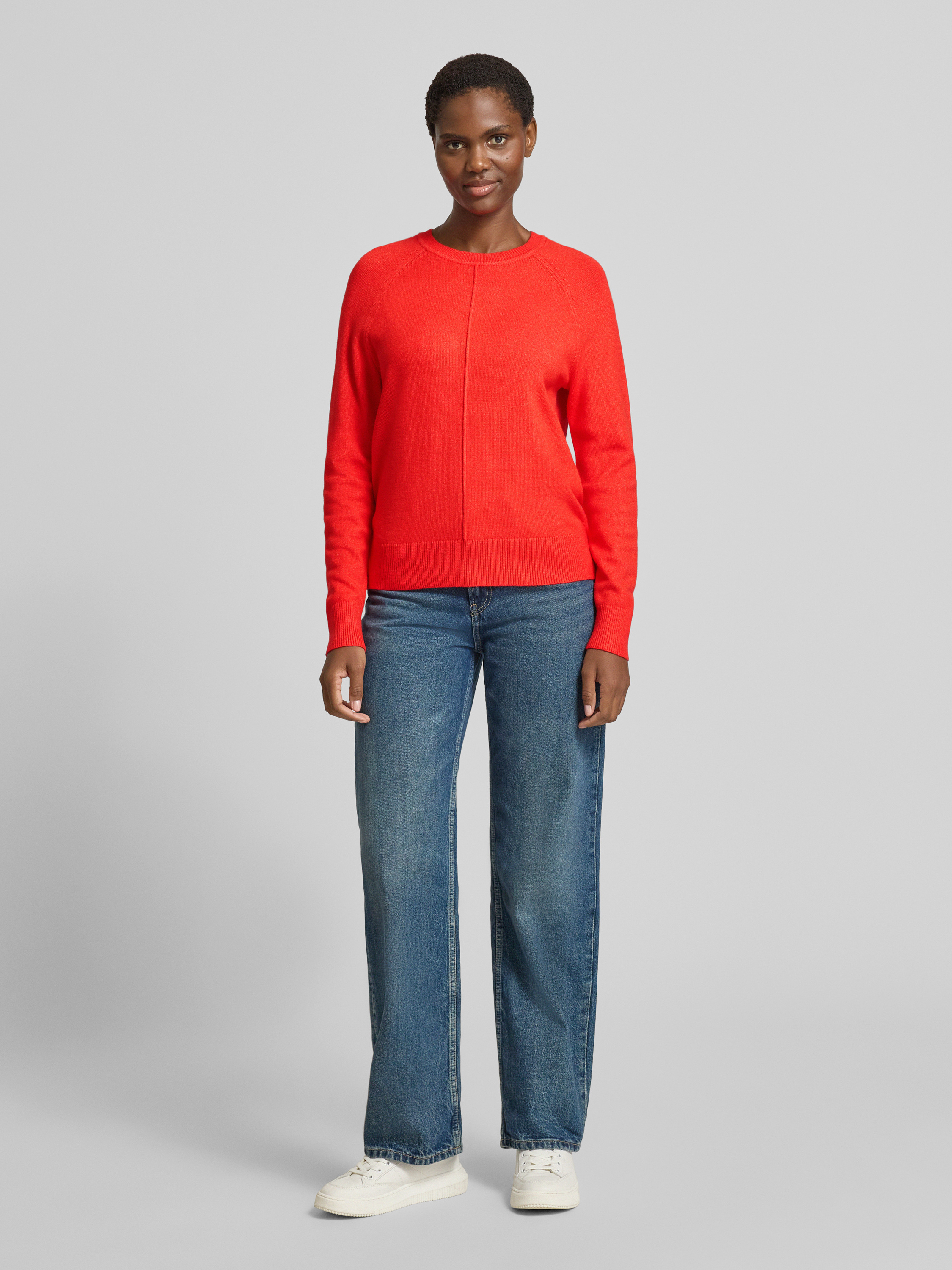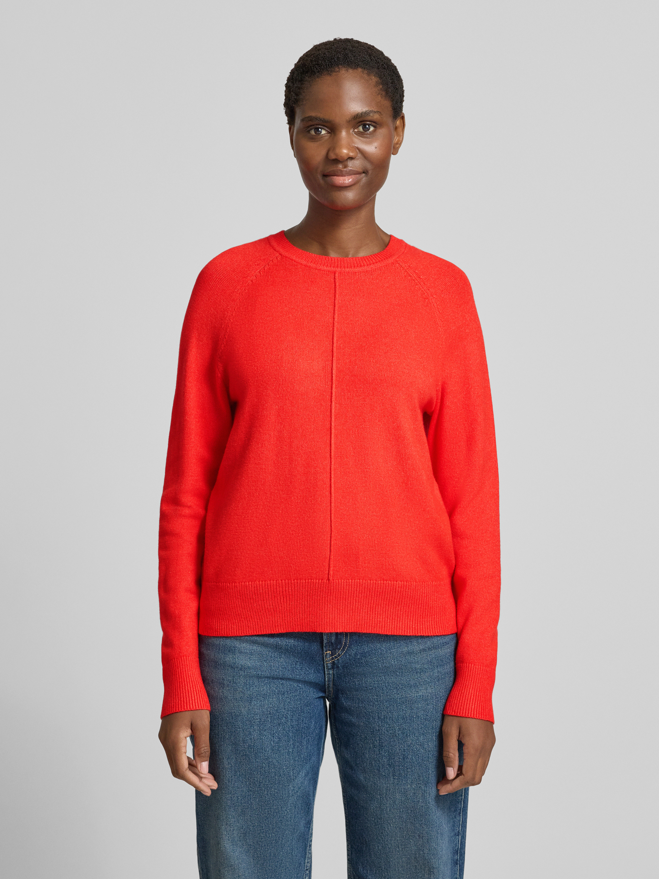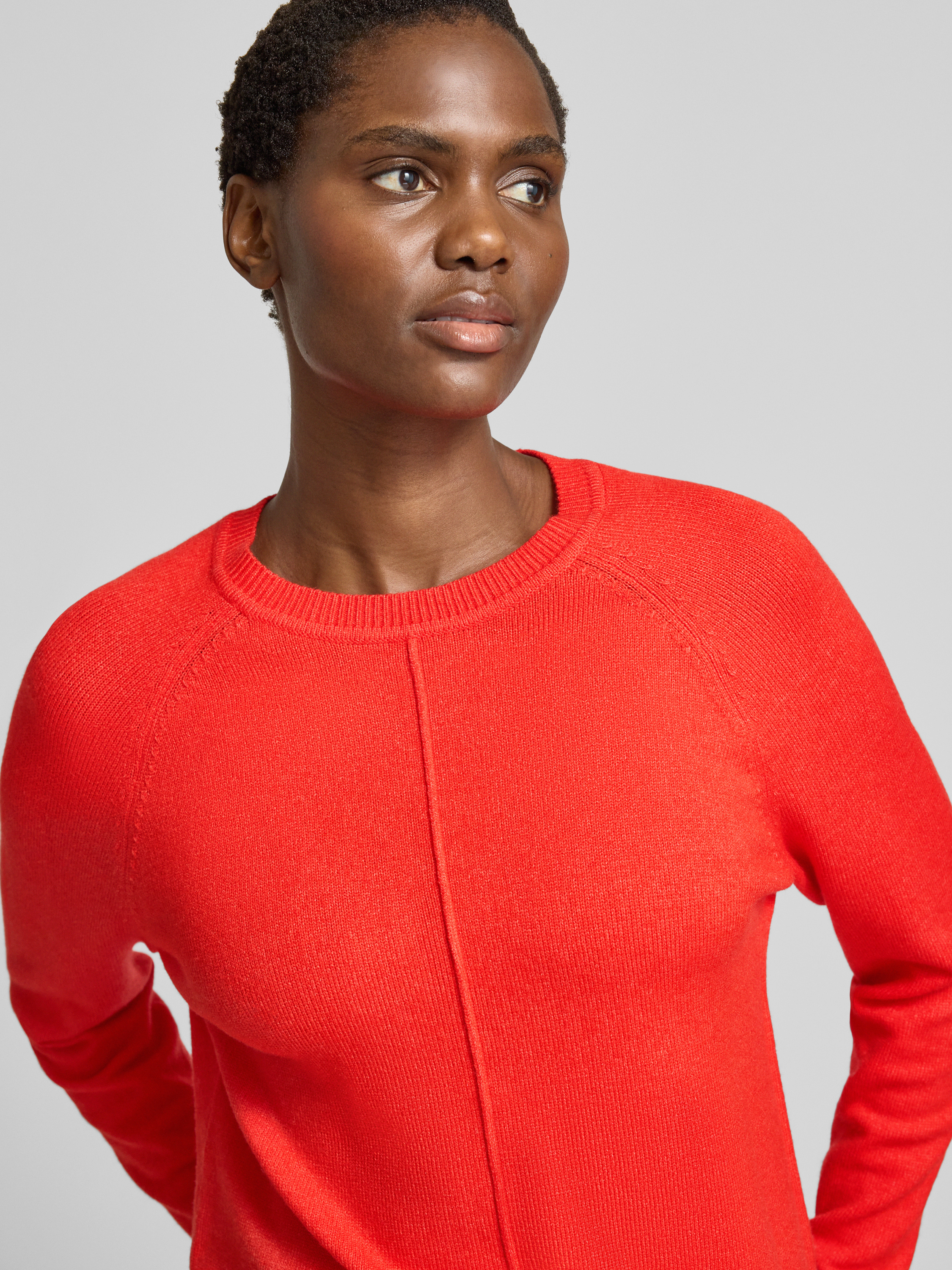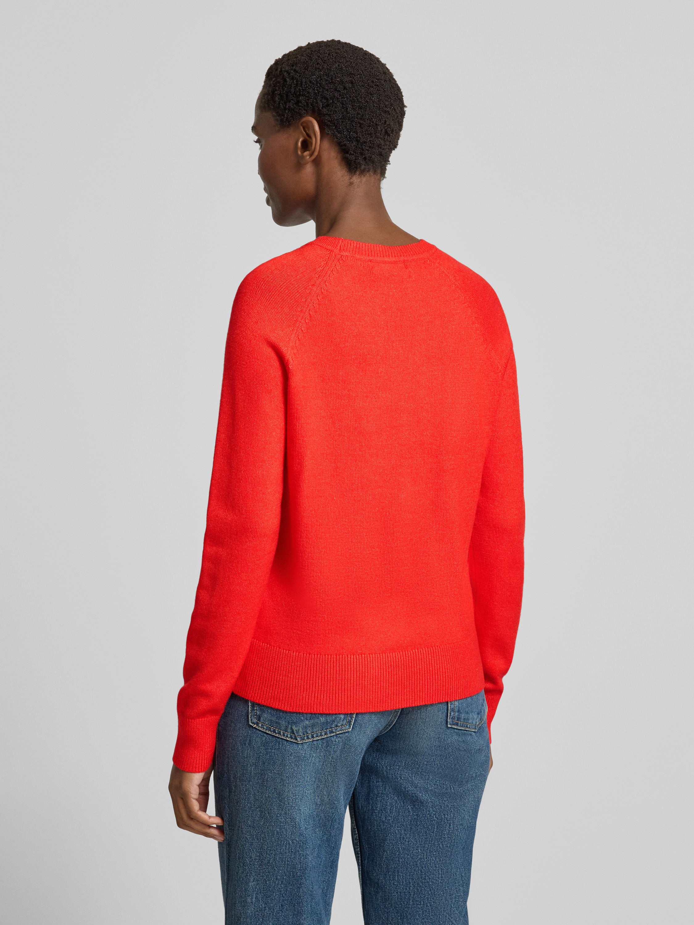 Sweter z dzianiny z prążkowanymi wykończeniami - jasnoczerwony melanż