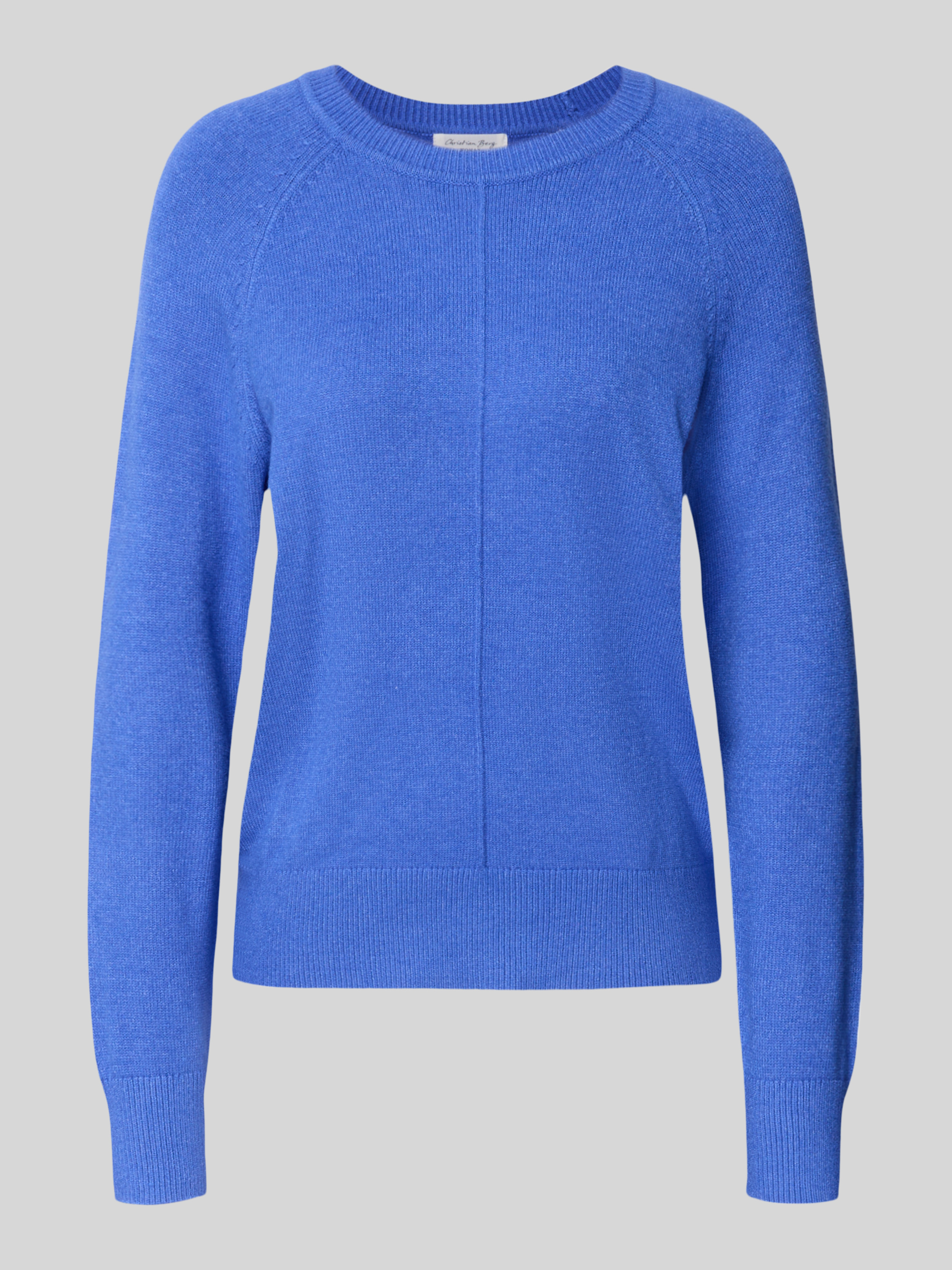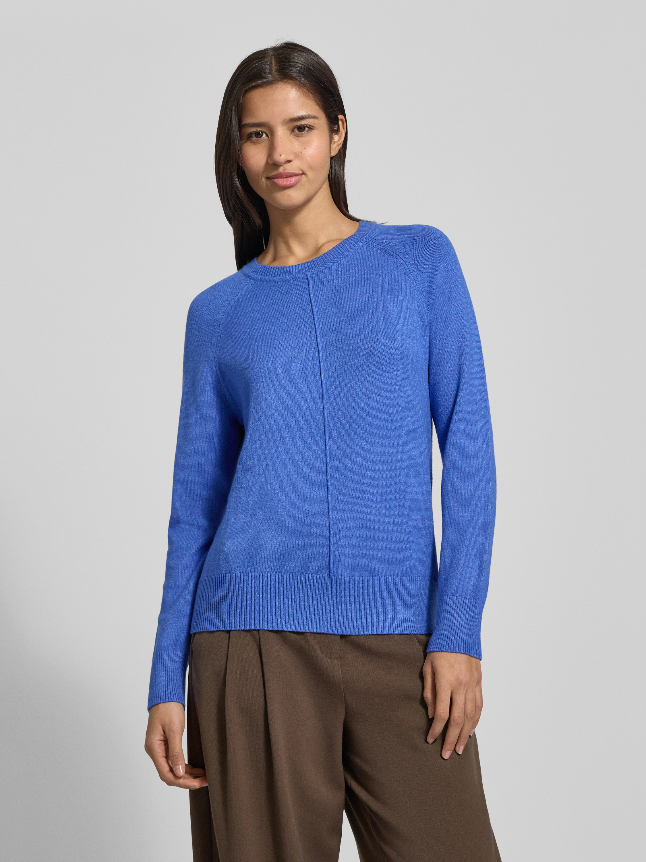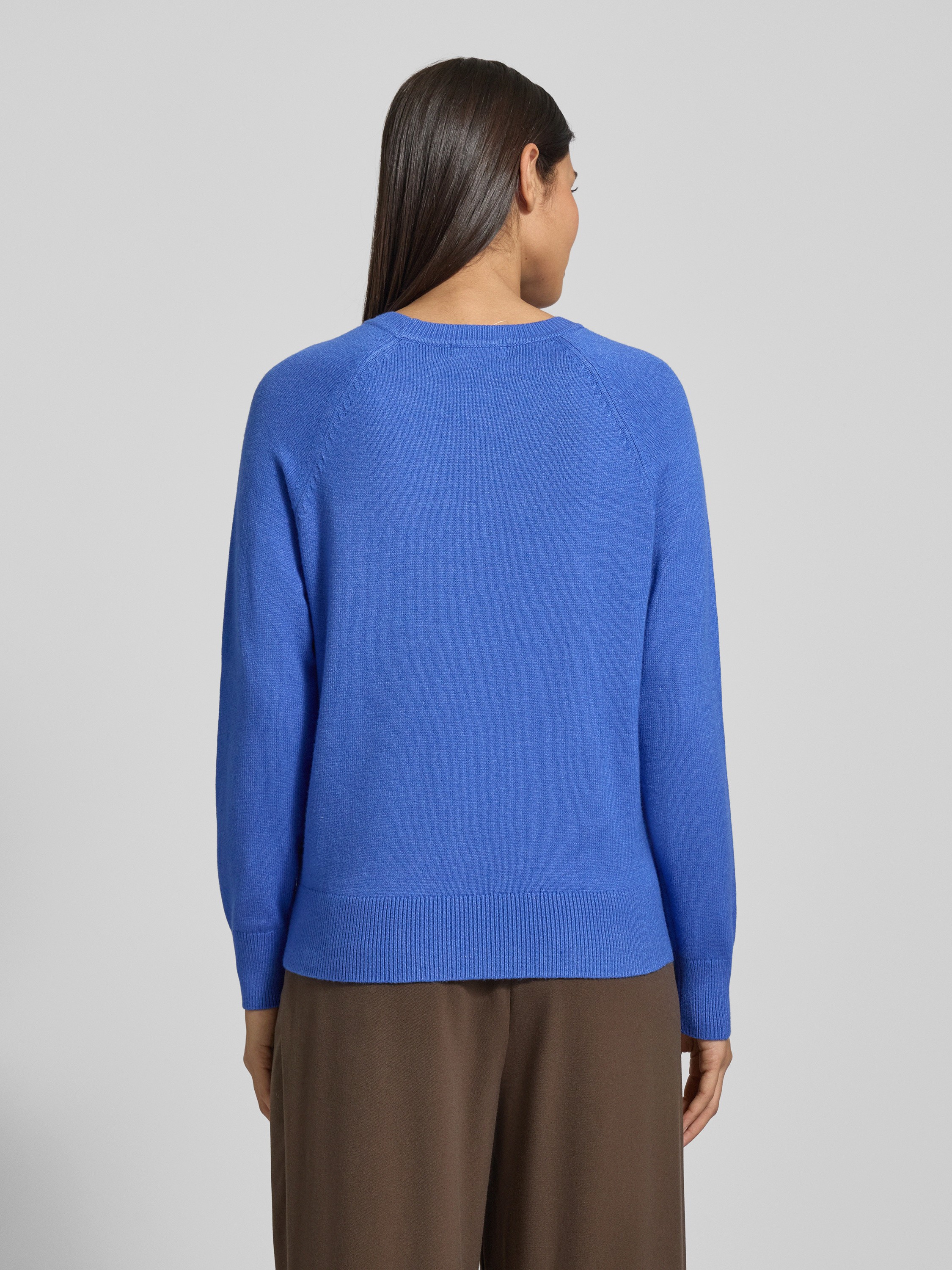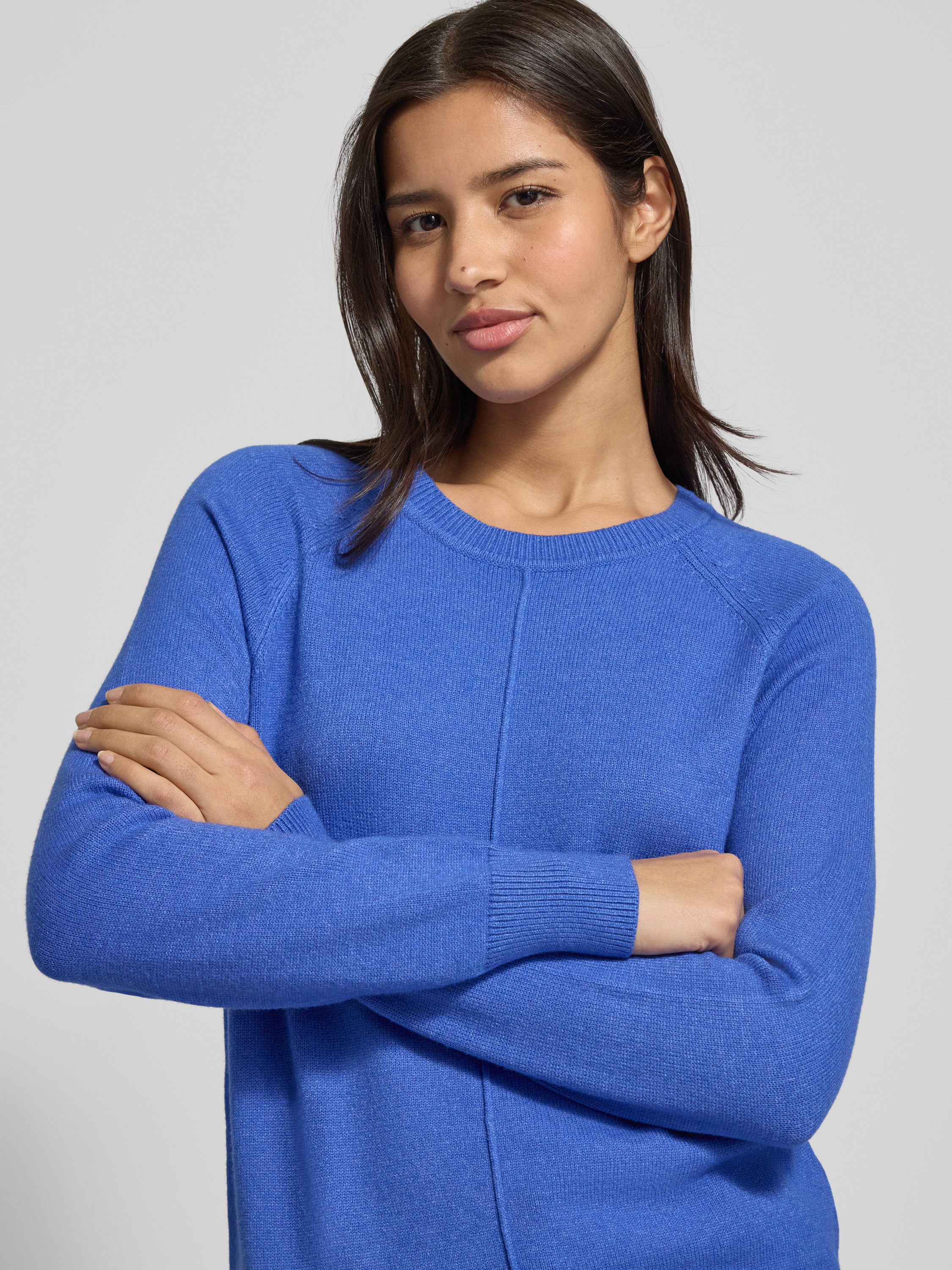 Sweter z dzianiny z prążkowanymi wykończeniami - królewski niebieski melanż