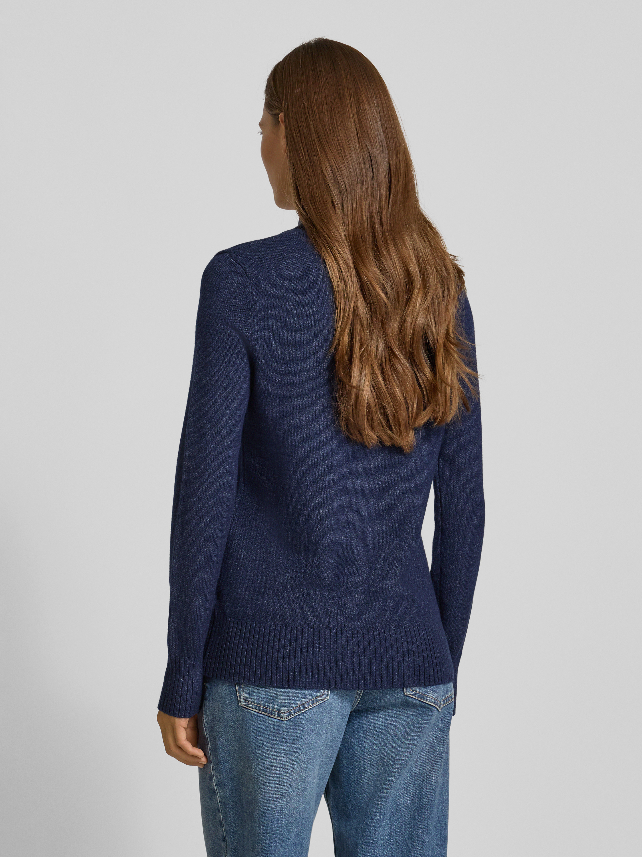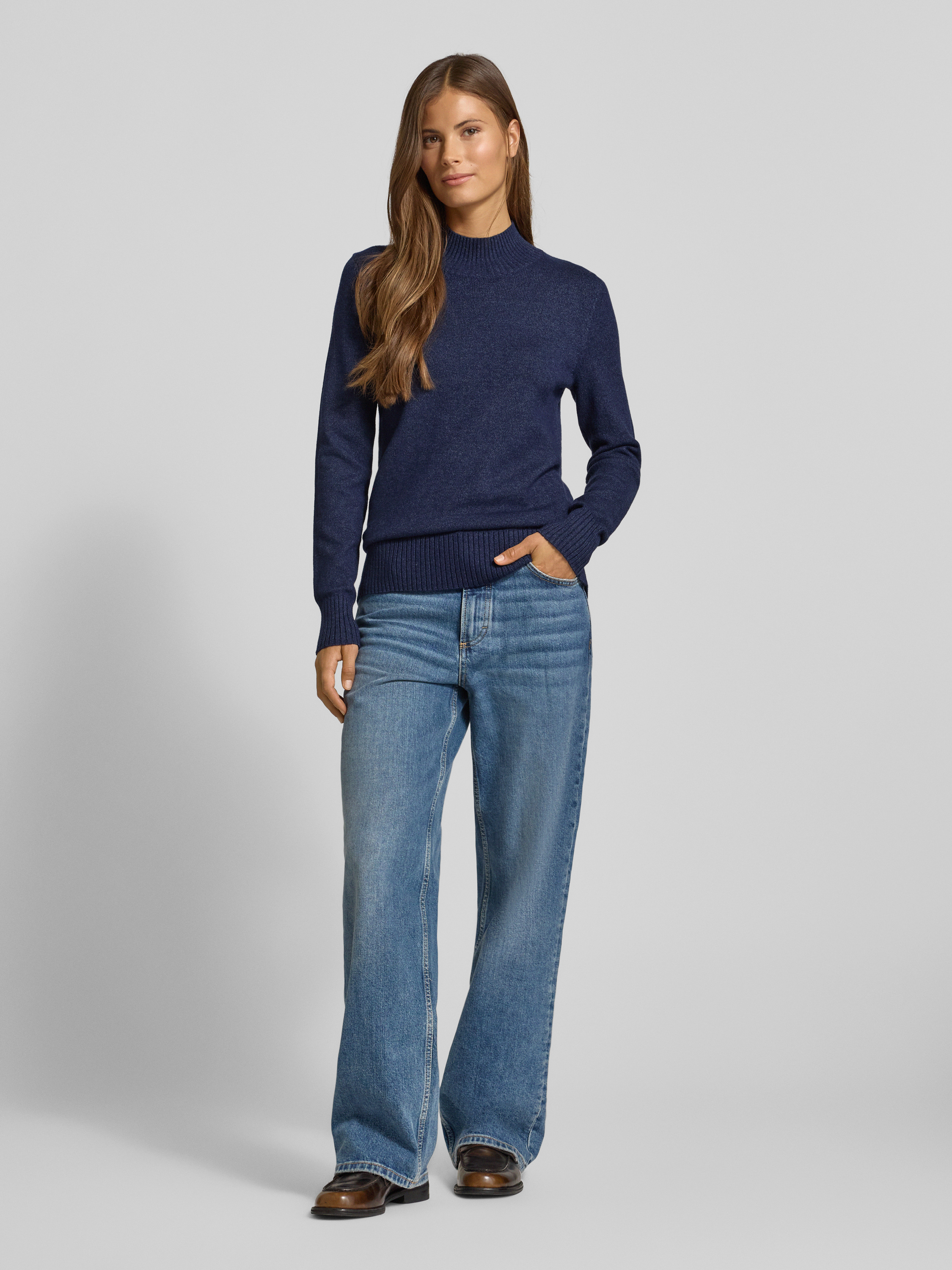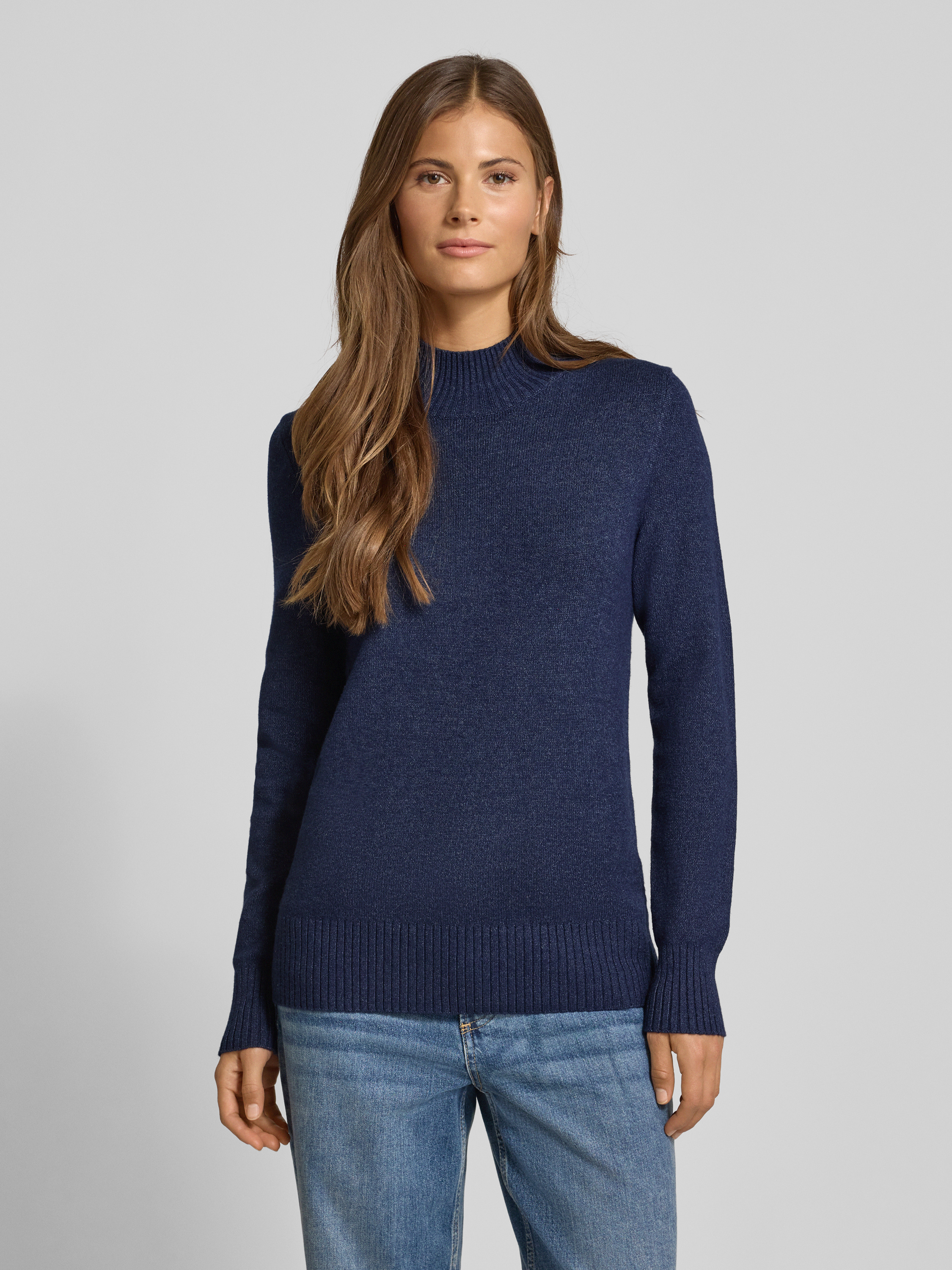 Sweter z dzianiny ze stójką - ciemnoniebieski melanż