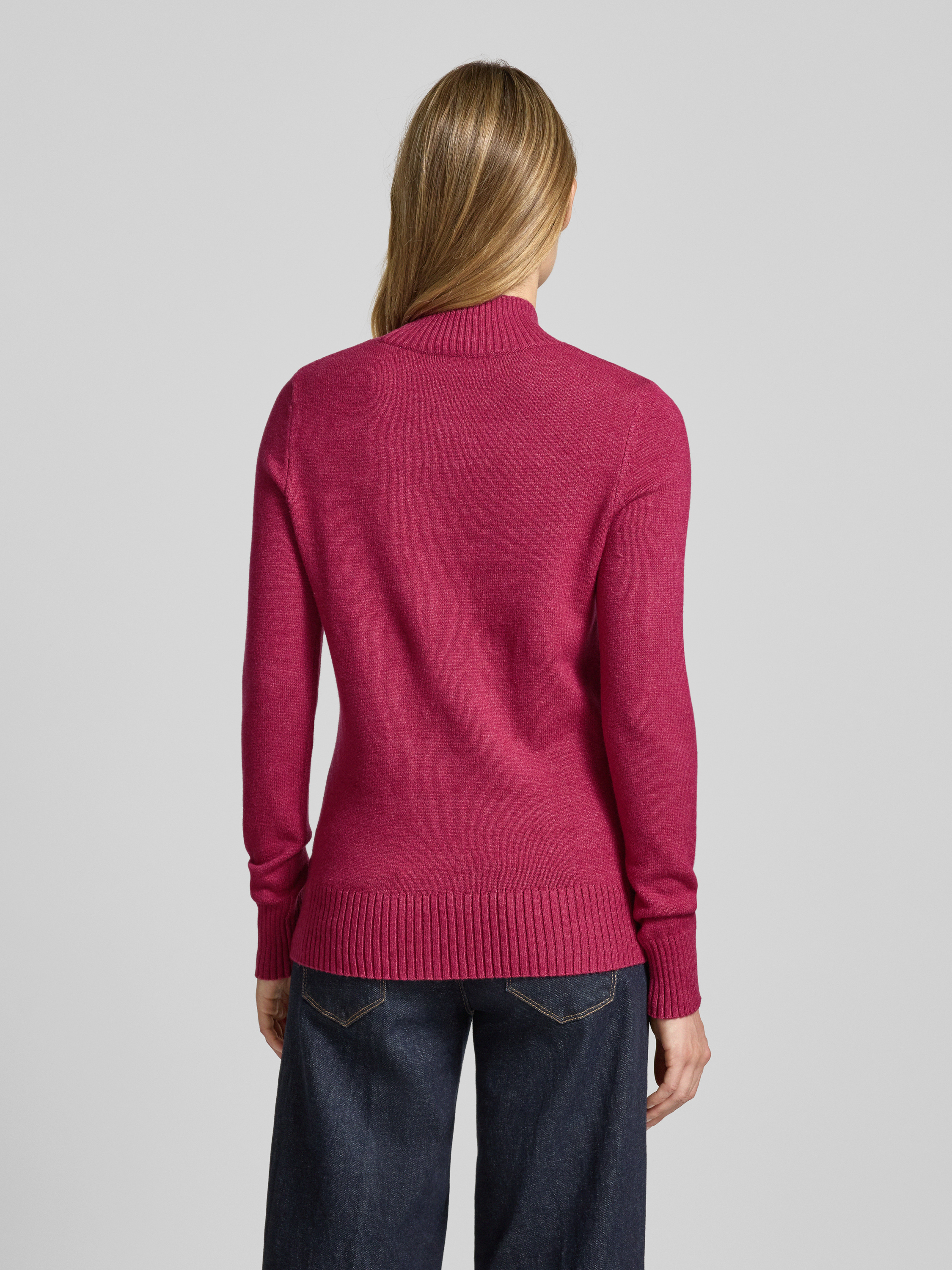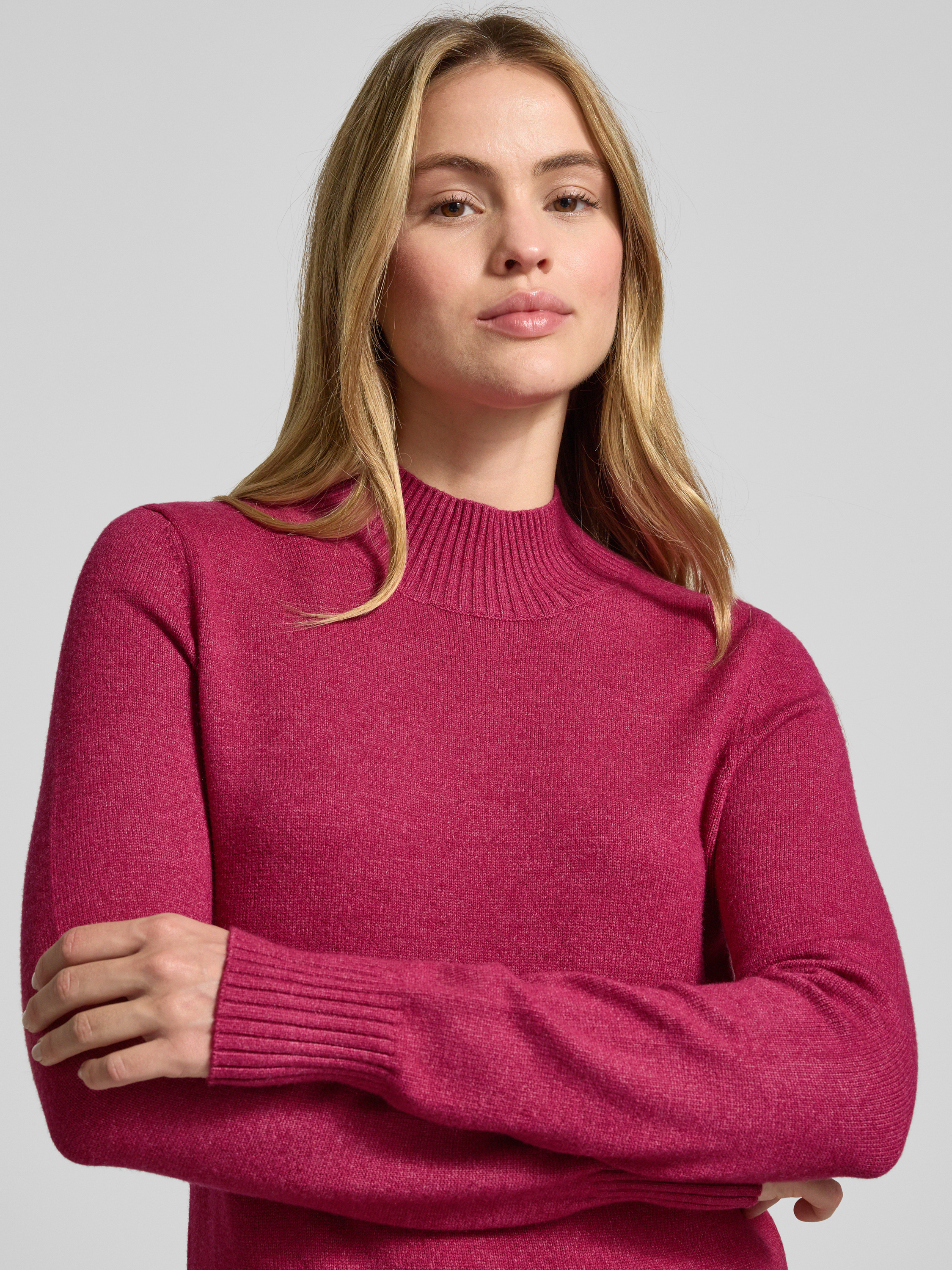 Sweter z dzianiny ze stójką - fuksjowy melanż