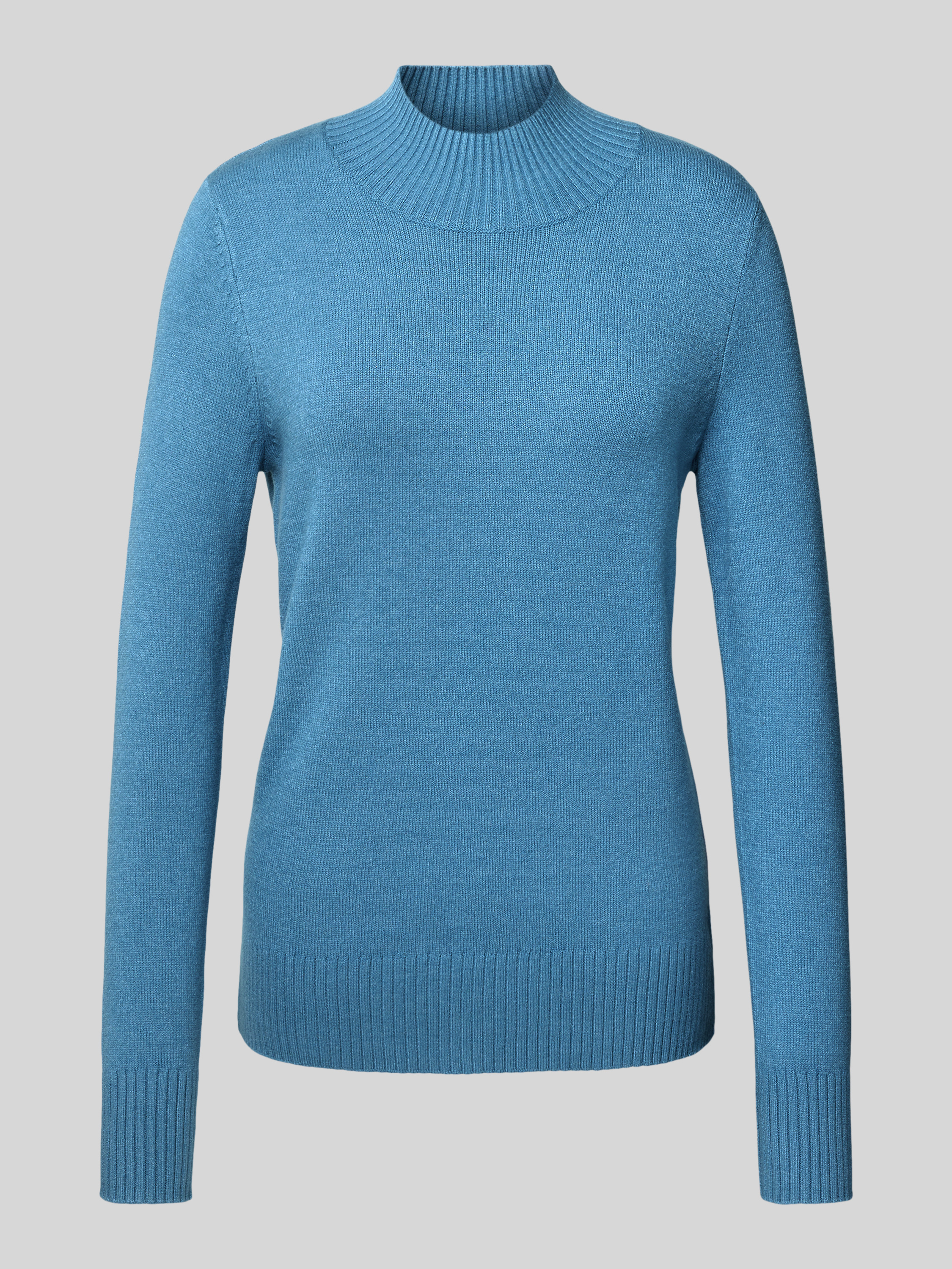 Sweter z dzianiny ze stójką - szaroniebieski melanż