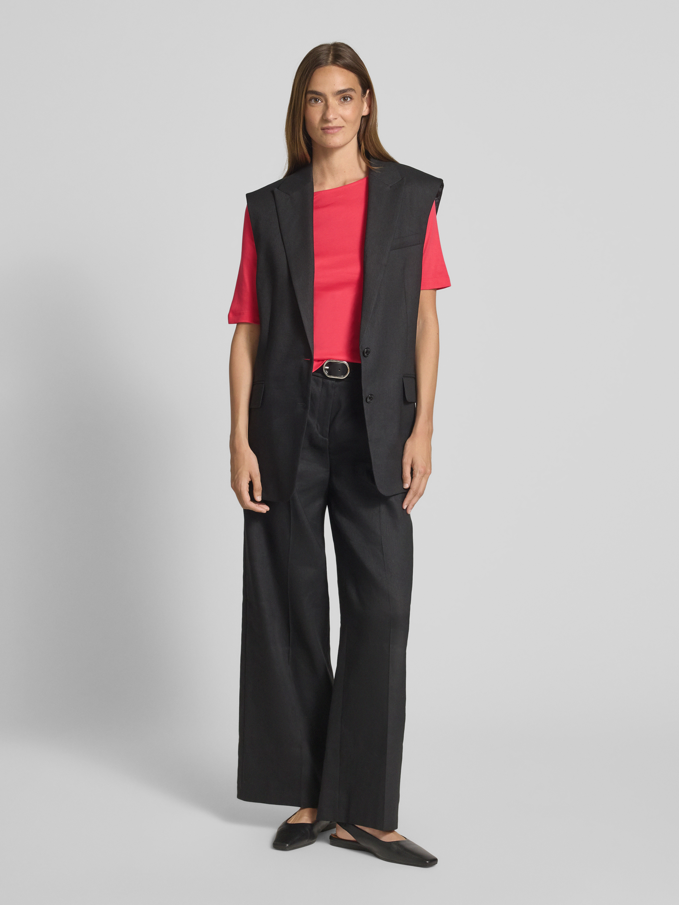 Kamizelka lniana z kołnierzem z połami model ‘Amise’