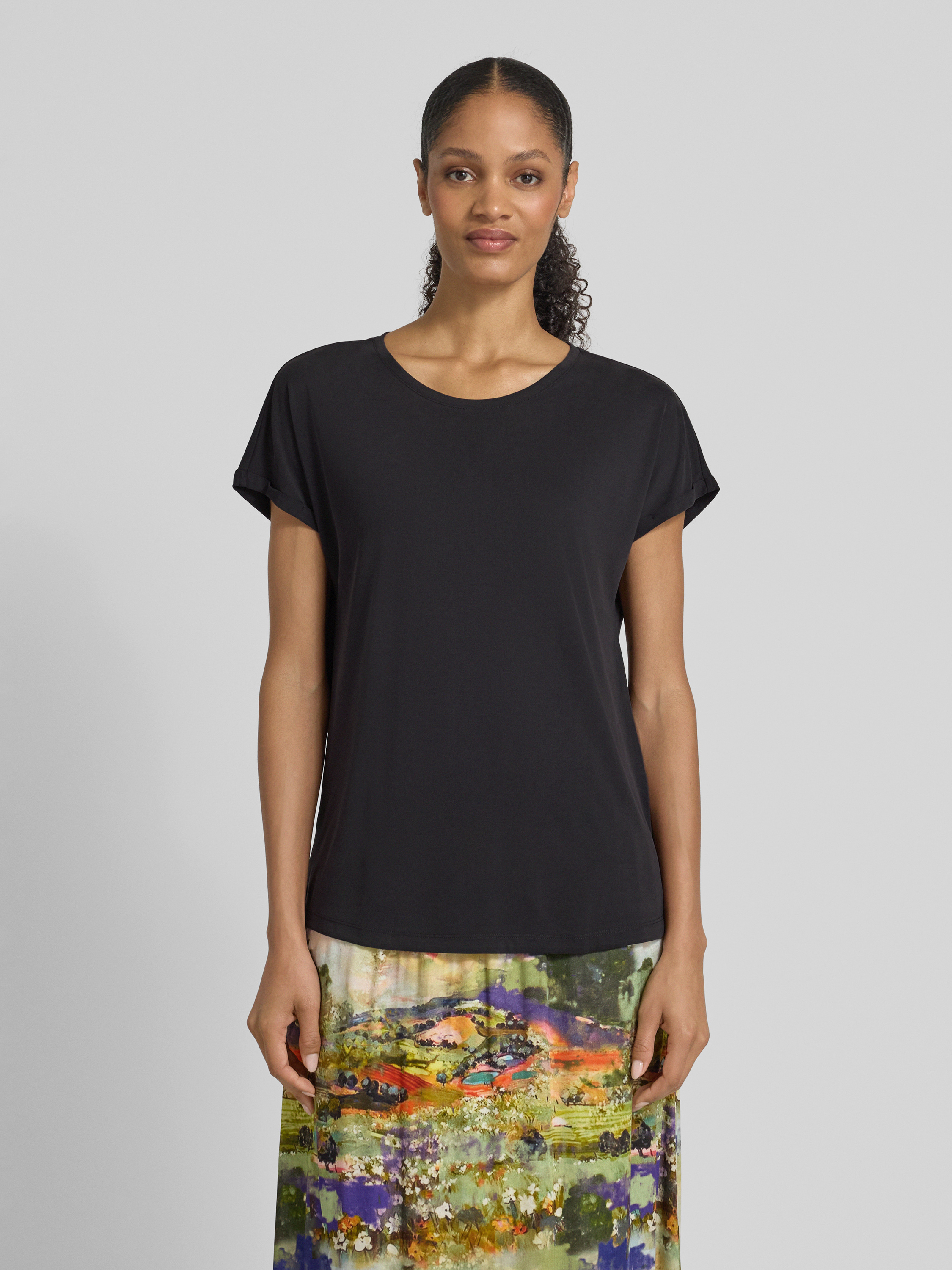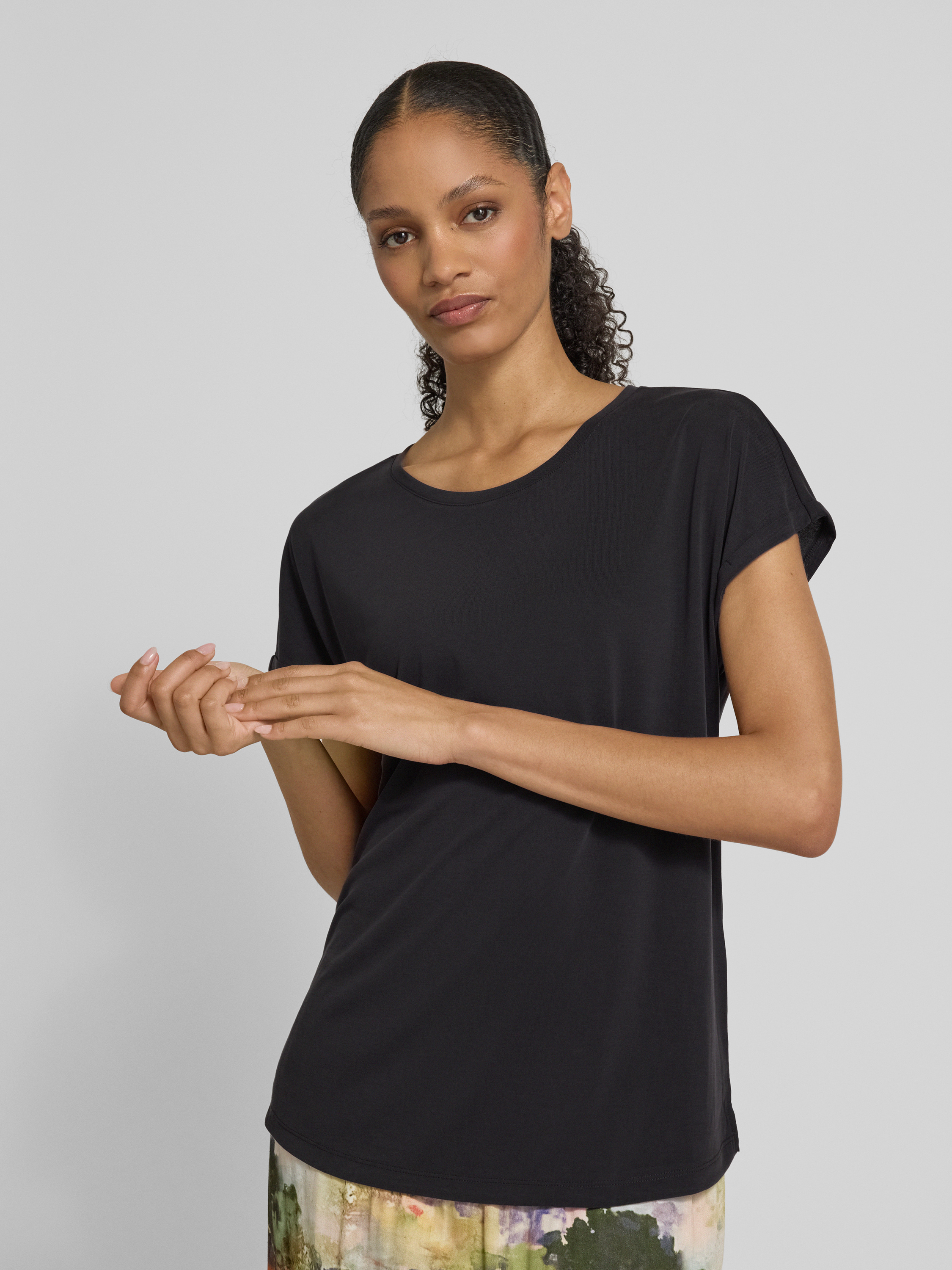 T-shirt z mieszanki modalu z okrągłym dekoltem - czarny
