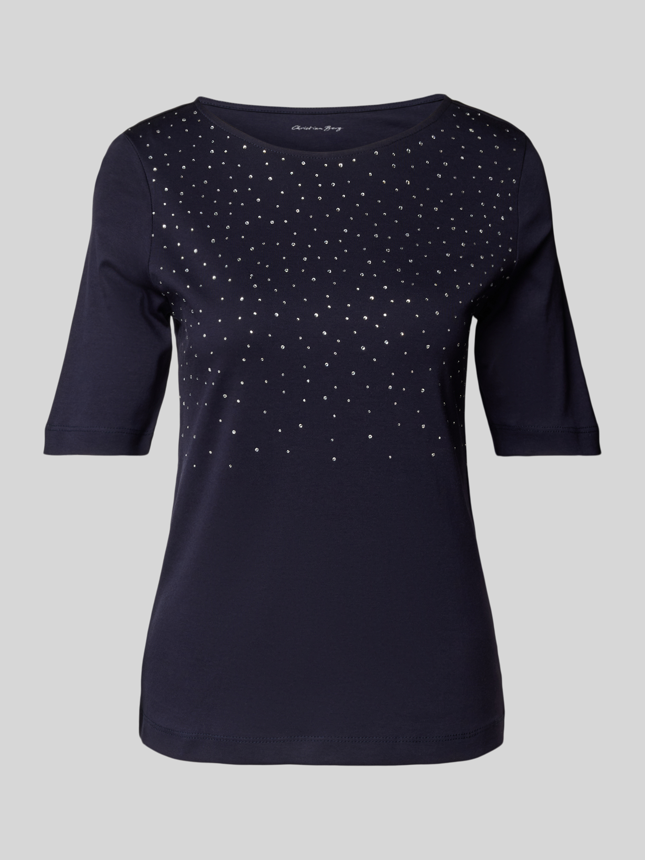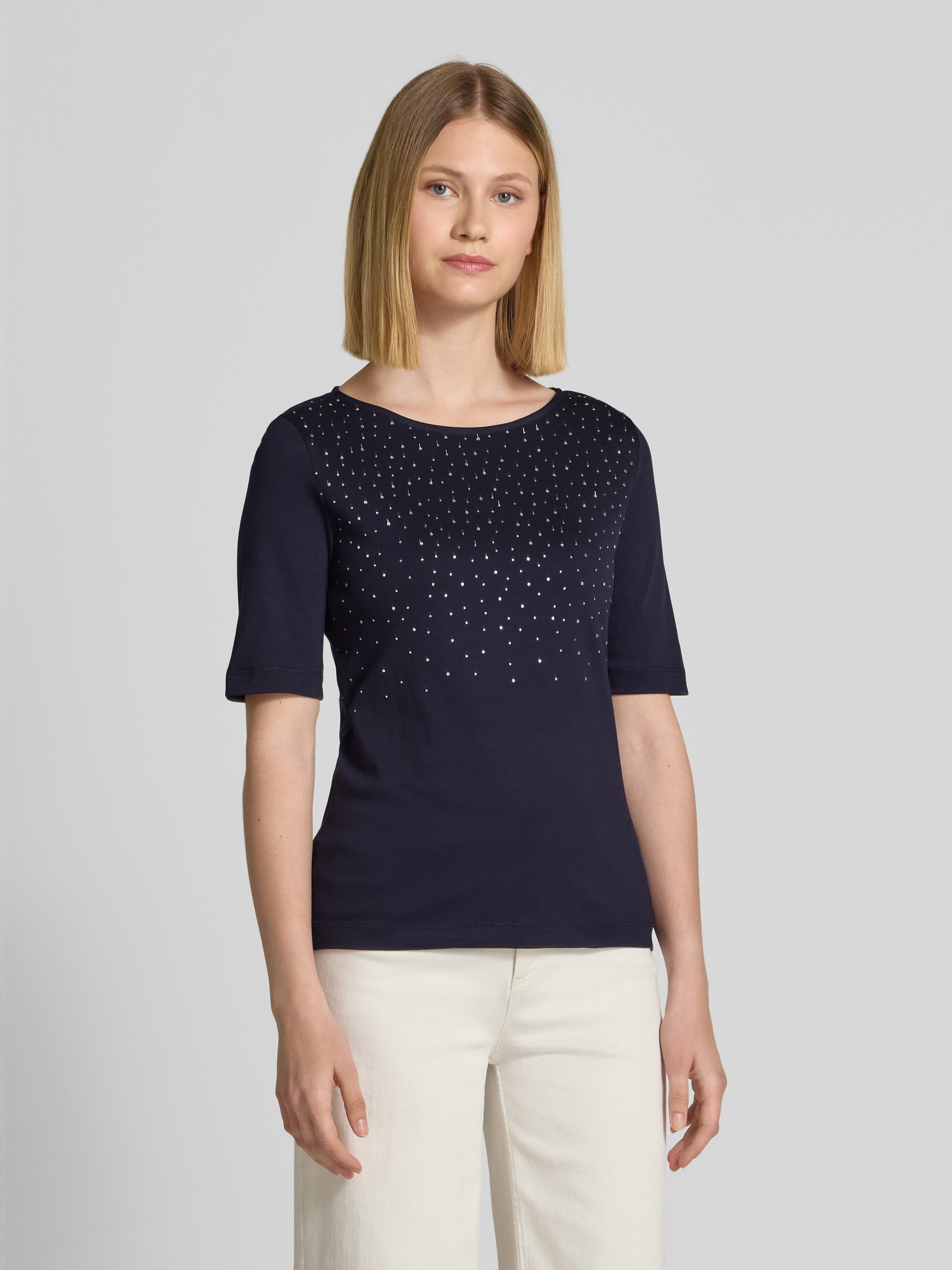 Christian Berg WomanT-shirt z obszyciem ozdobnymi kamieniami i okrągłym dekoltem - ciemnoniebieski