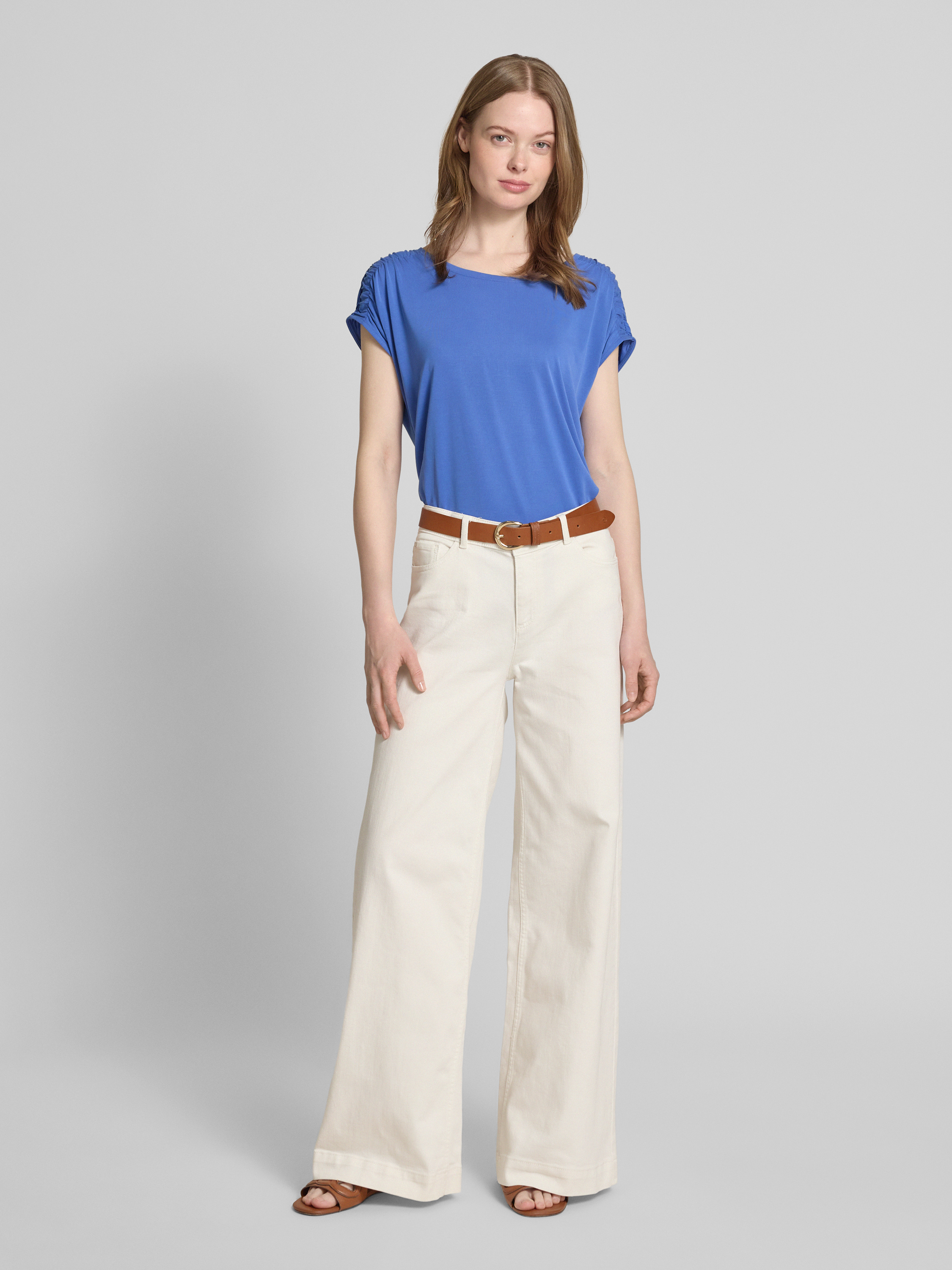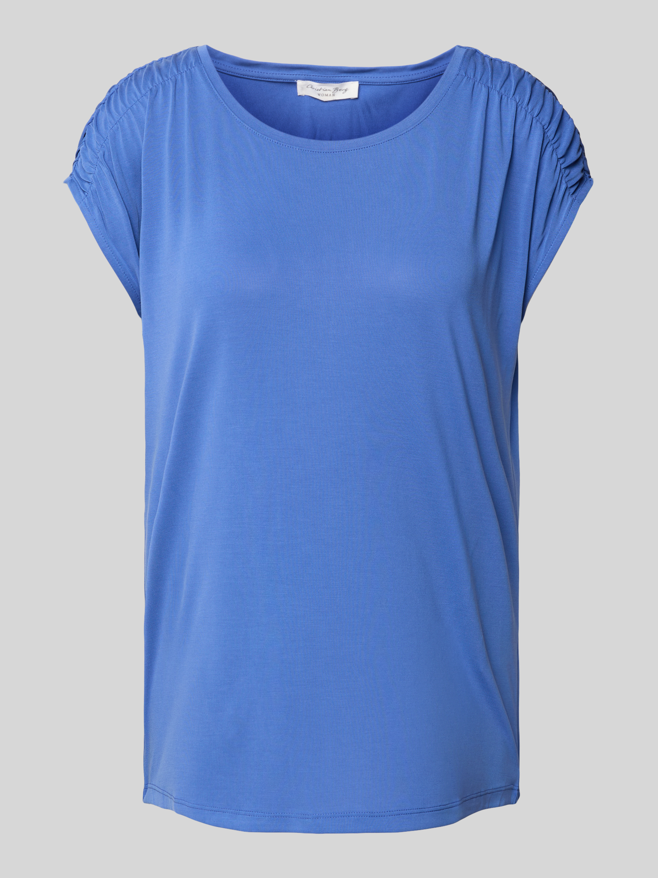 T-shirt z prążkowanym okrągłym dekoltem - niebieski