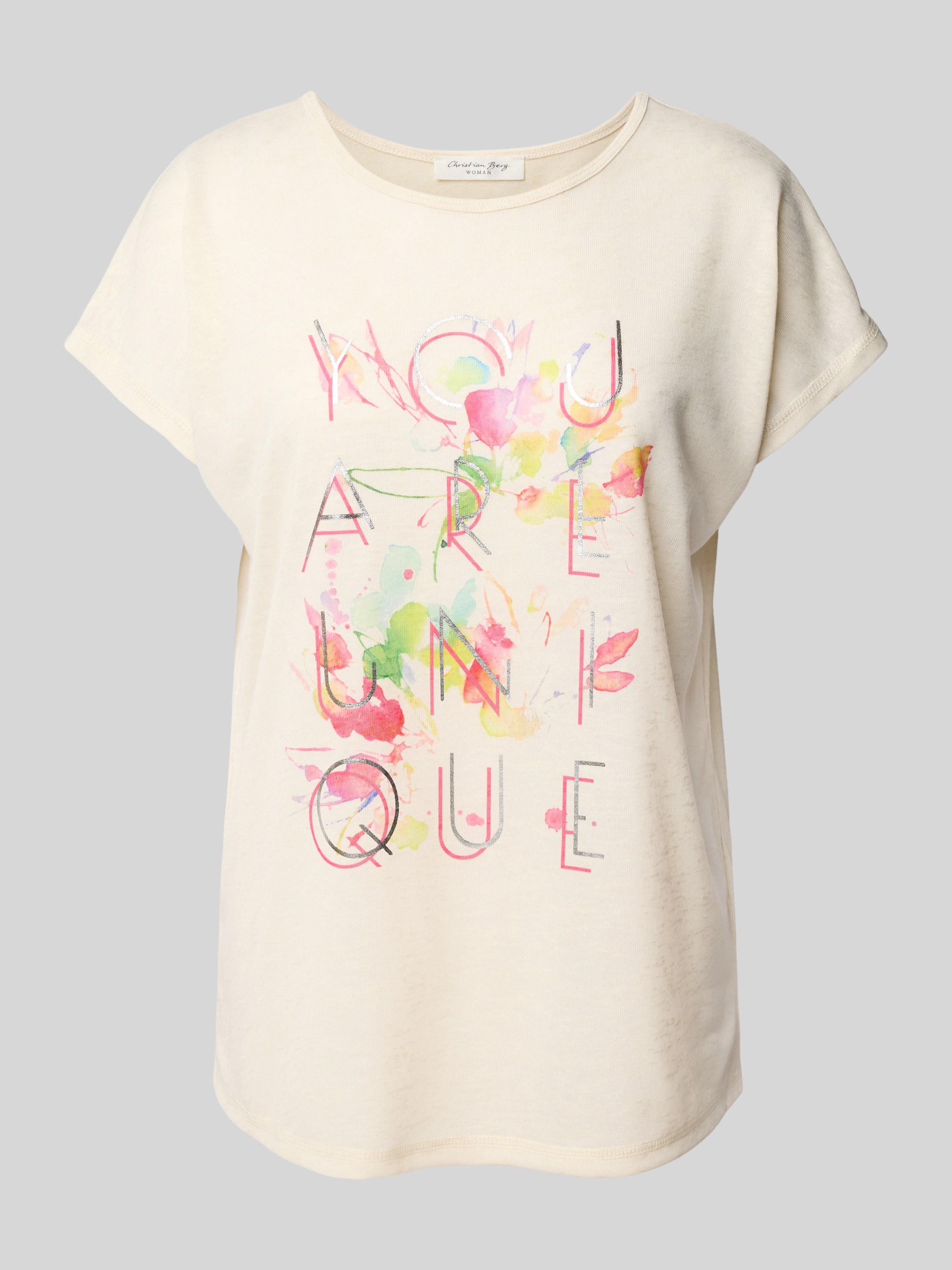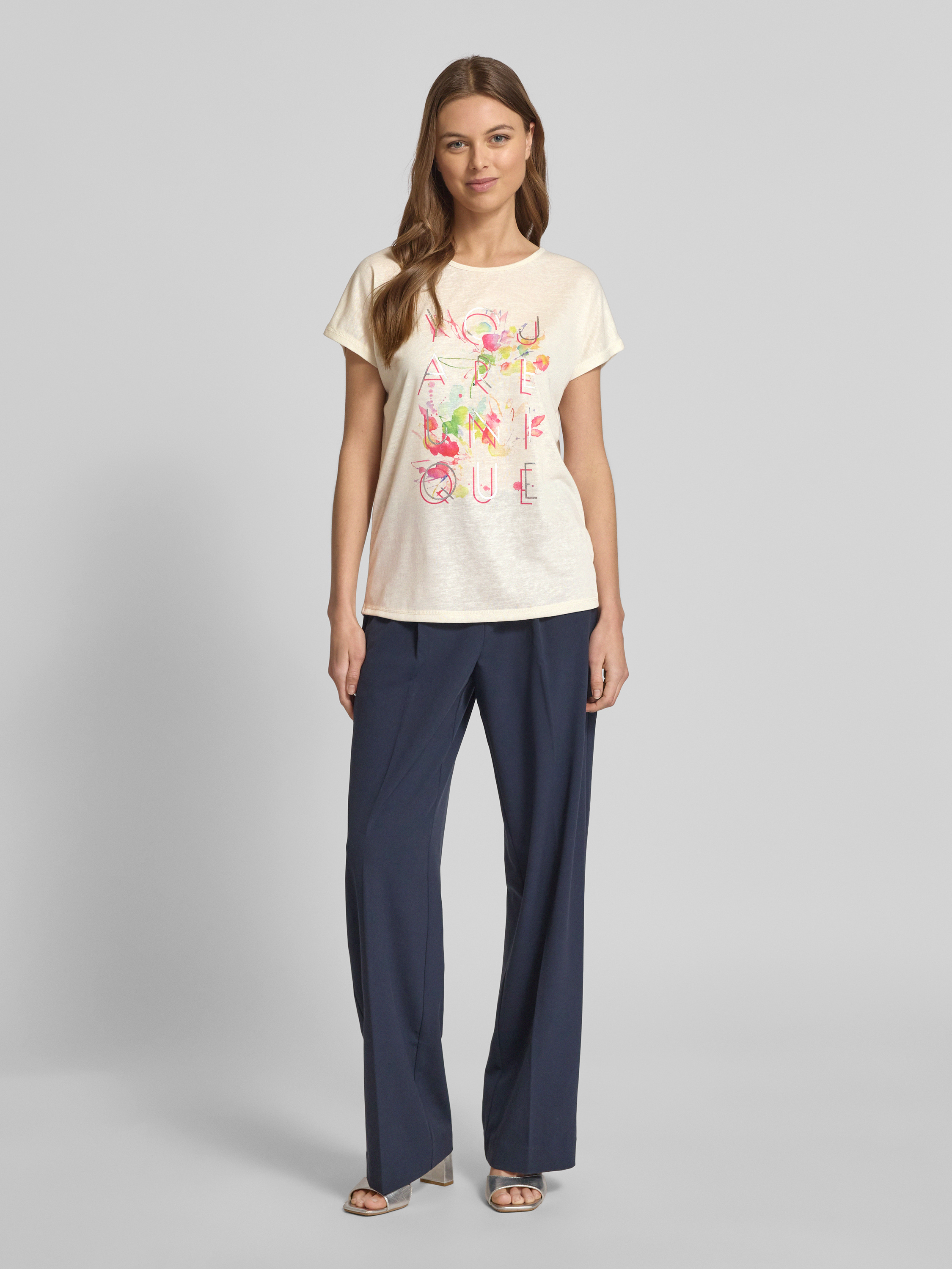T-shirt z prążkowanym okrągłym dekoltem - złamany biały