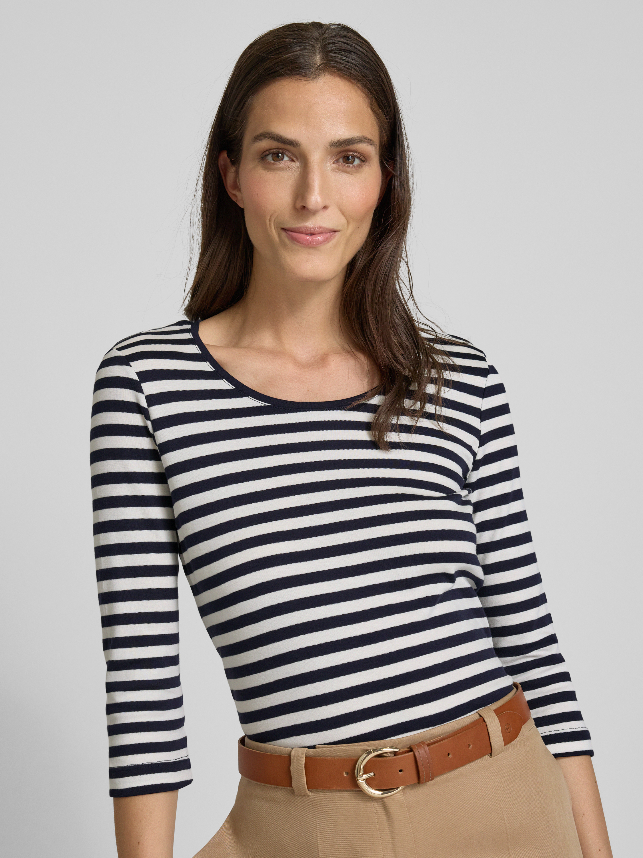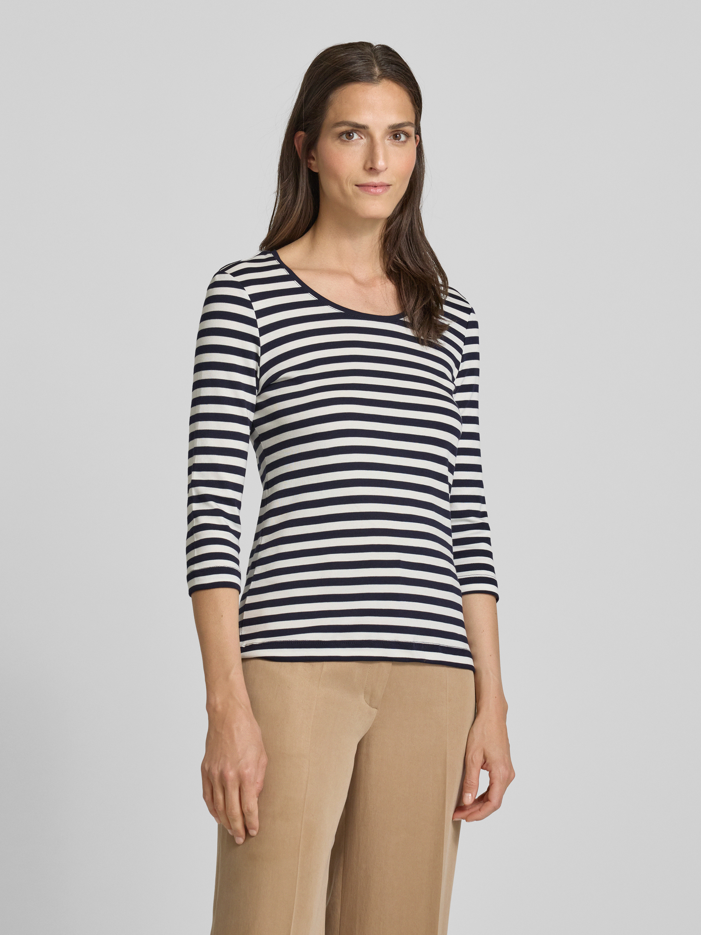 T-shirt z rękawem o dł. 3/4 i okrągłym dekoltem - ciemnoniebieski