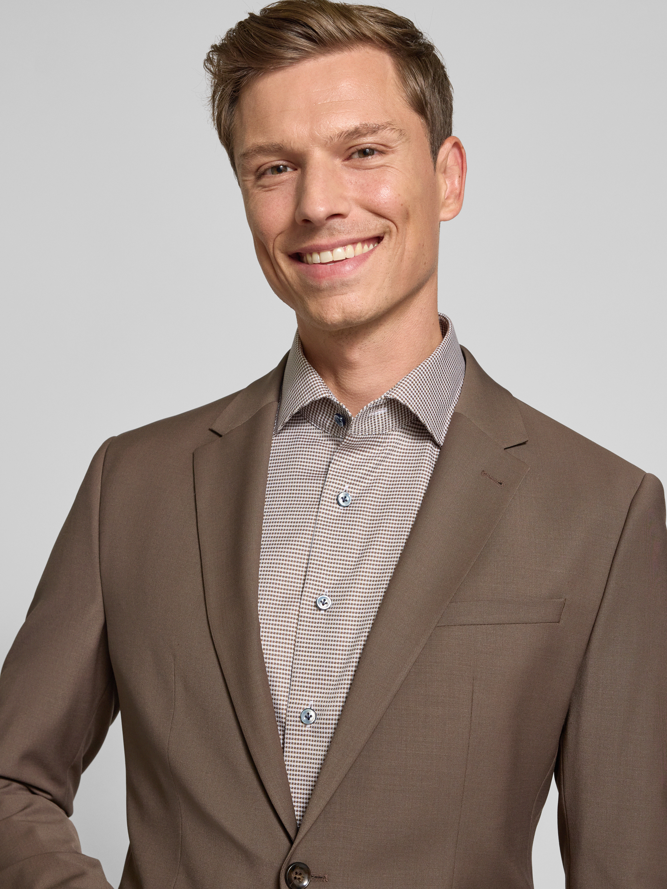 Marynarka na dwa guziki o kroju slim fit z kieszeniami z patką model ‘Monopoli’ - średniobrązowy