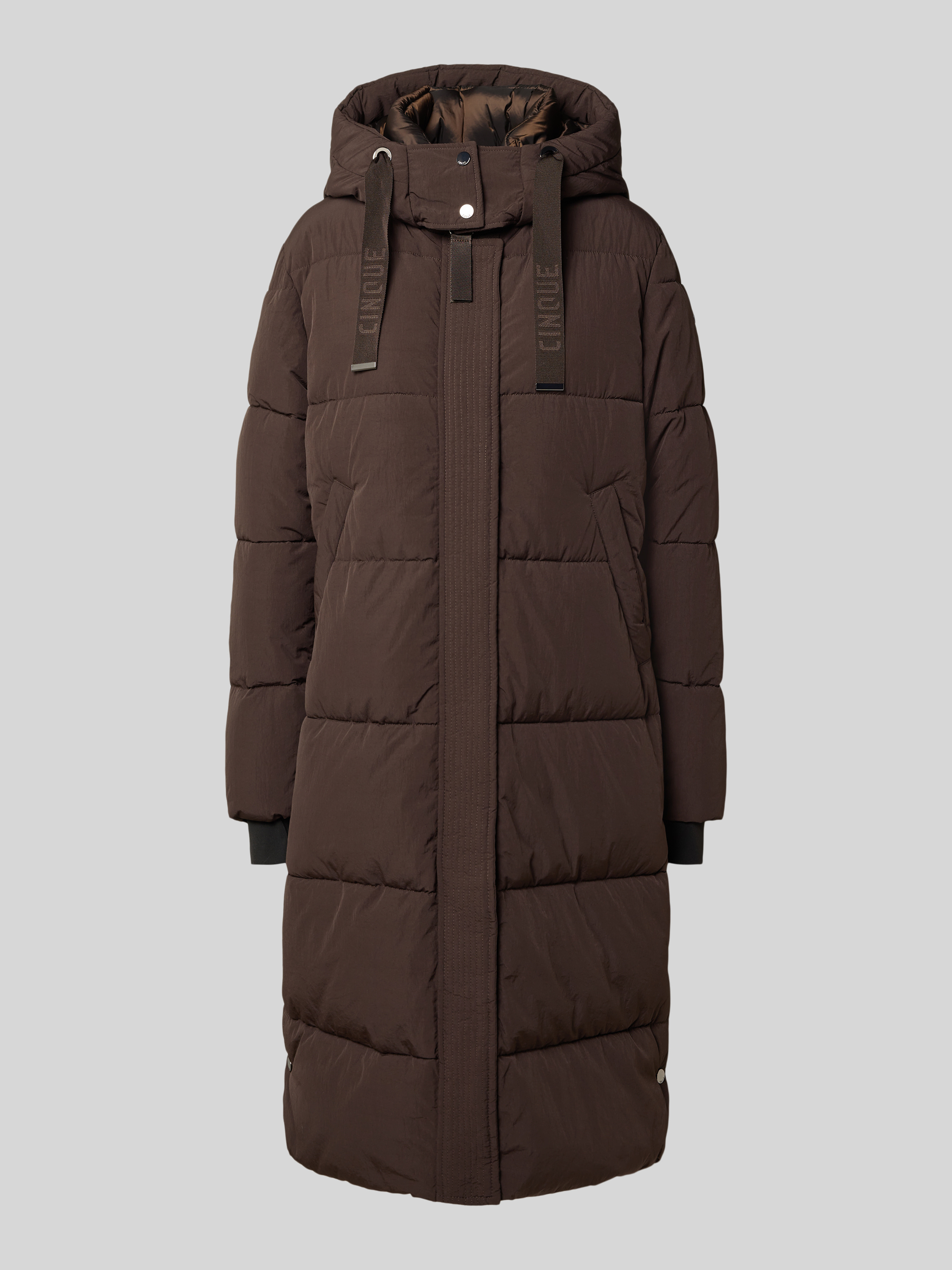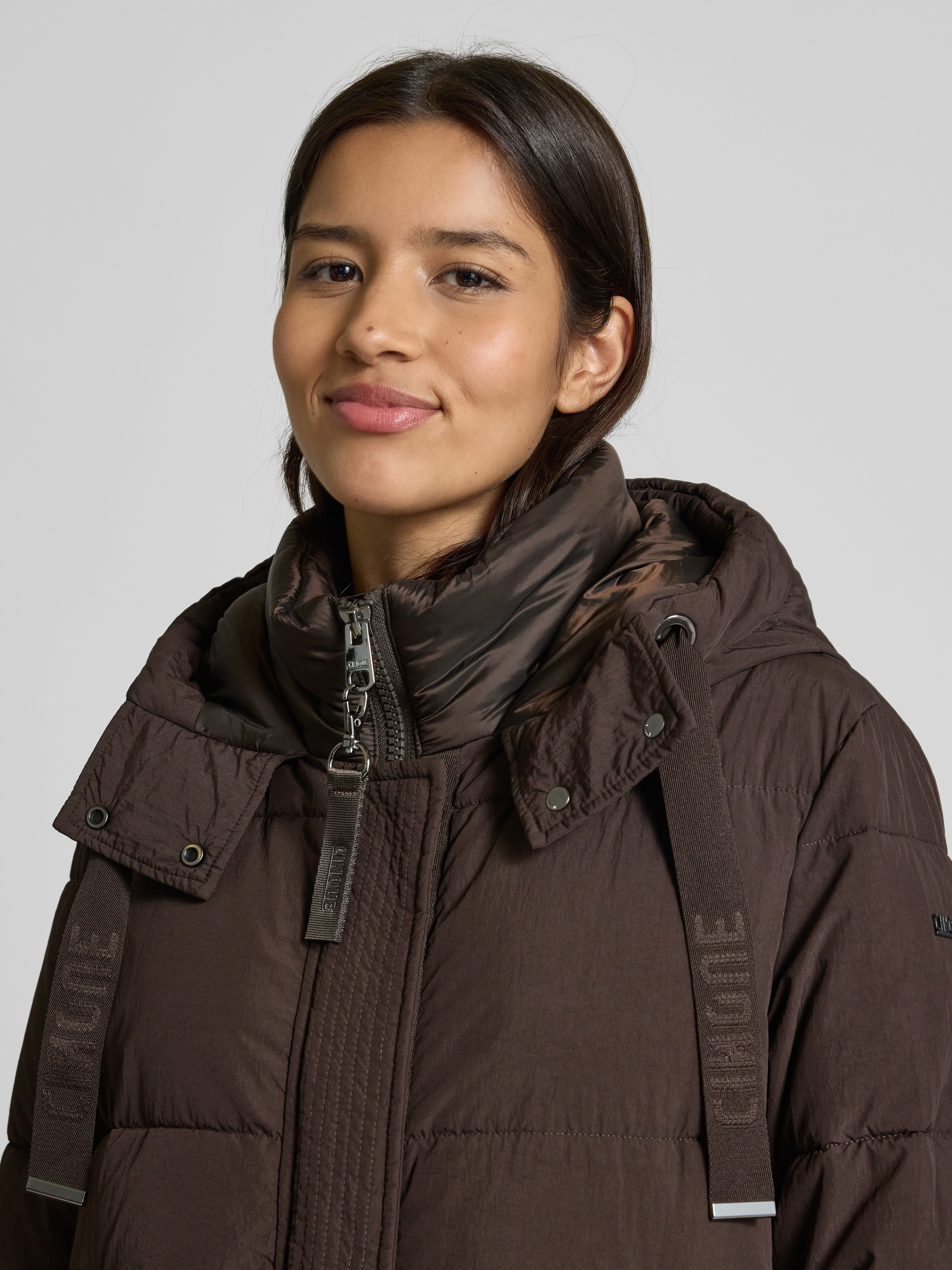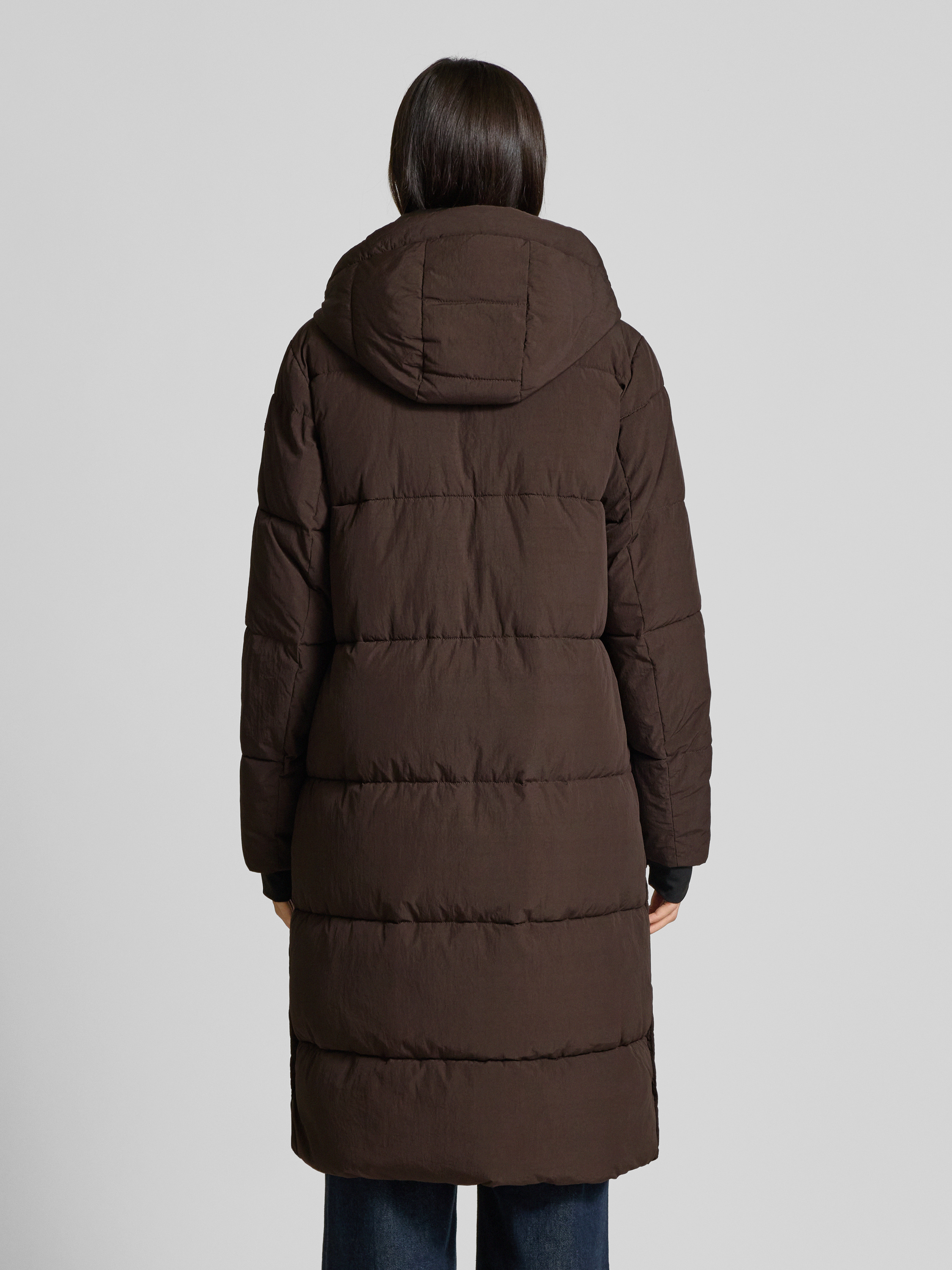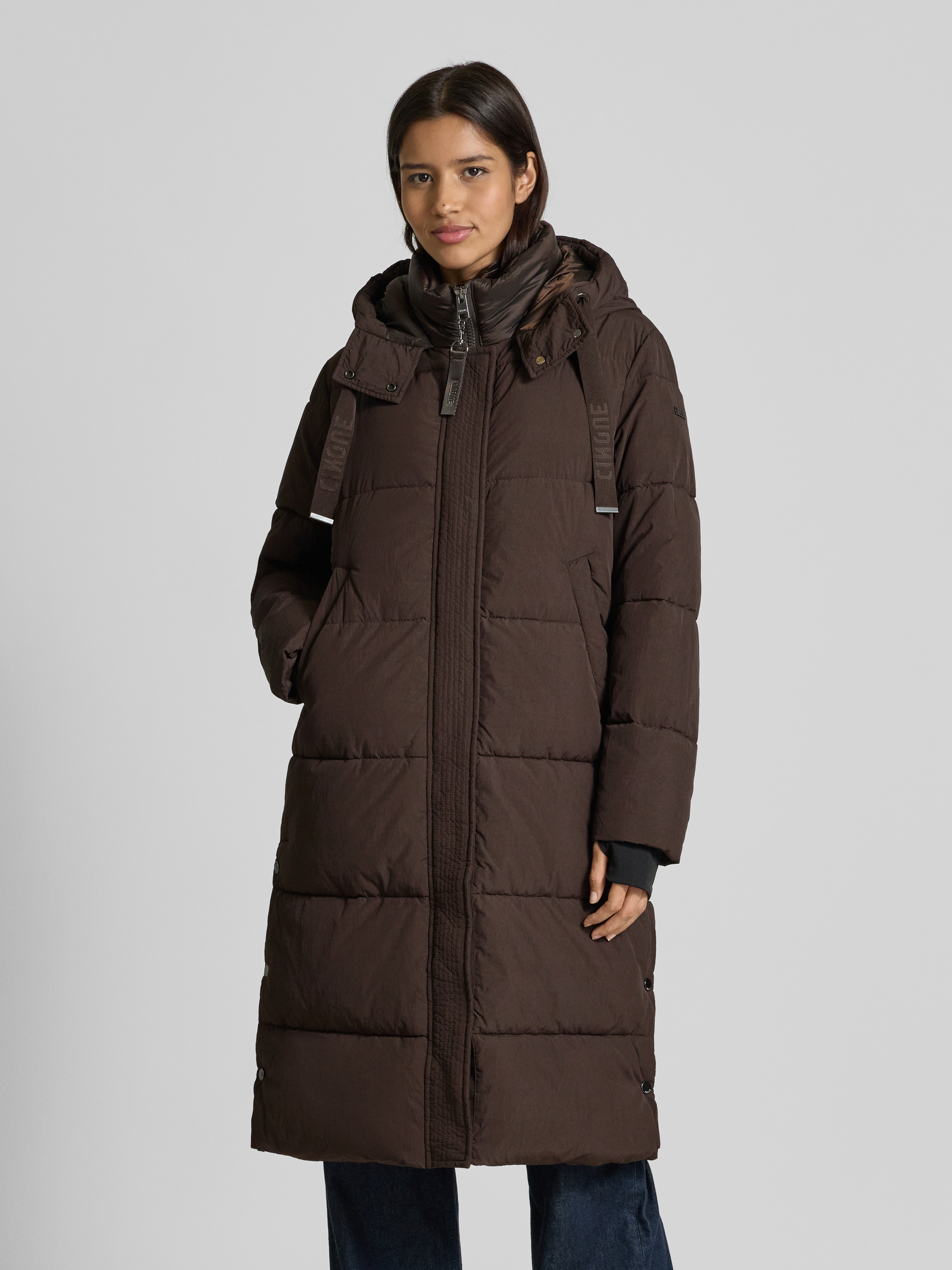 Płaszcz pikowany z kapturem model ‘COLOMBA’ - ciemnobrązowy