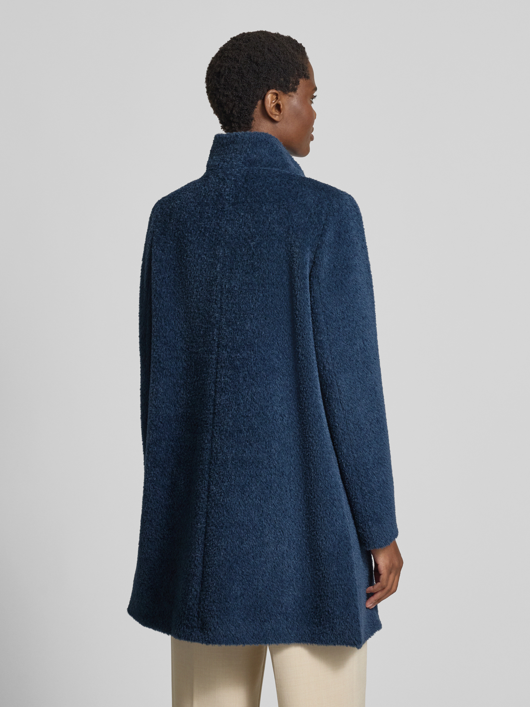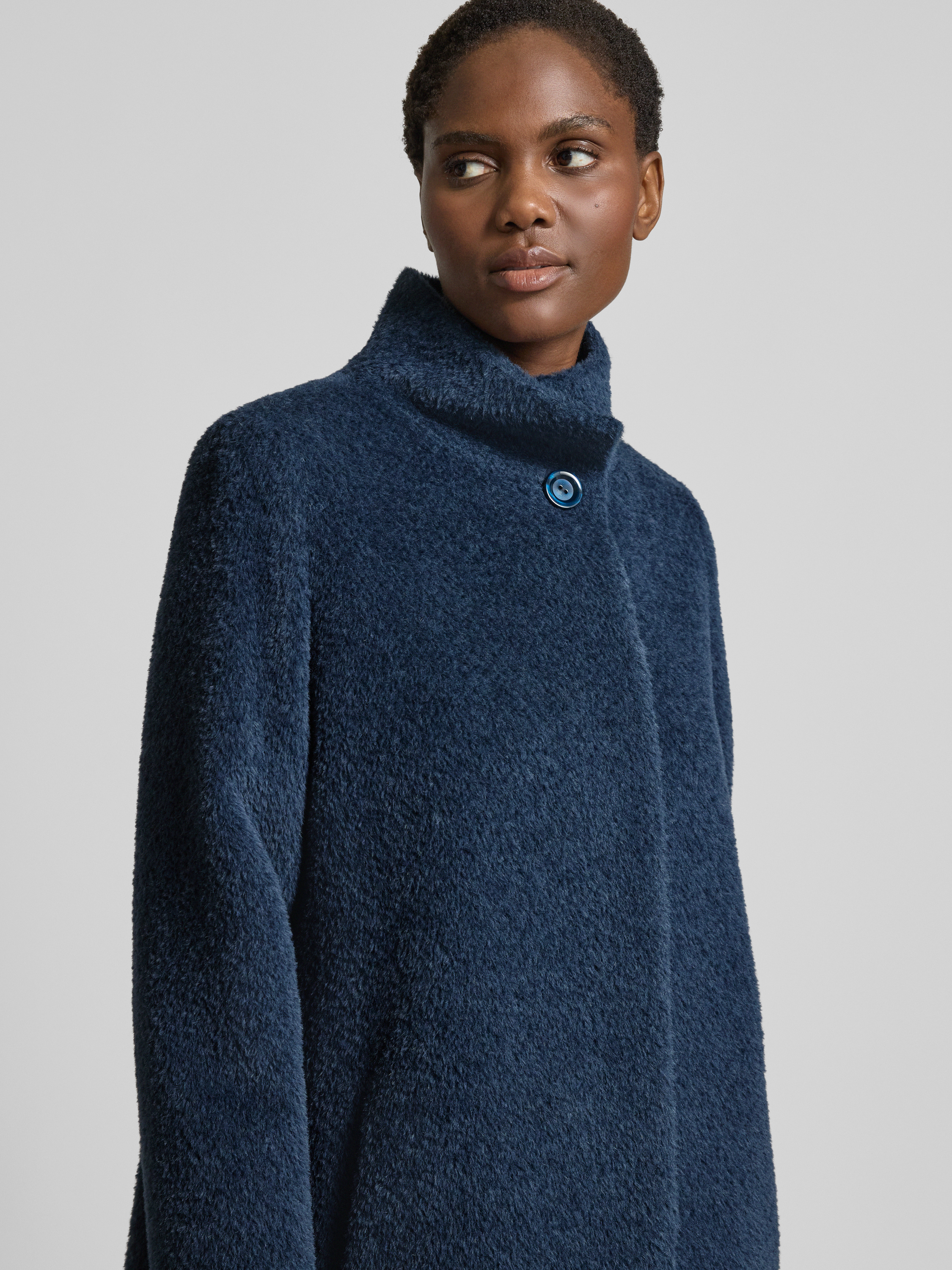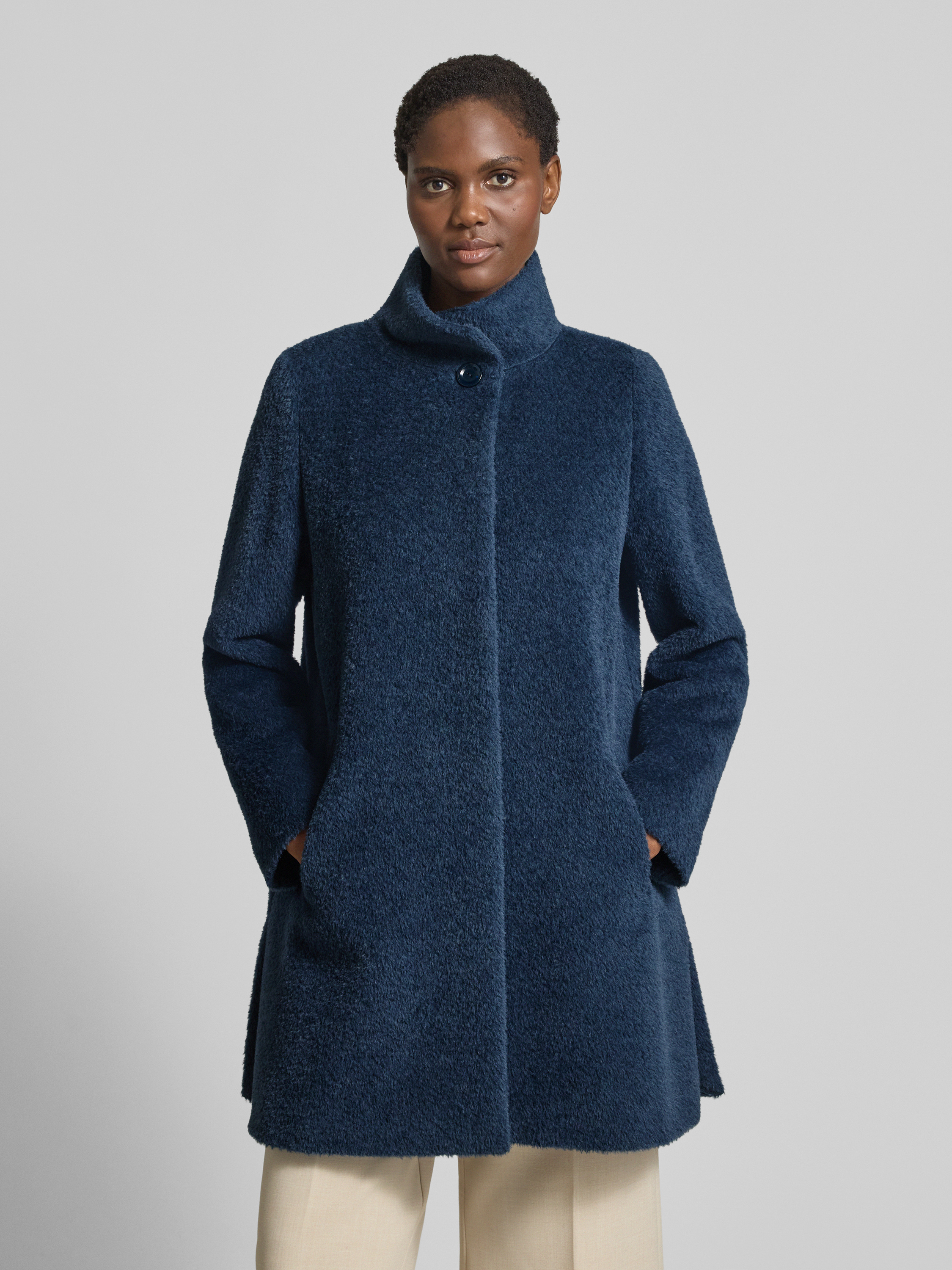 Płaszcz wełniany ze stójką - ciemnoniebieski