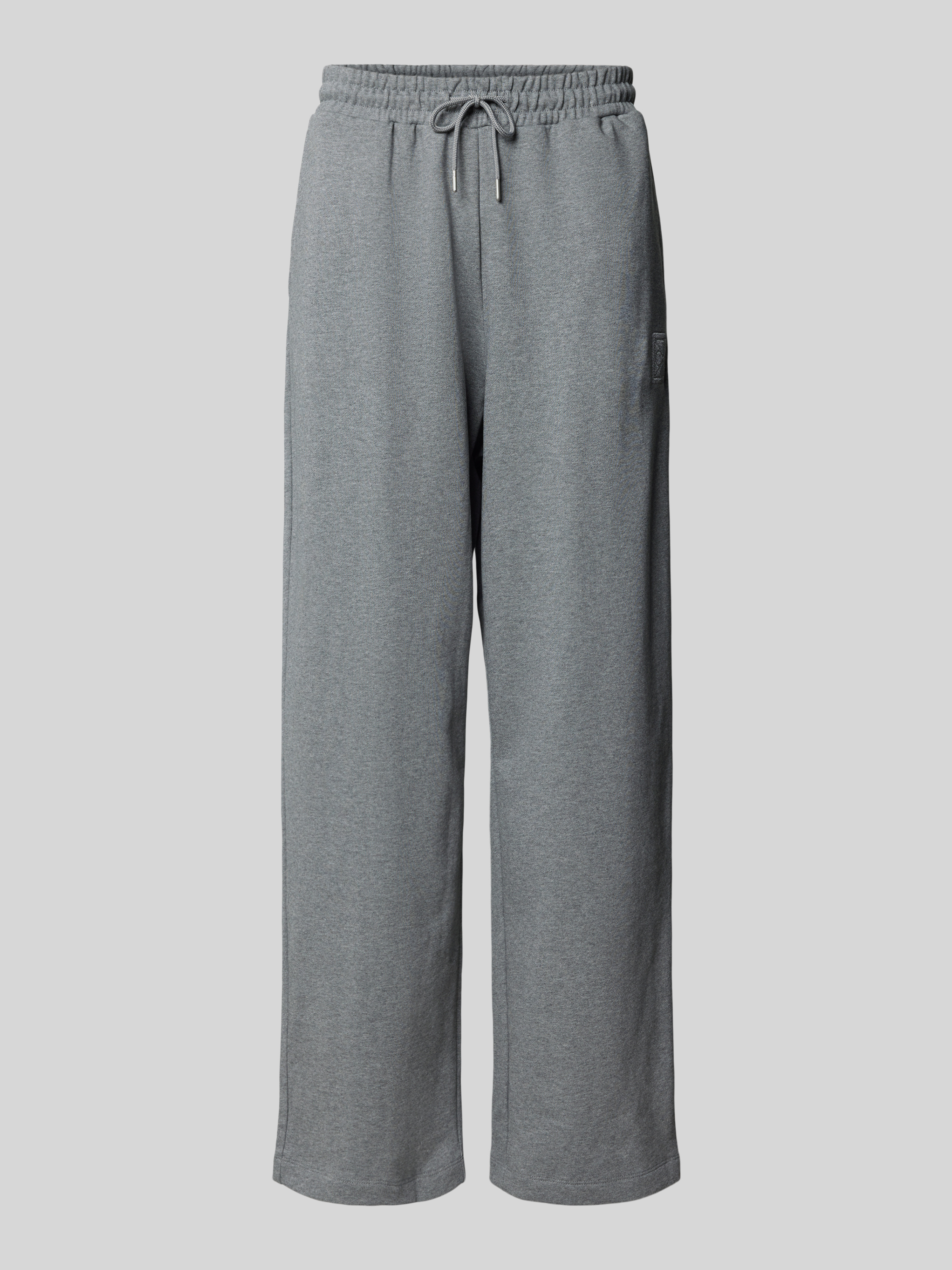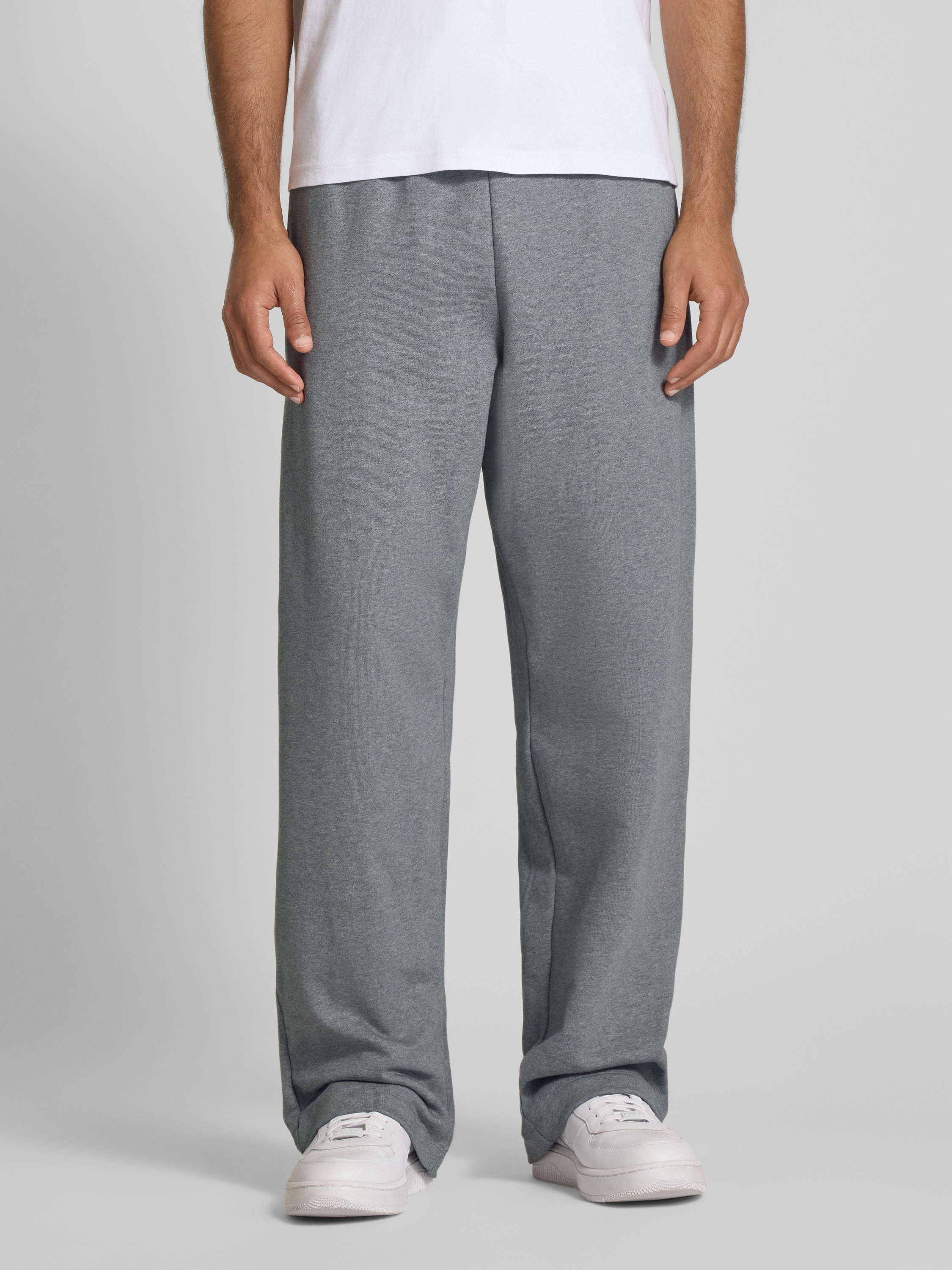 Spodnie dresowe o rozkloszowanym kroju z kieszeniami z tyłu model ‘PREMIUM TERRY’ - średnioszary melanż