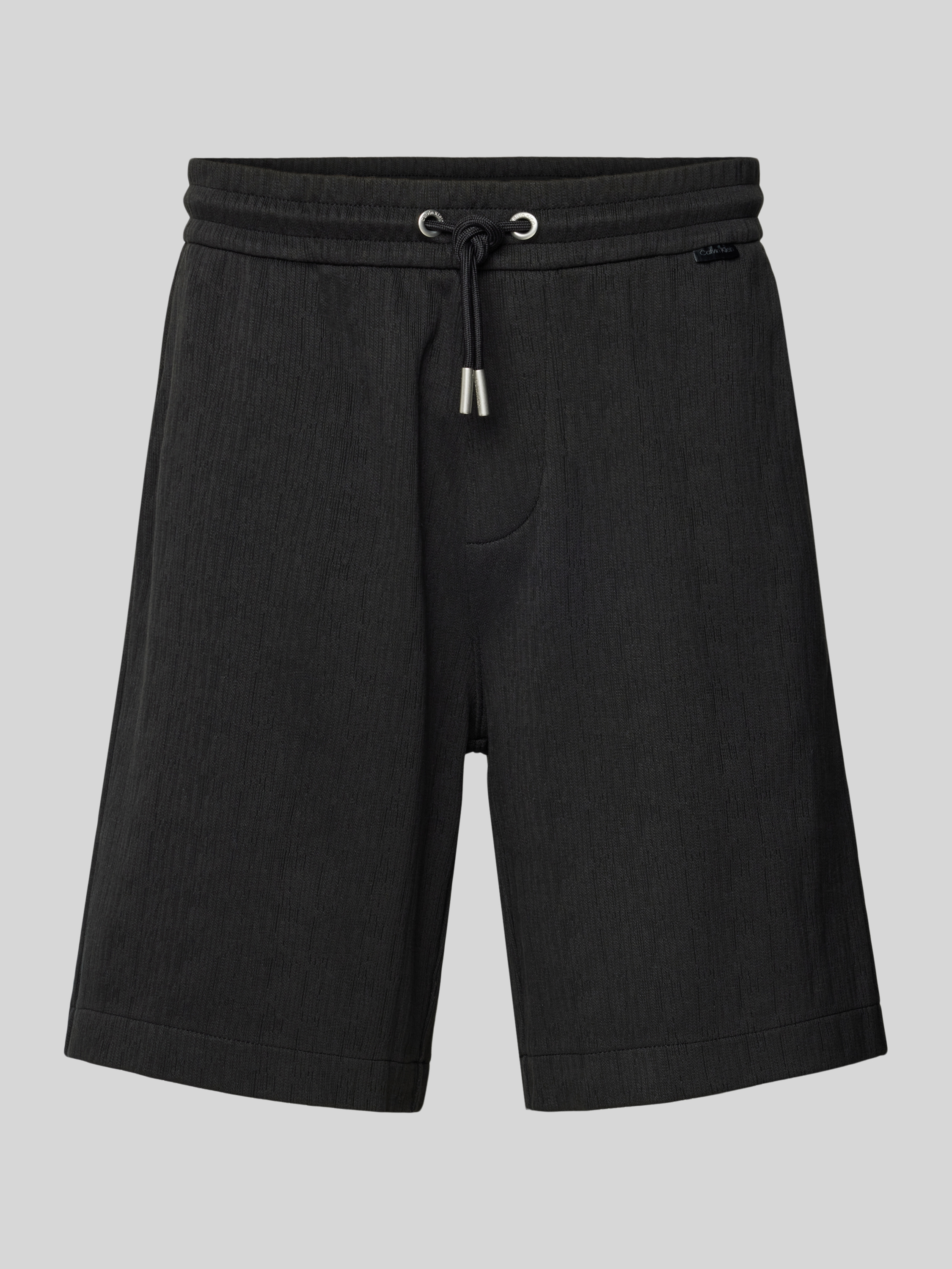 Szorty z dzianiny dresowej o kroju regular fit z detalem z logo - czarny