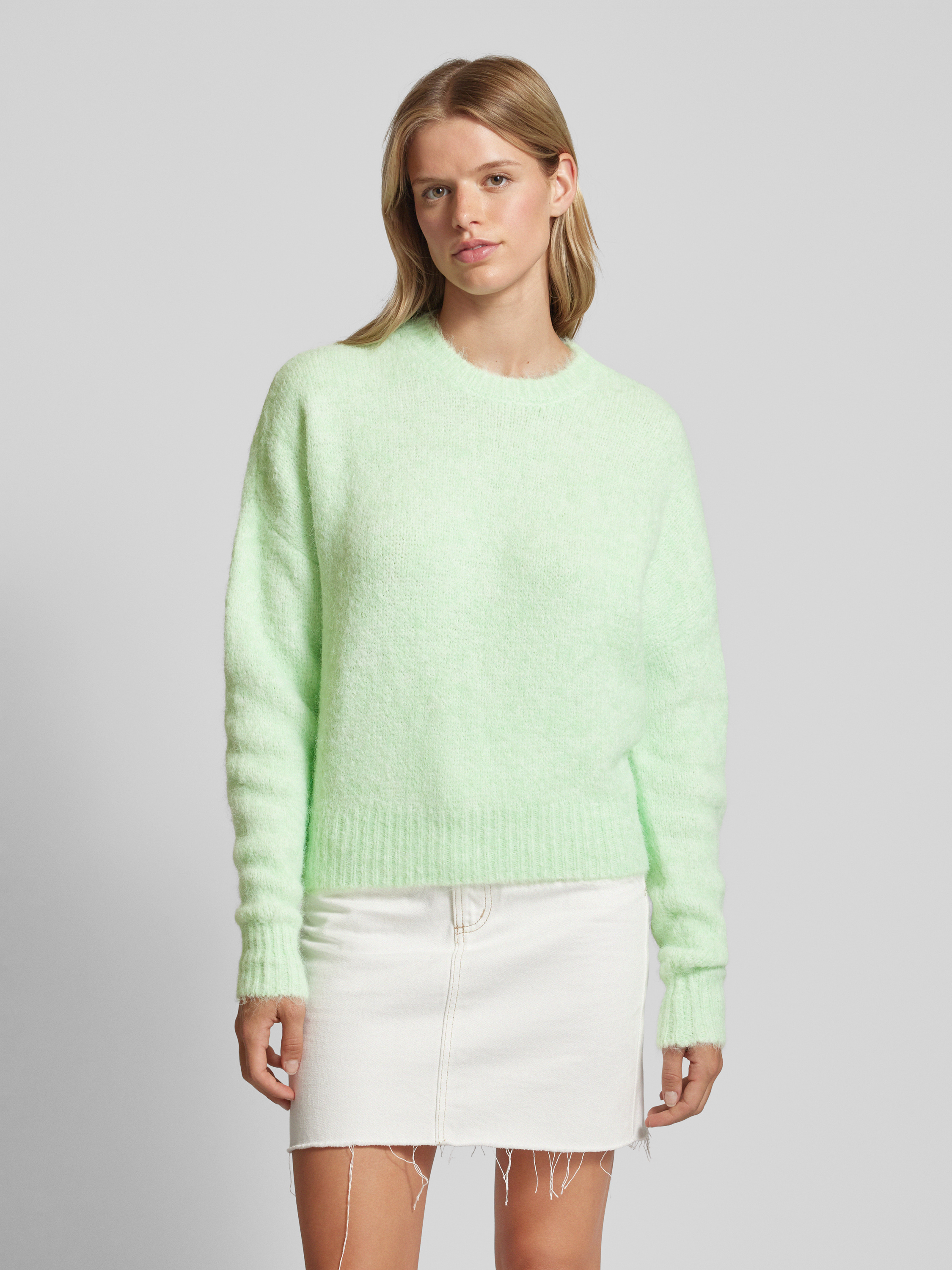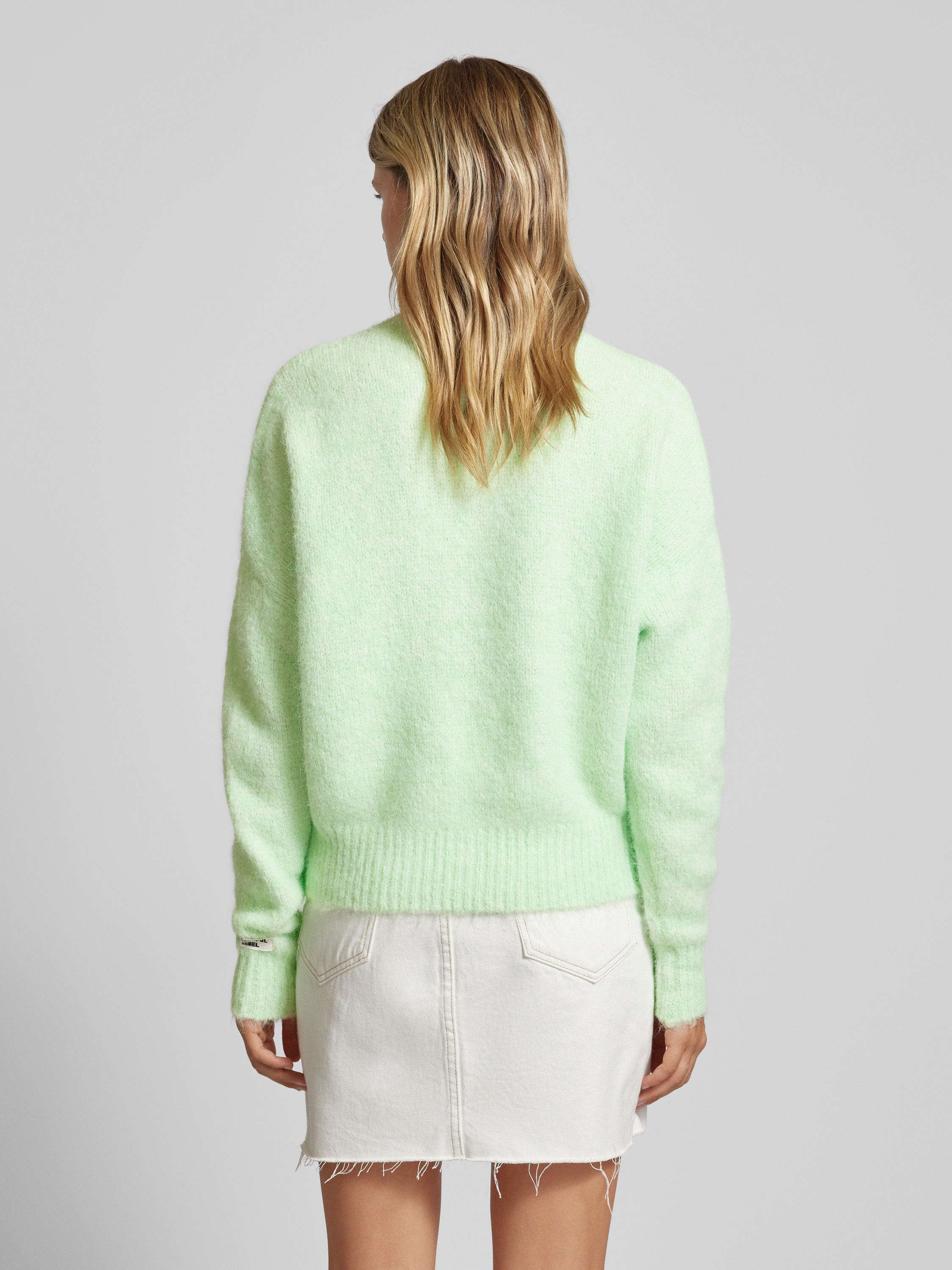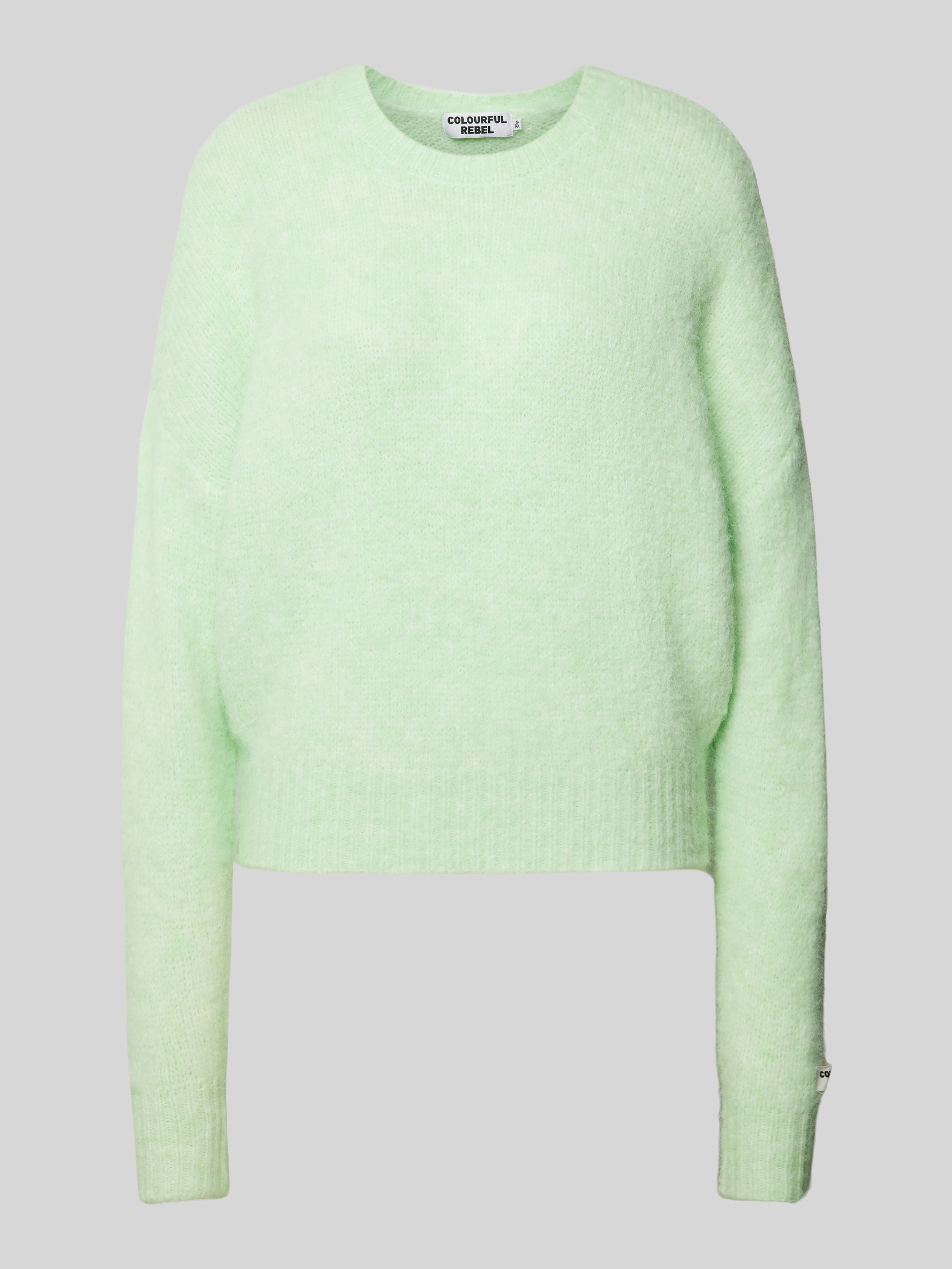 Sweter z dzianiny z okrągłym dekoltem model ‘Olivia’ - miętowy