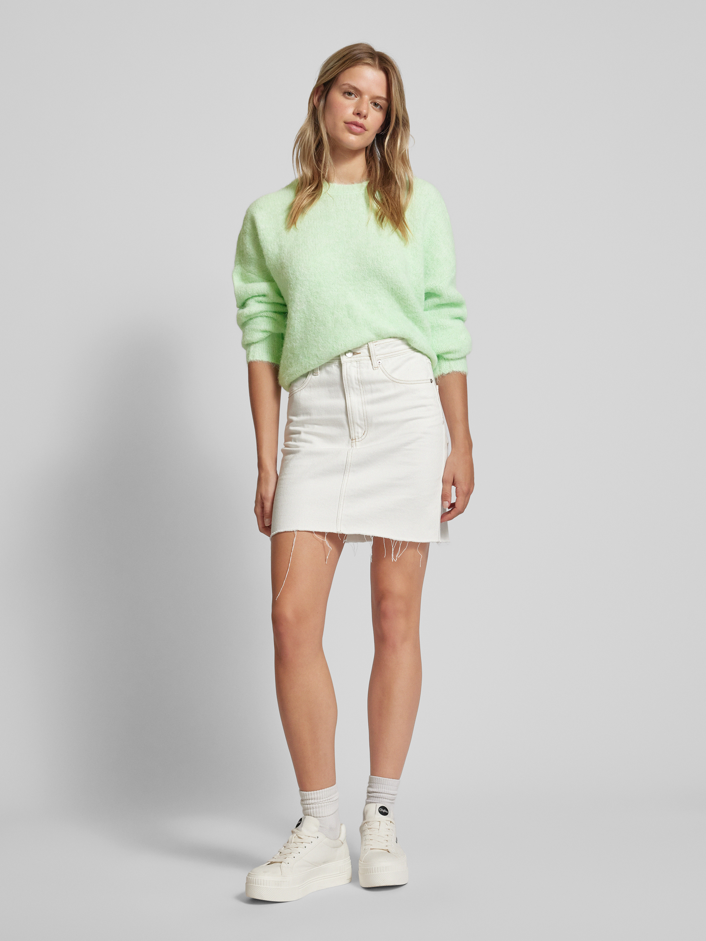 Spódnica jeansowa z brzegiem bez wykończenia model ‘Fibi’