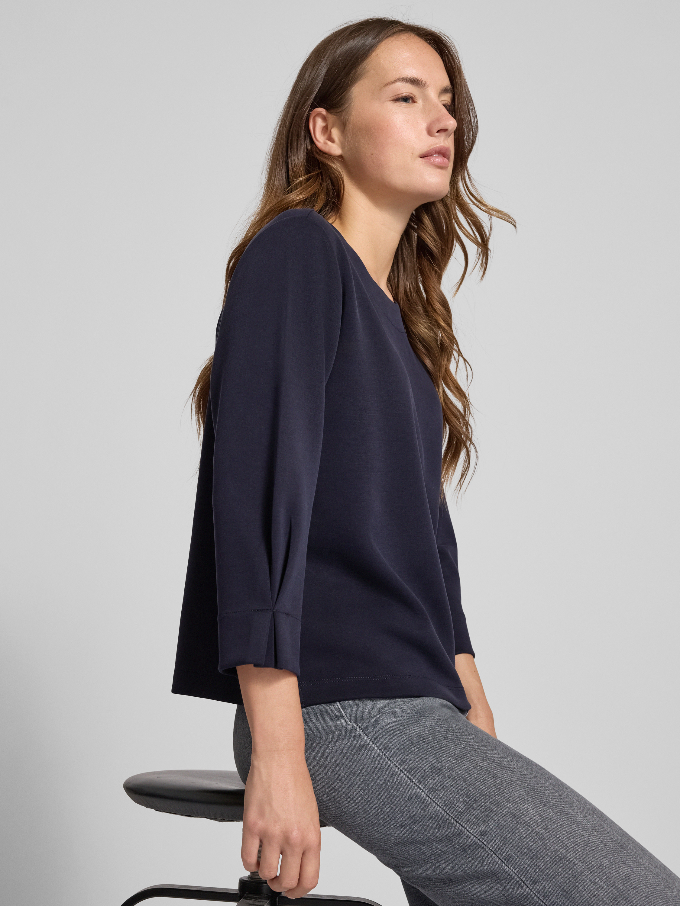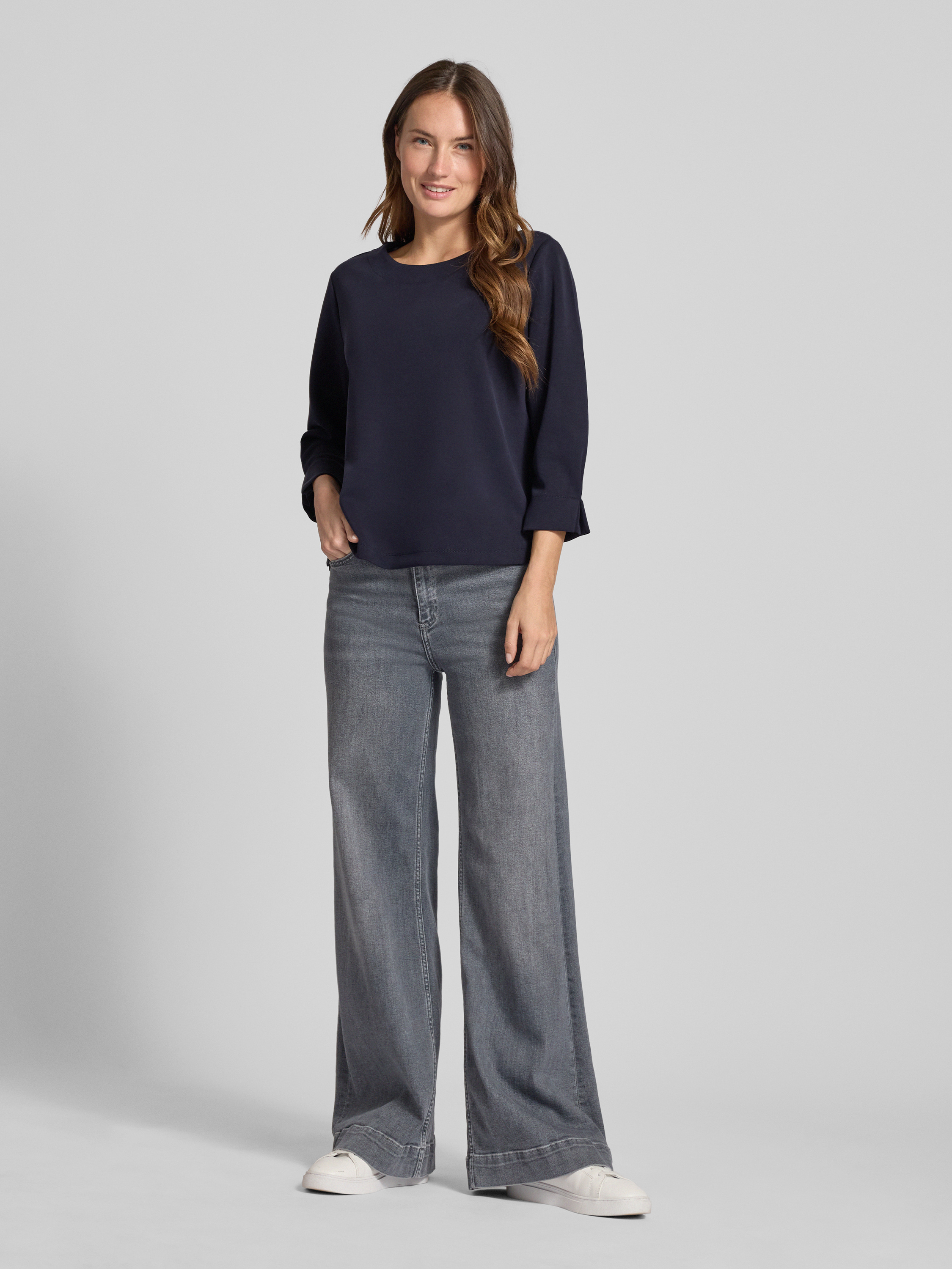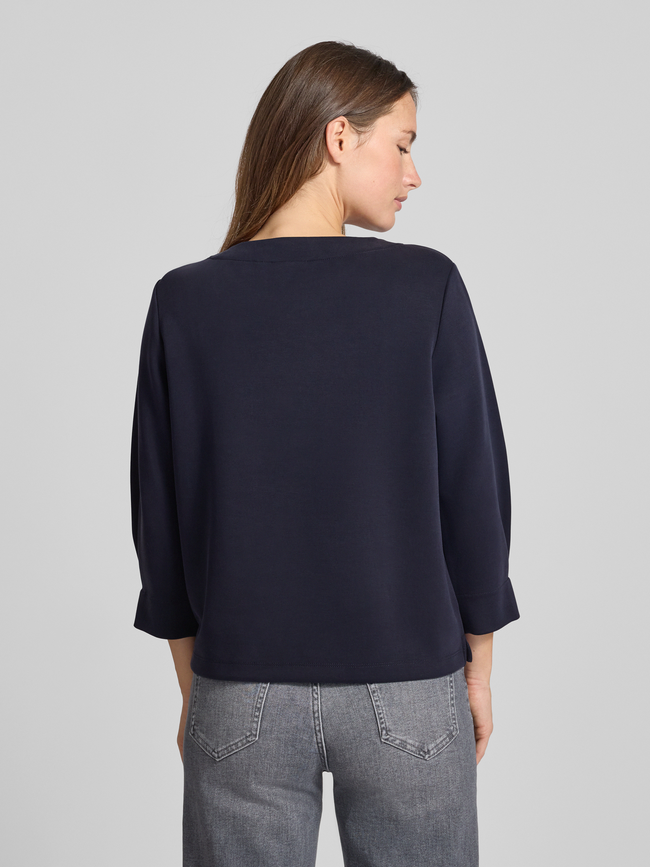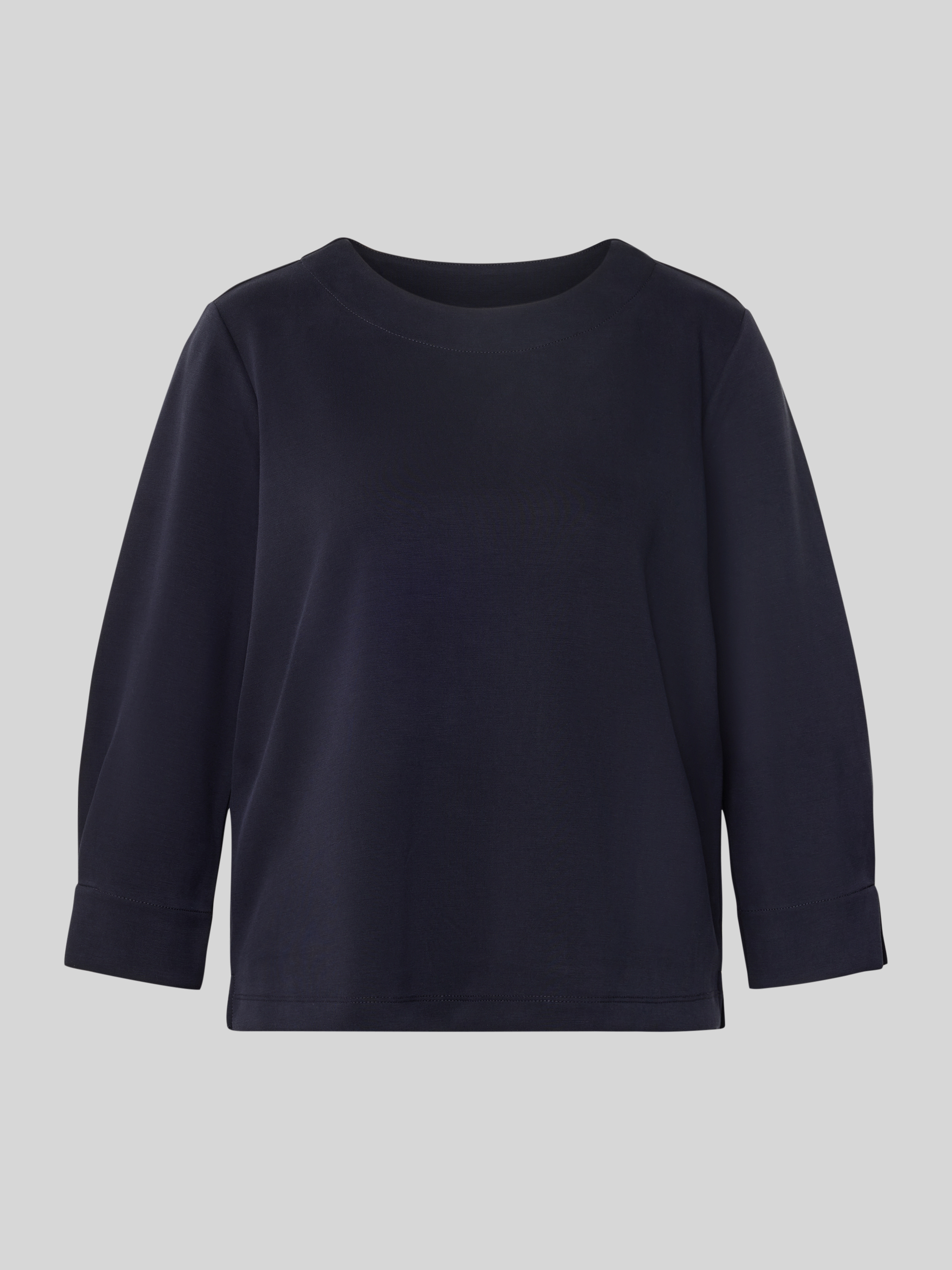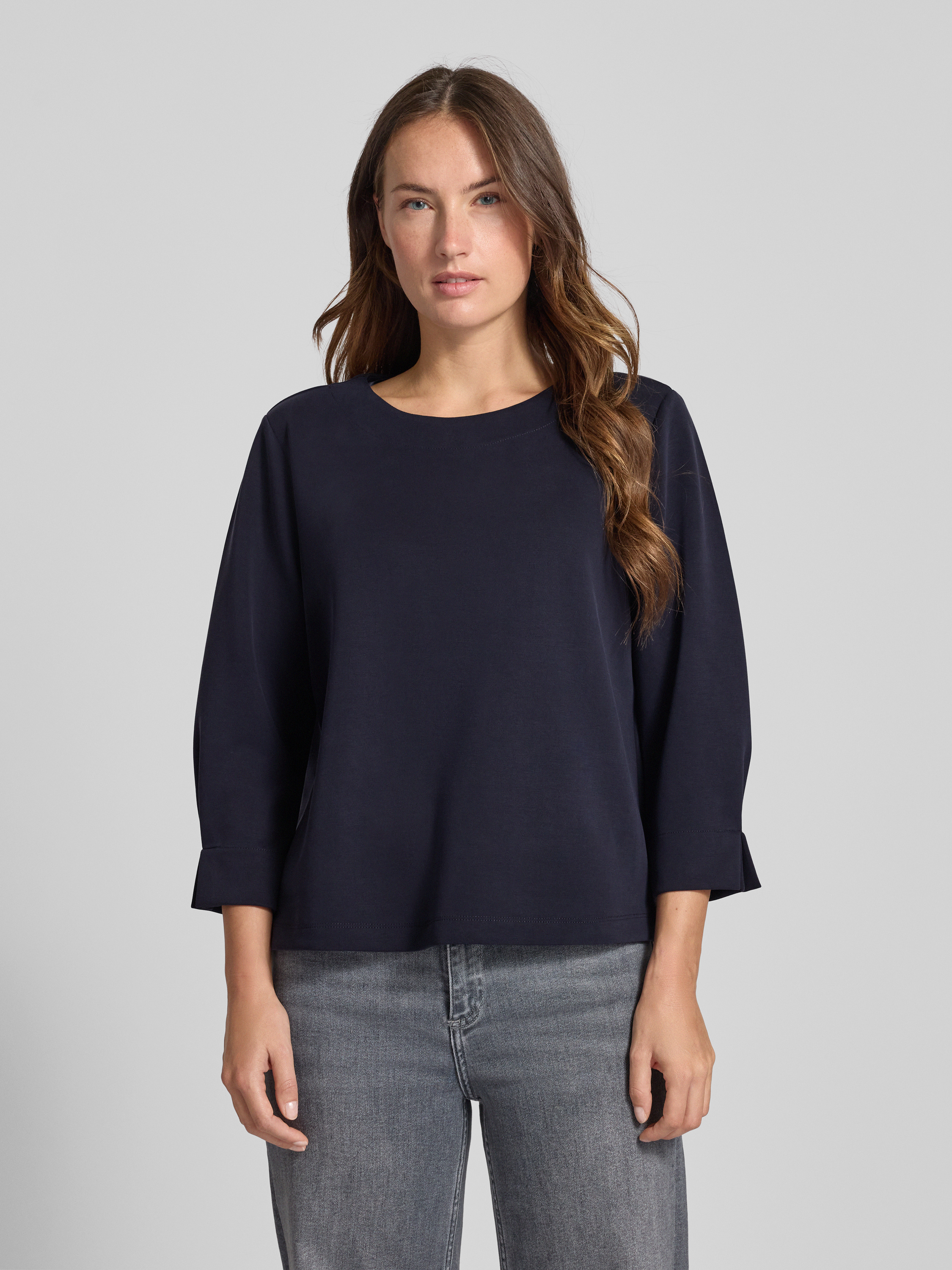Bluza z prążkowanym, okrągłym dekoltem - ciemnoniebieski
