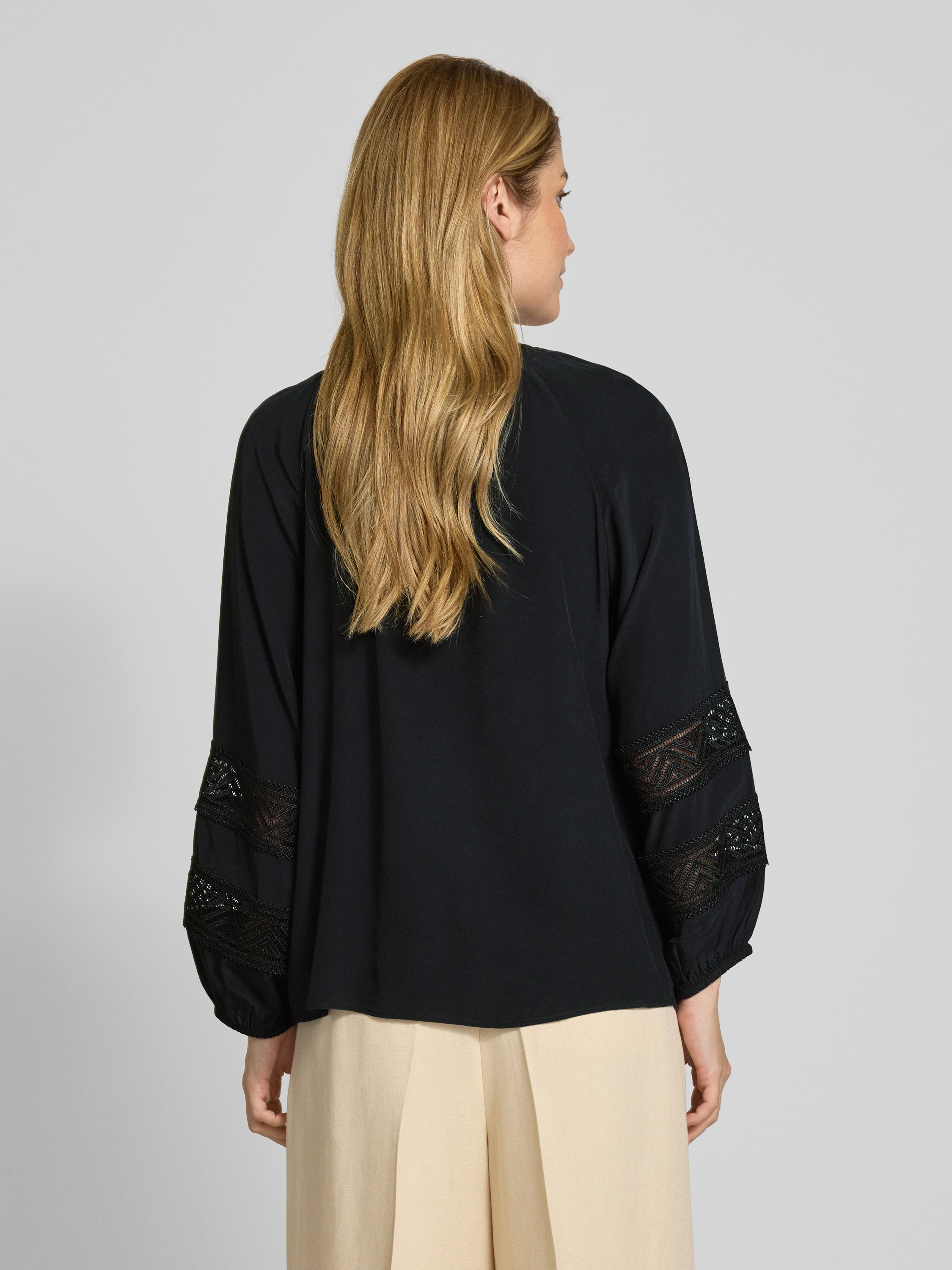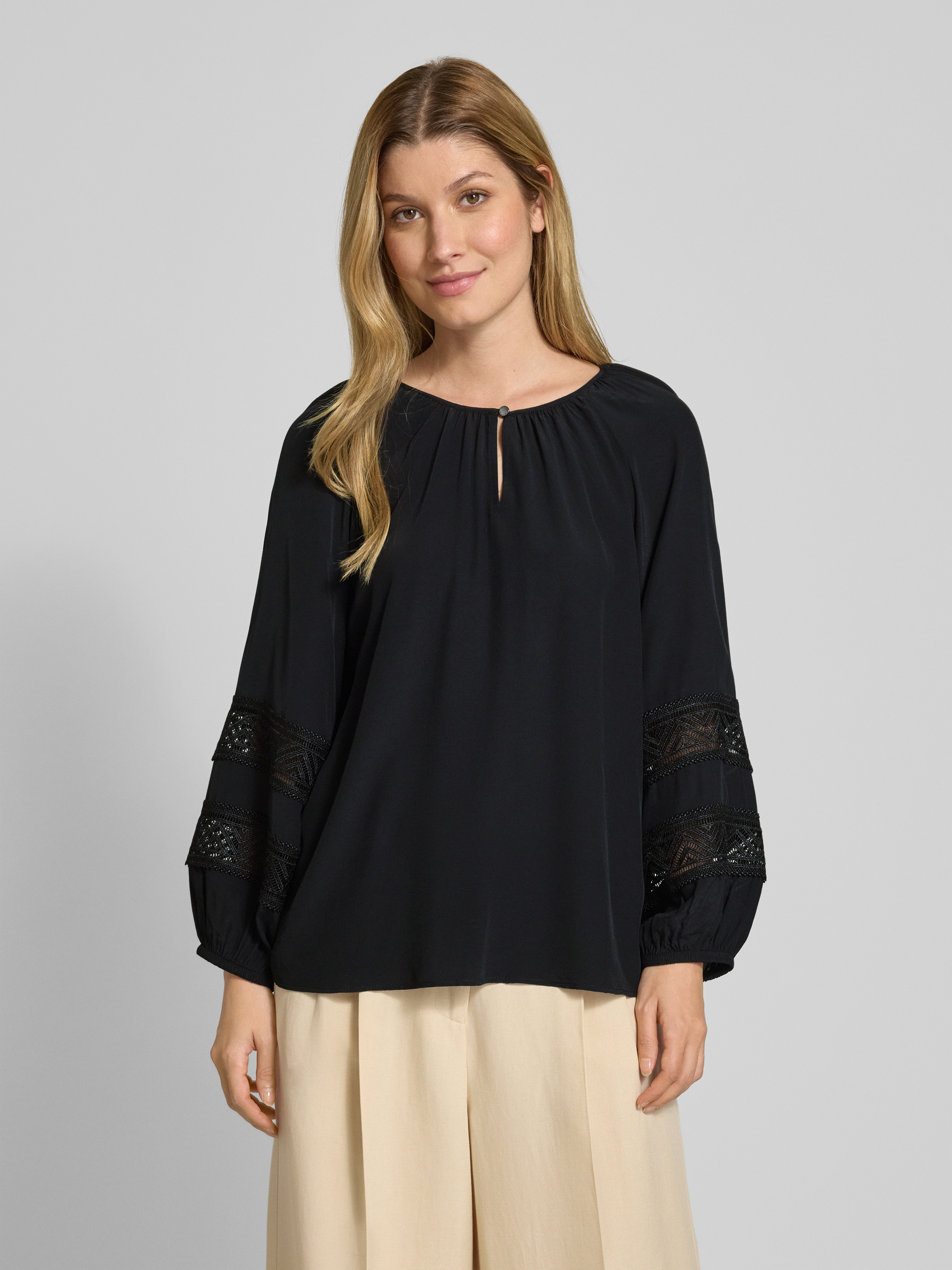Bluzka o kroju regular fit z wiskozy z koronką - czarny