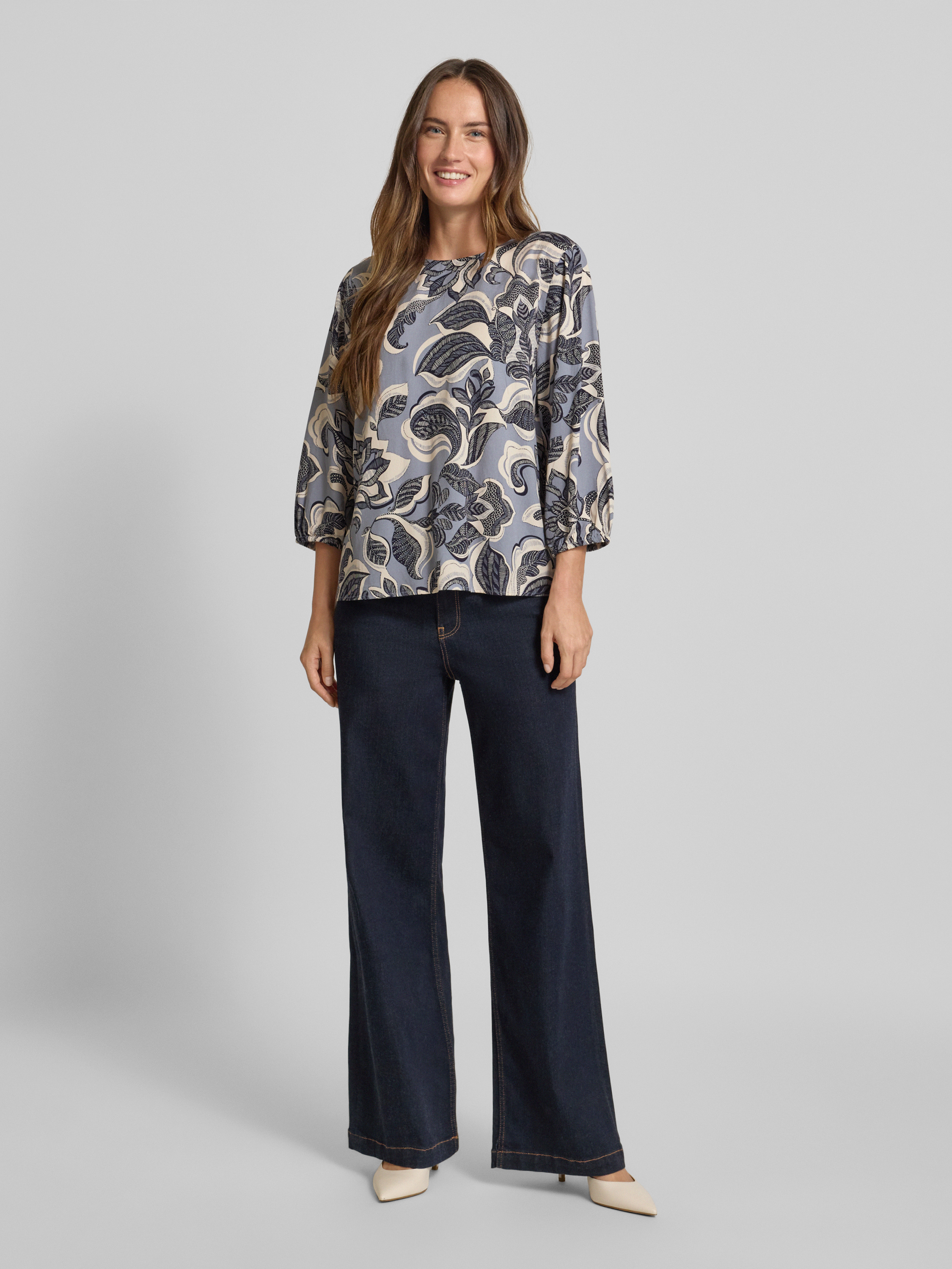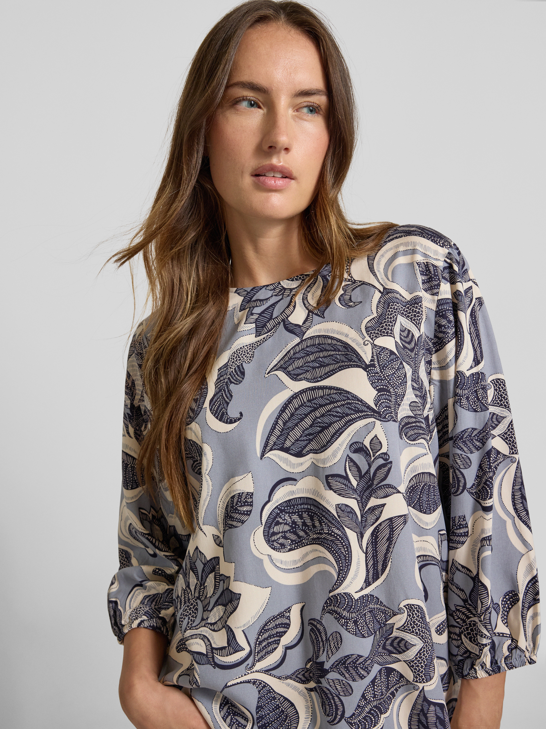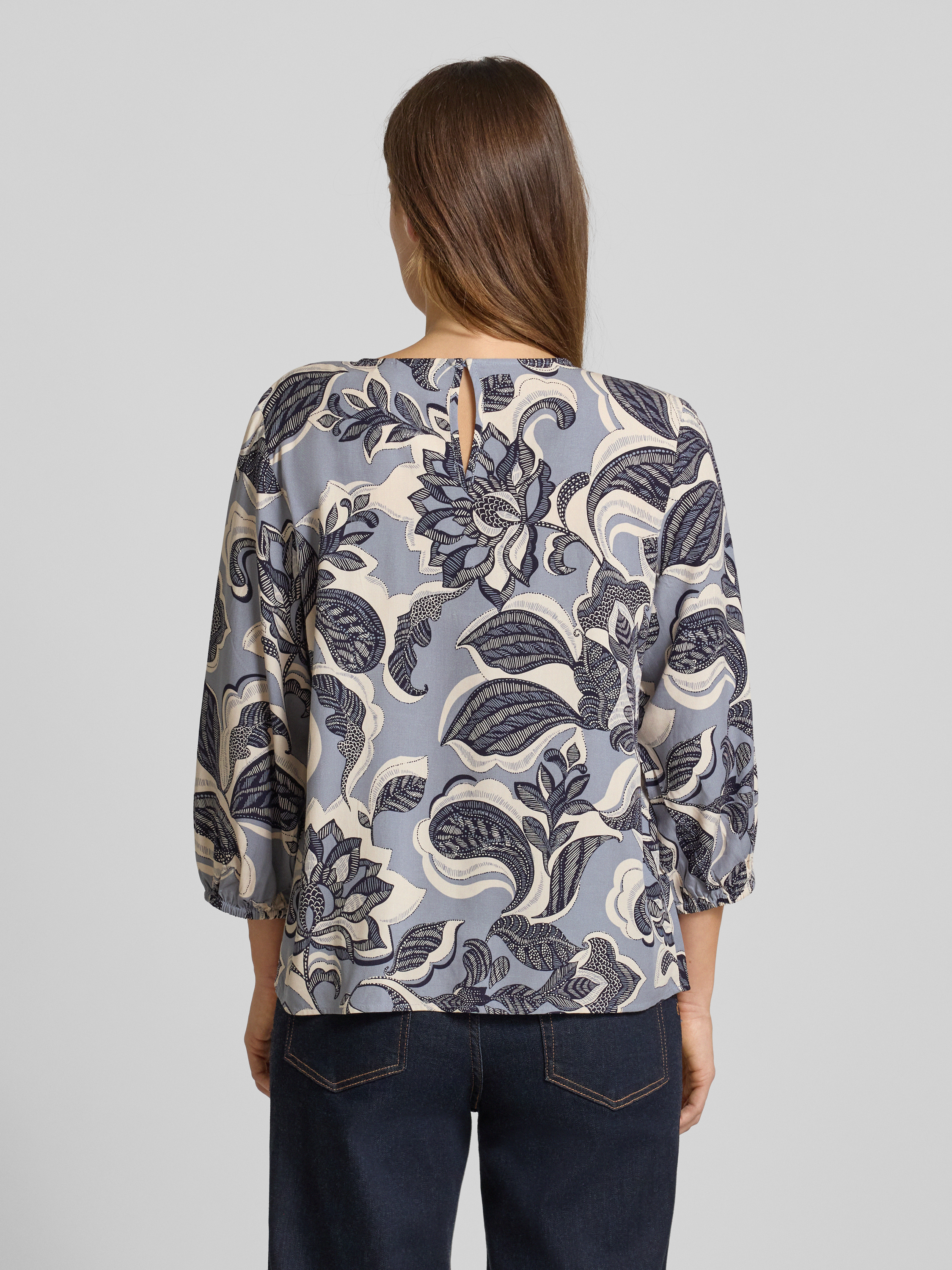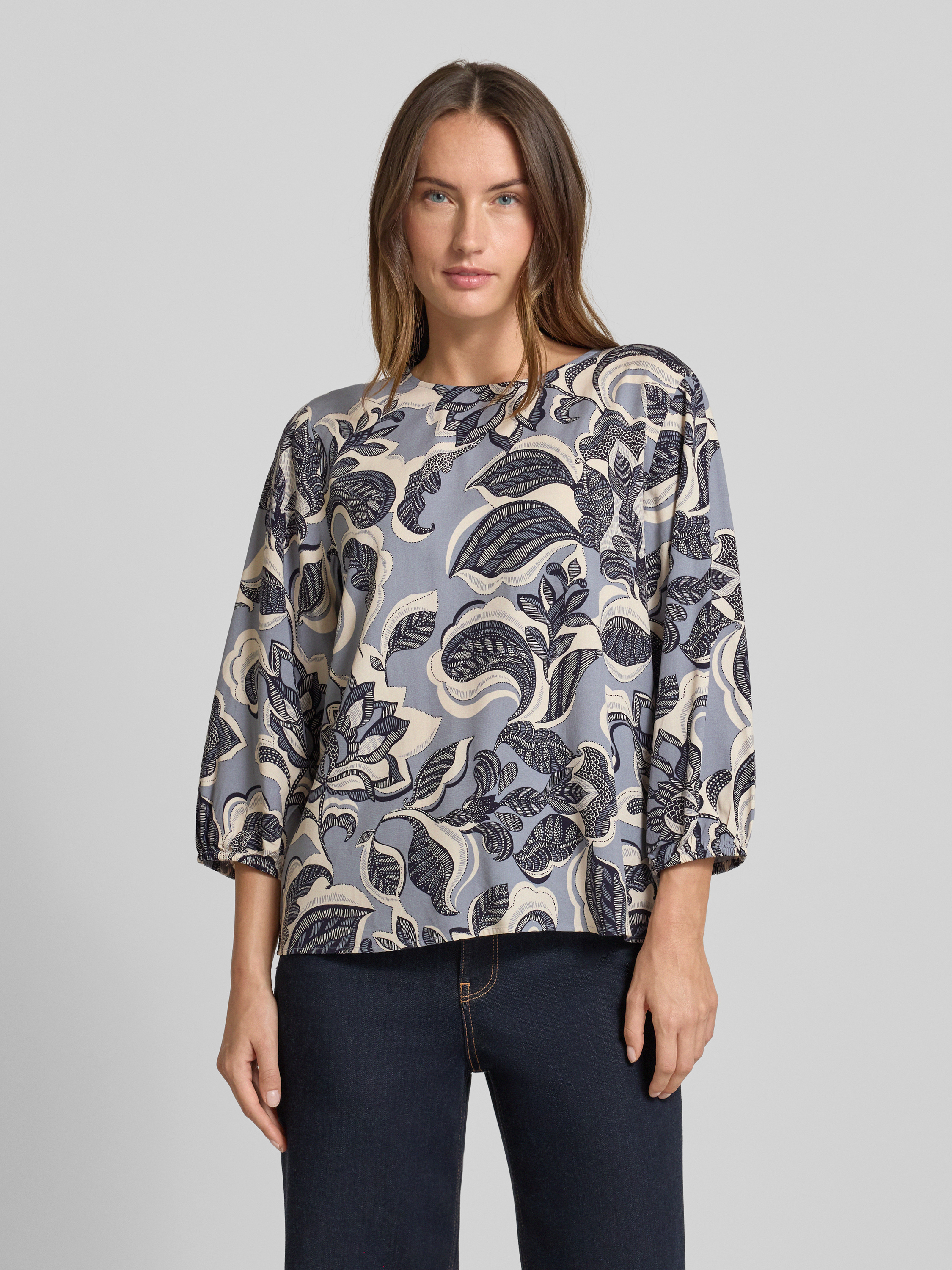 commaBluzka z wiskozy z rękawami o dł. 3/4 - szaroniebieski