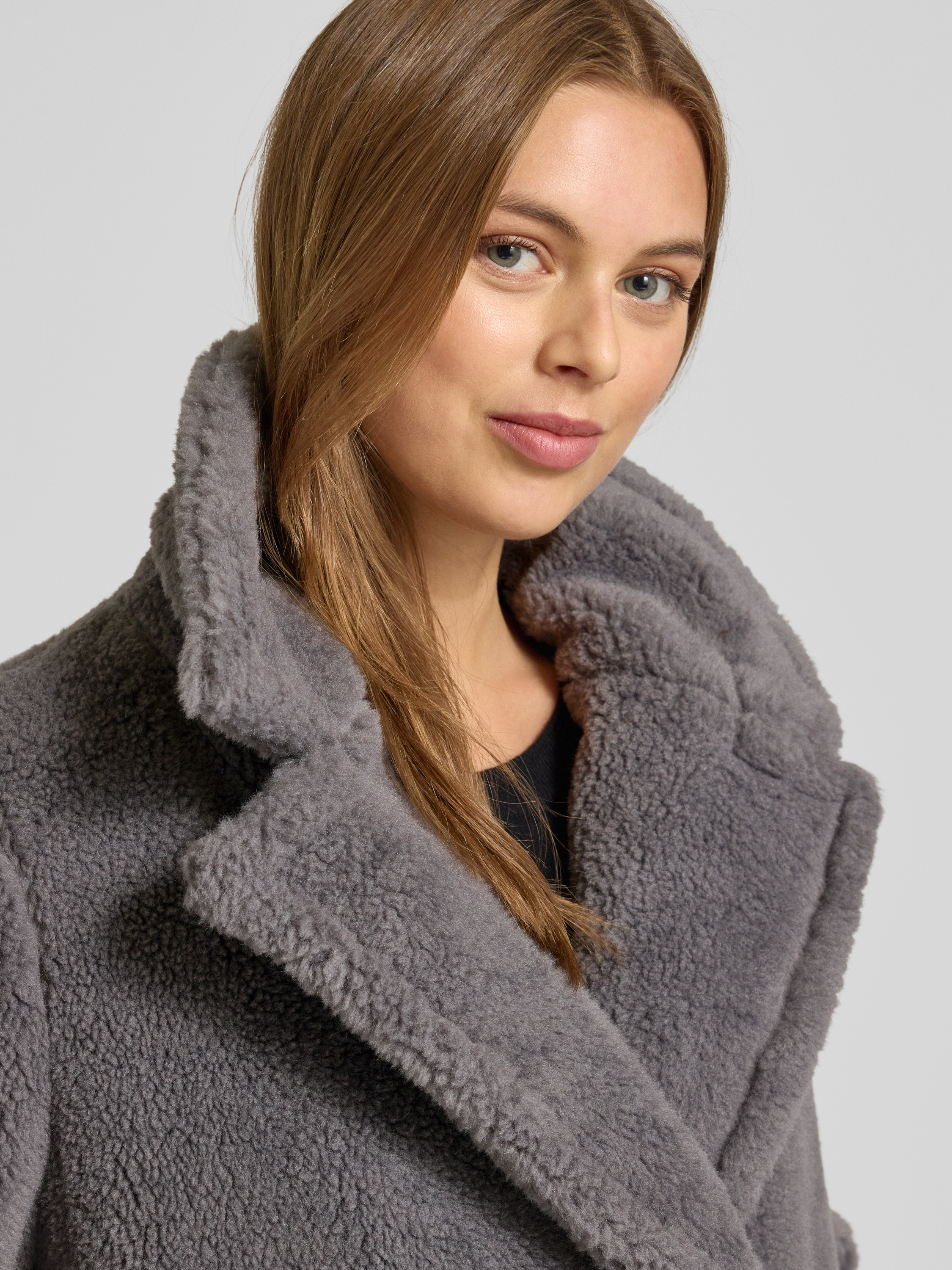 • comma Płaszcz ze sztucznego futra z połami Szaroniebieski