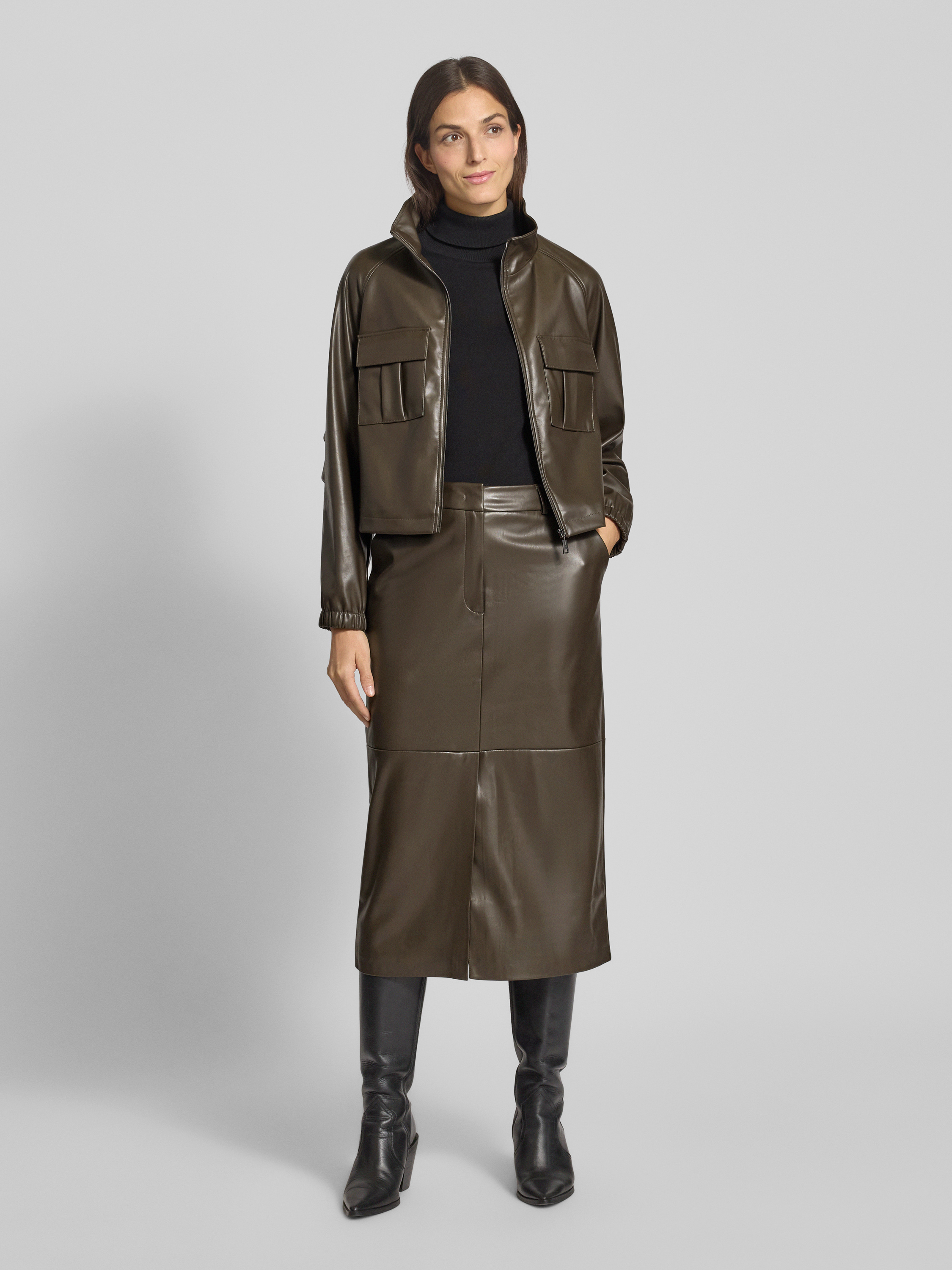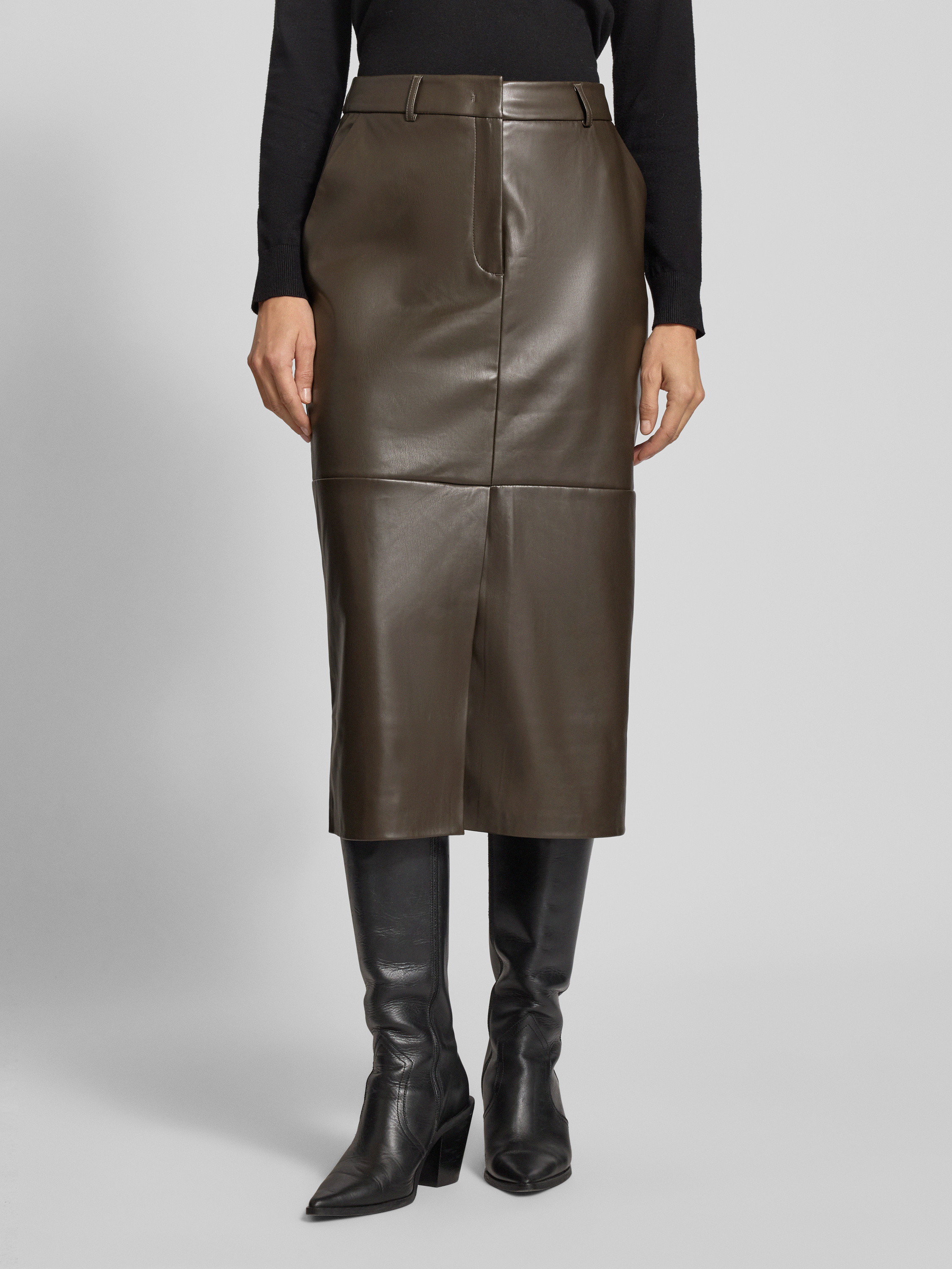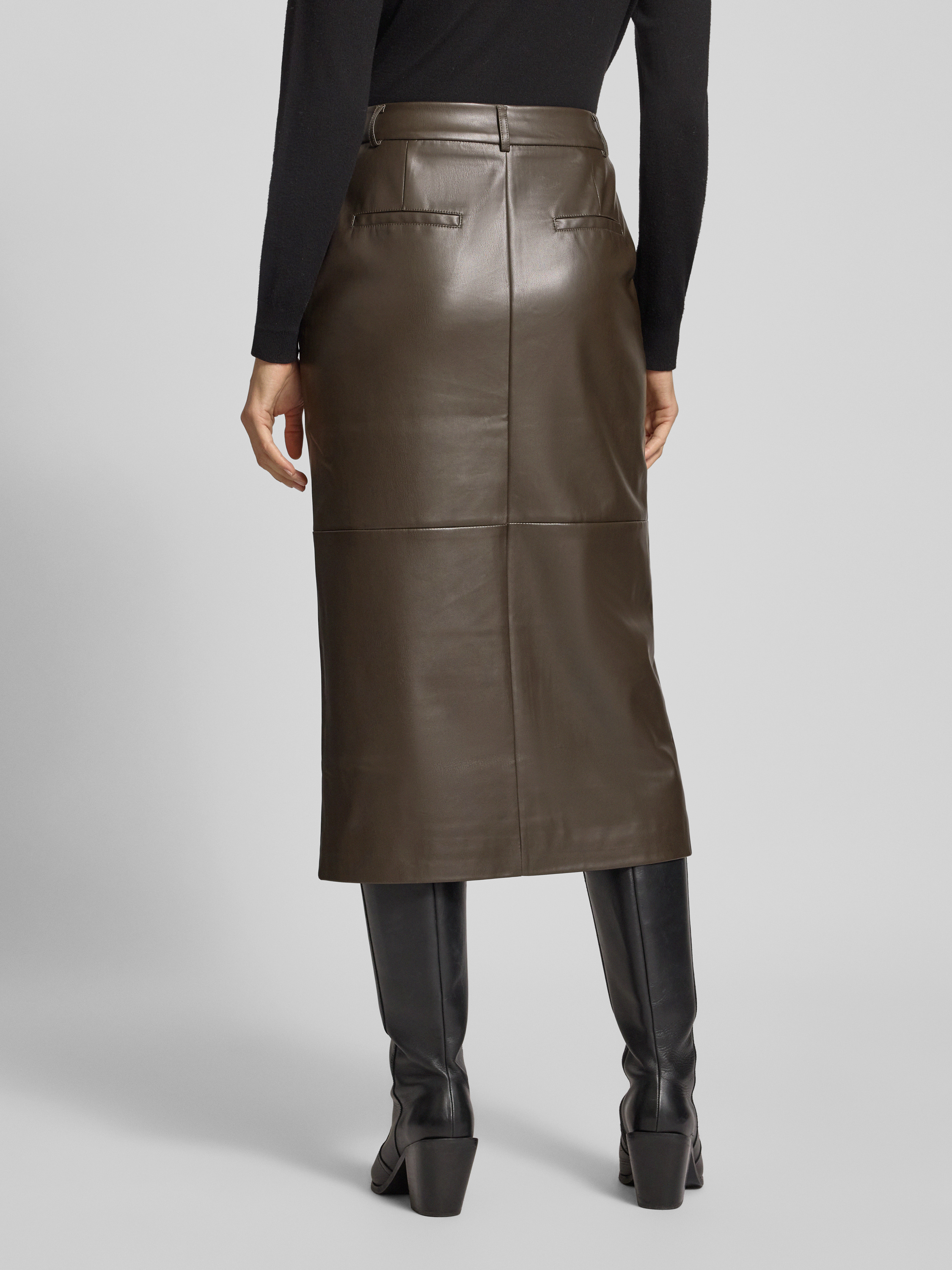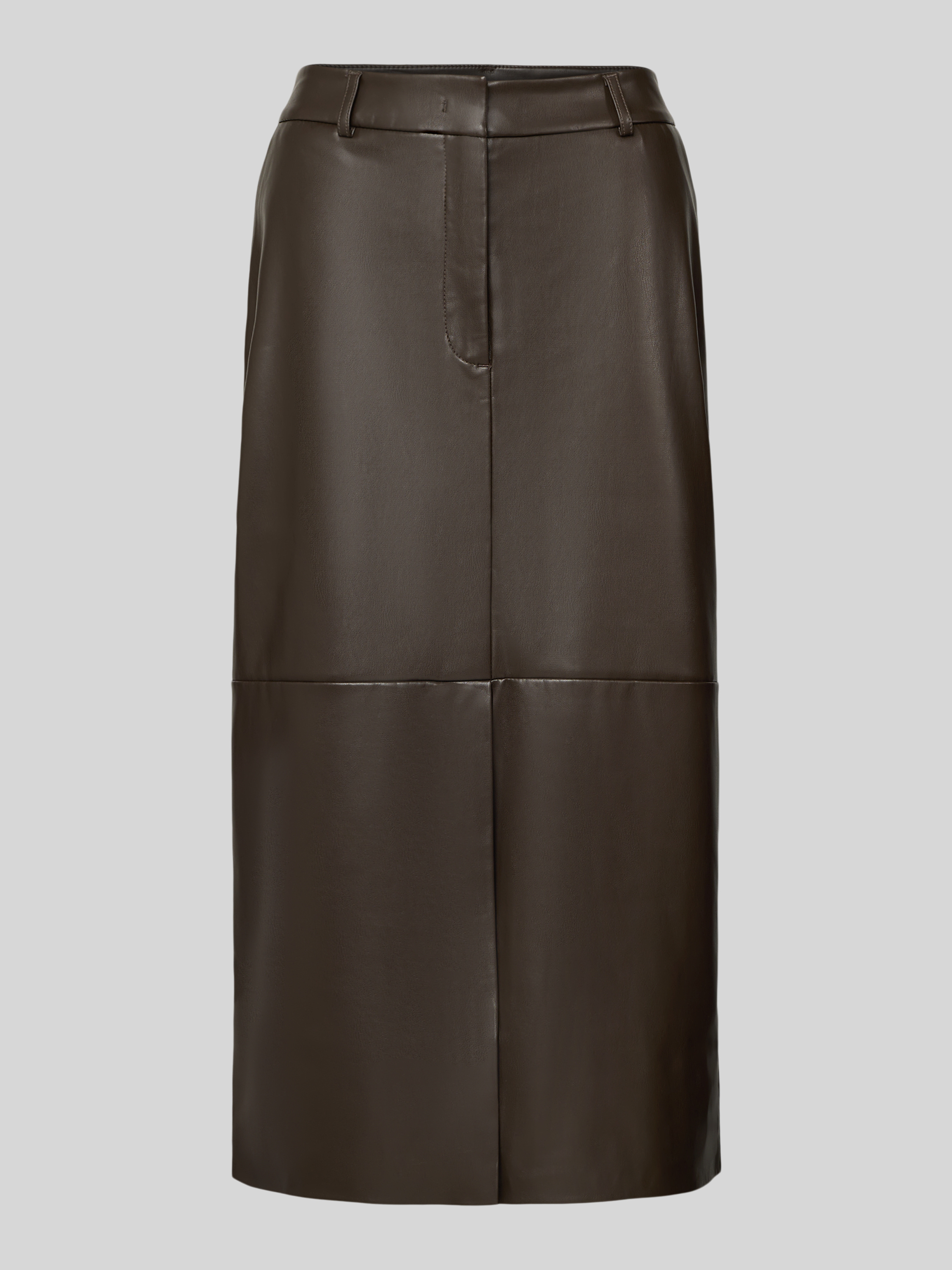 Spódnica midi z imitacji skóry - ciemnobrązowy