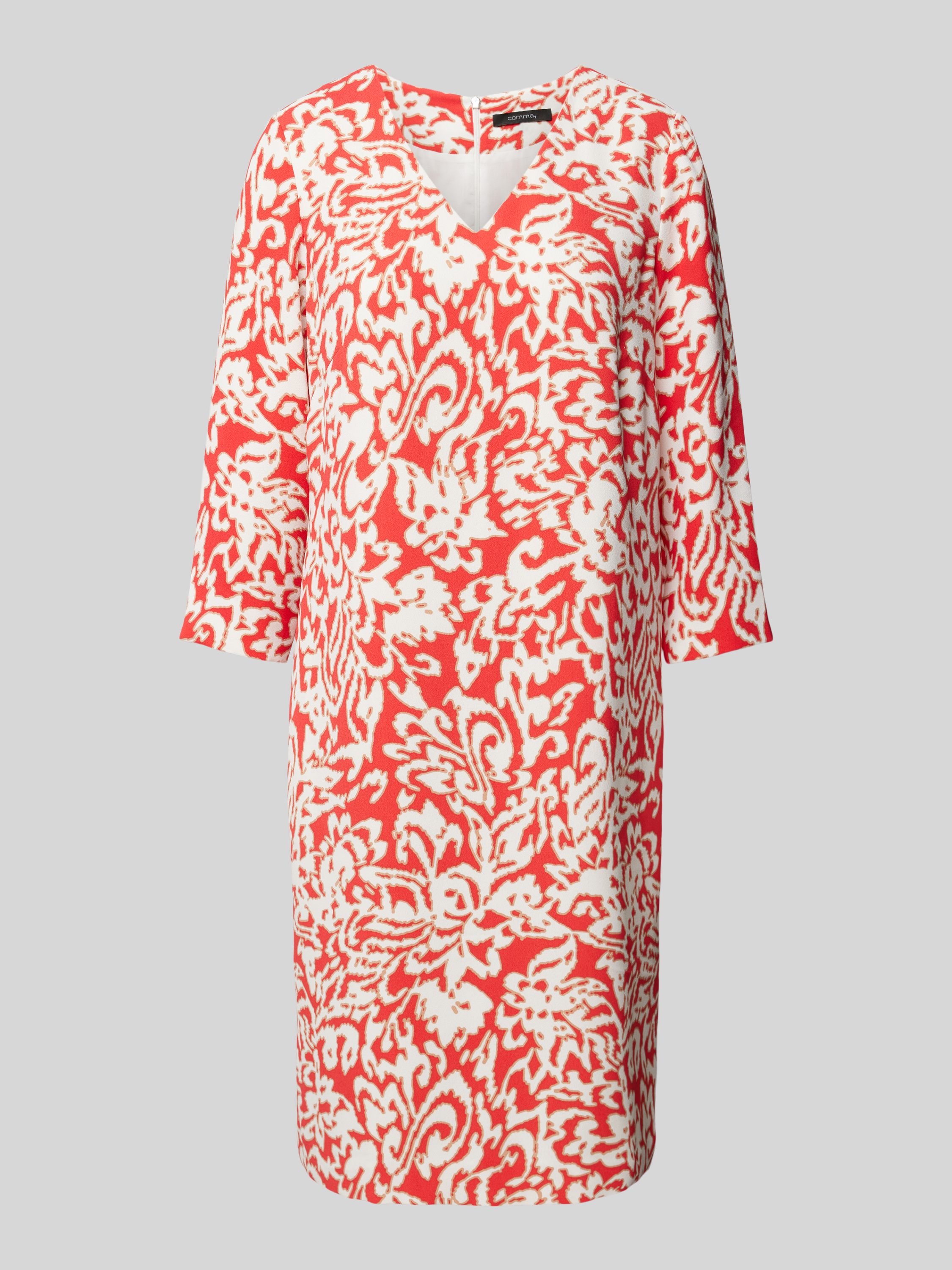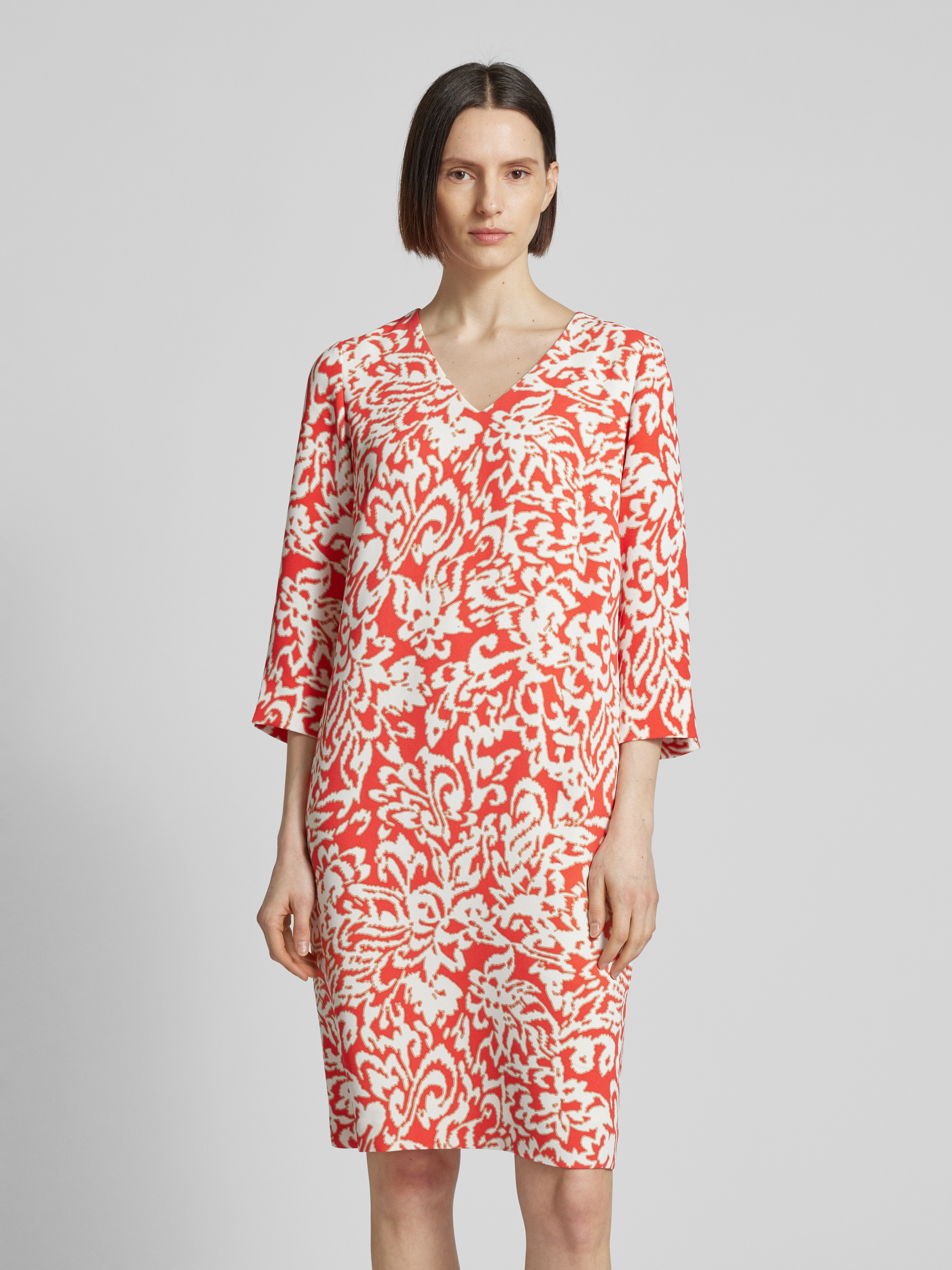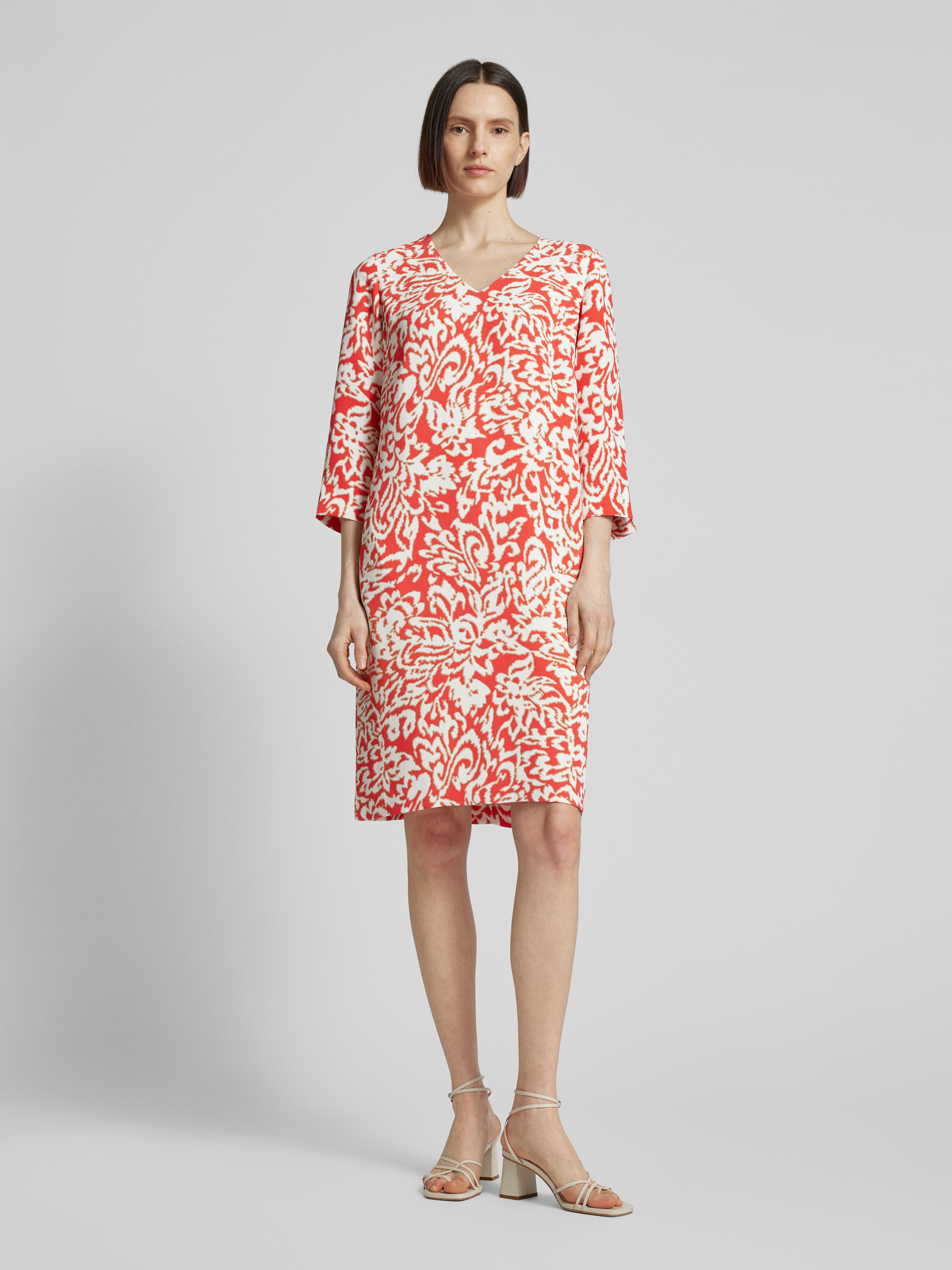 Sukienka o długości do kolan z nadrukiem na całej powierzchni - czerwony