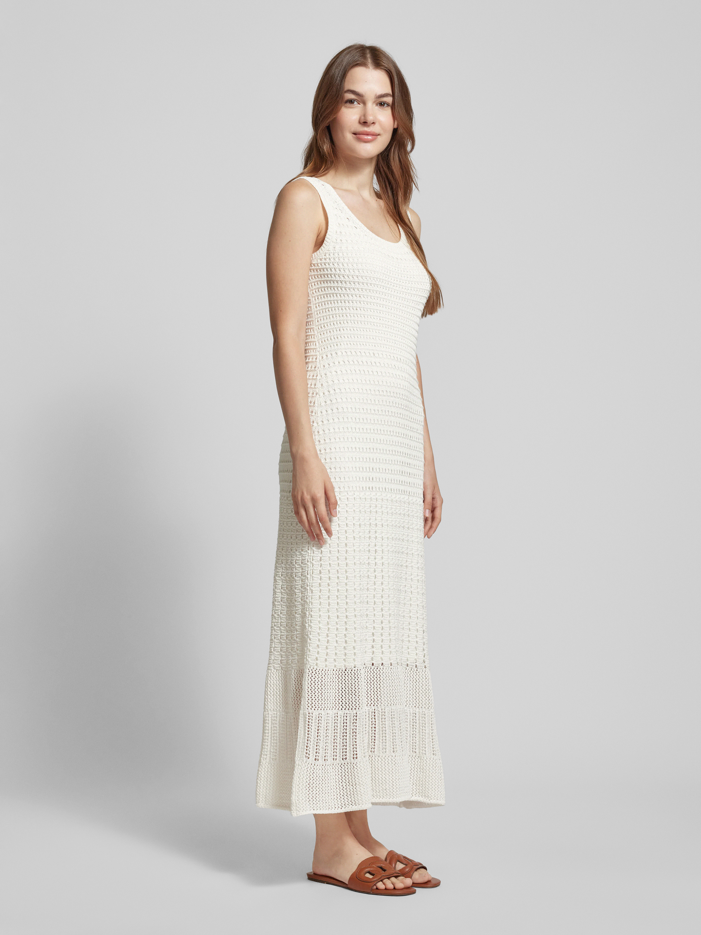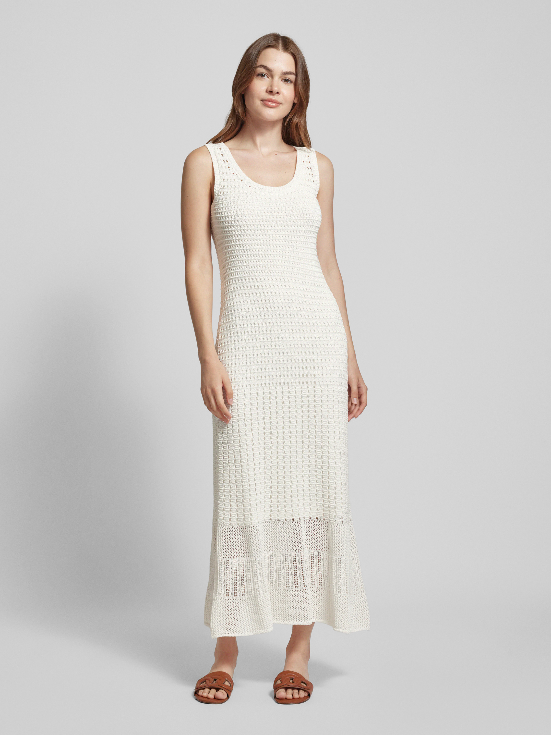 Sukienka z dzianiny z okrągłym dekoltem - złamany biały