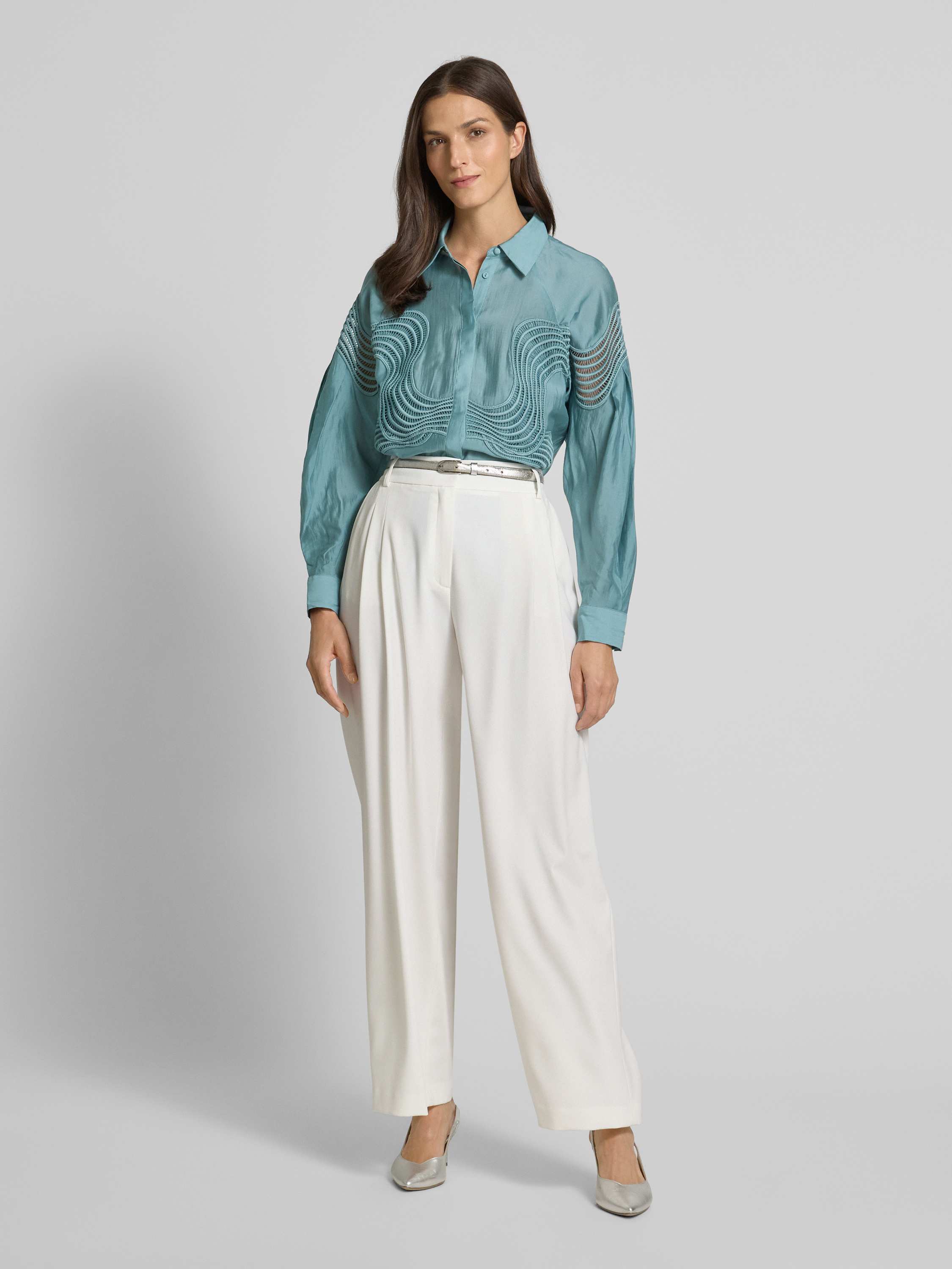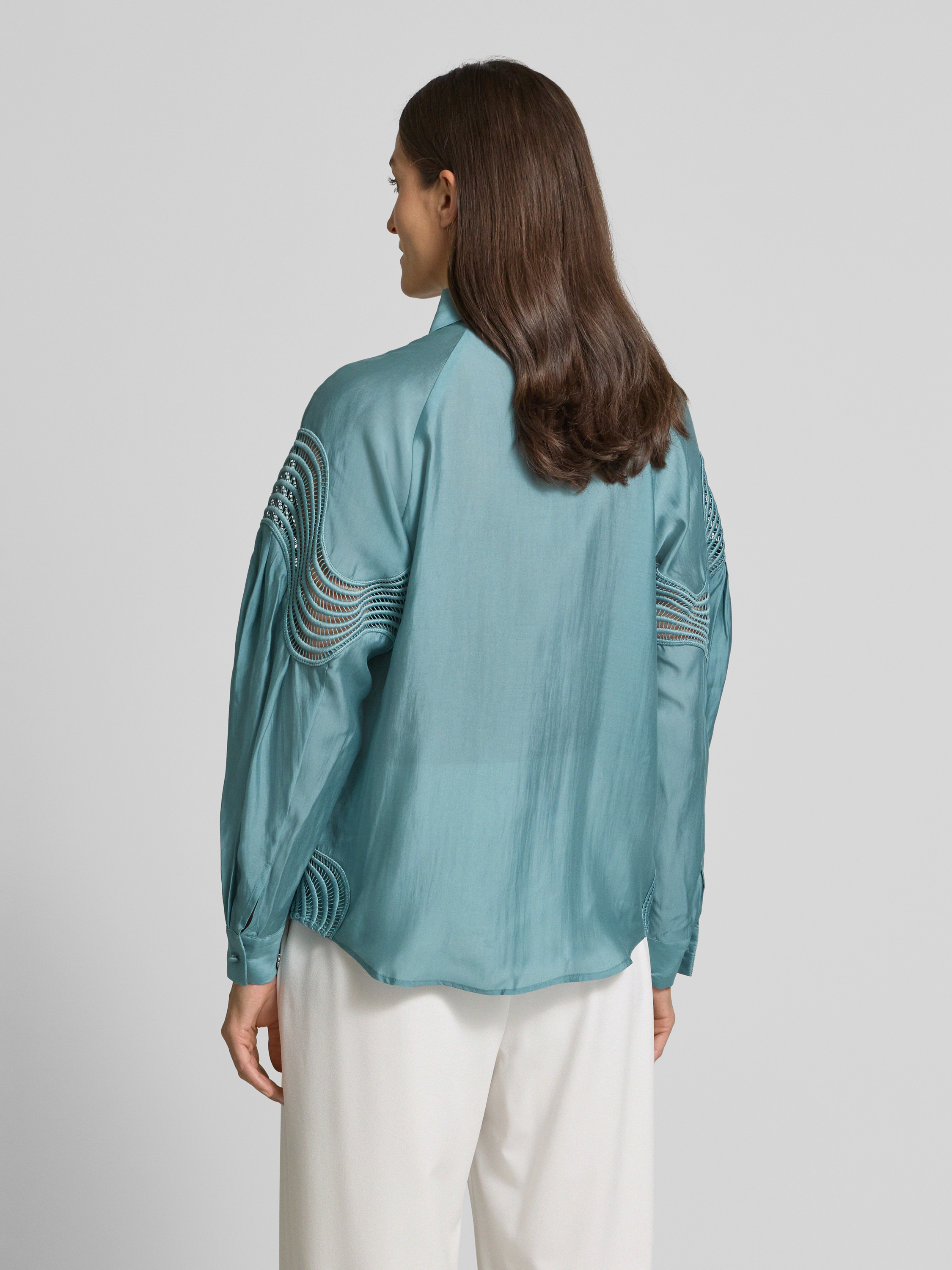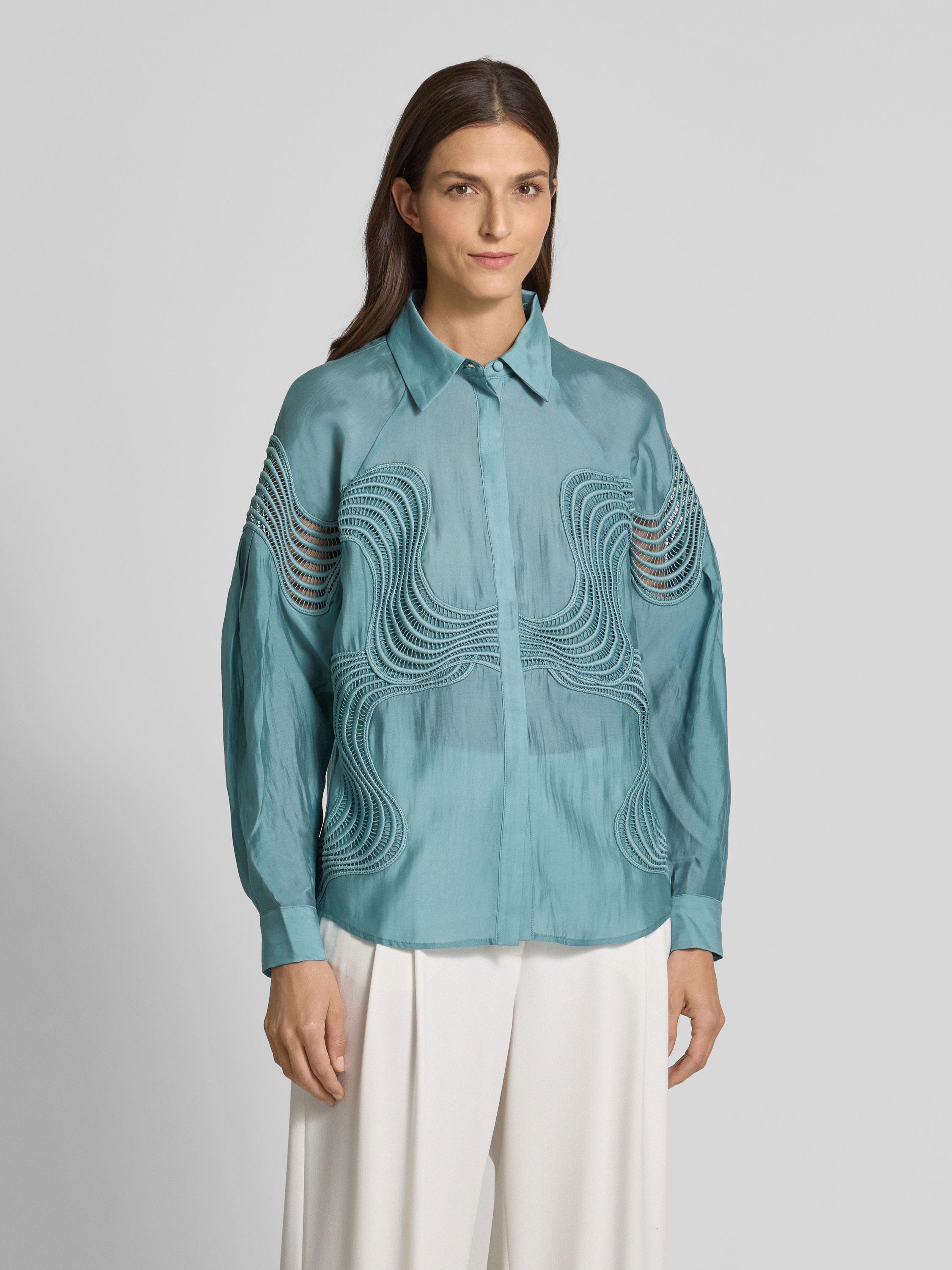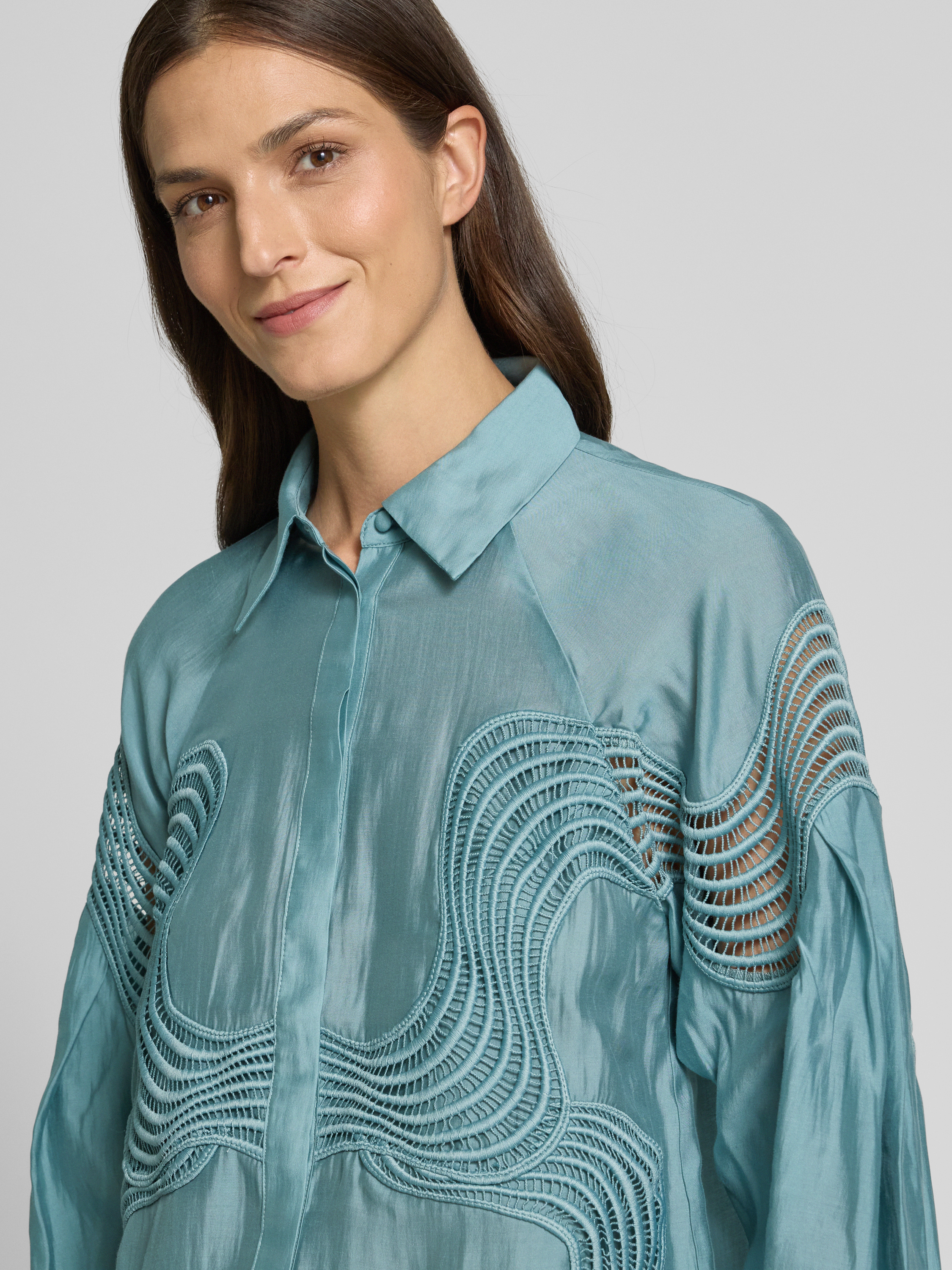 Bluzka koszulowa z krytą listwą guzikową model ‘MOLLY’ - petrol
