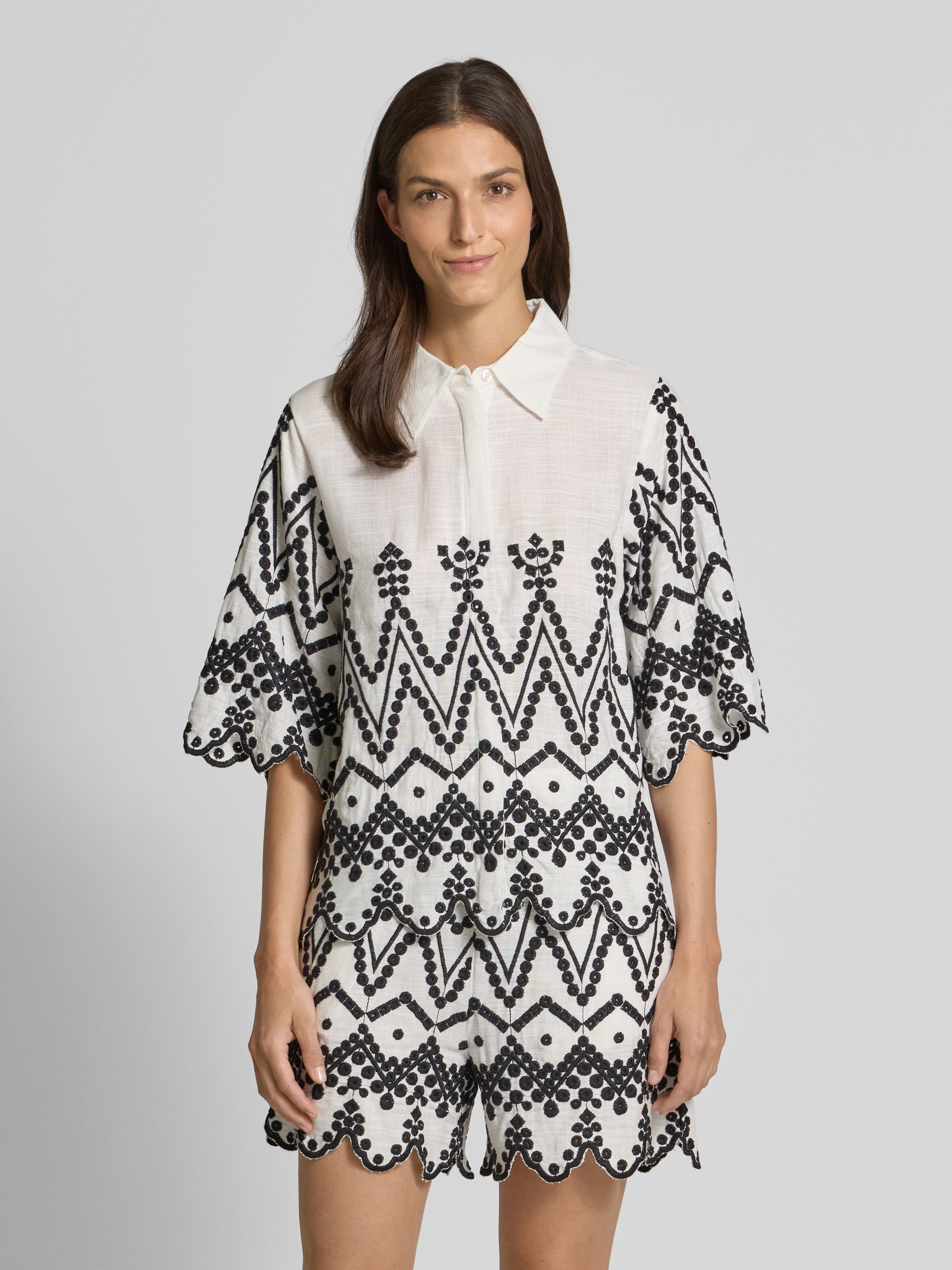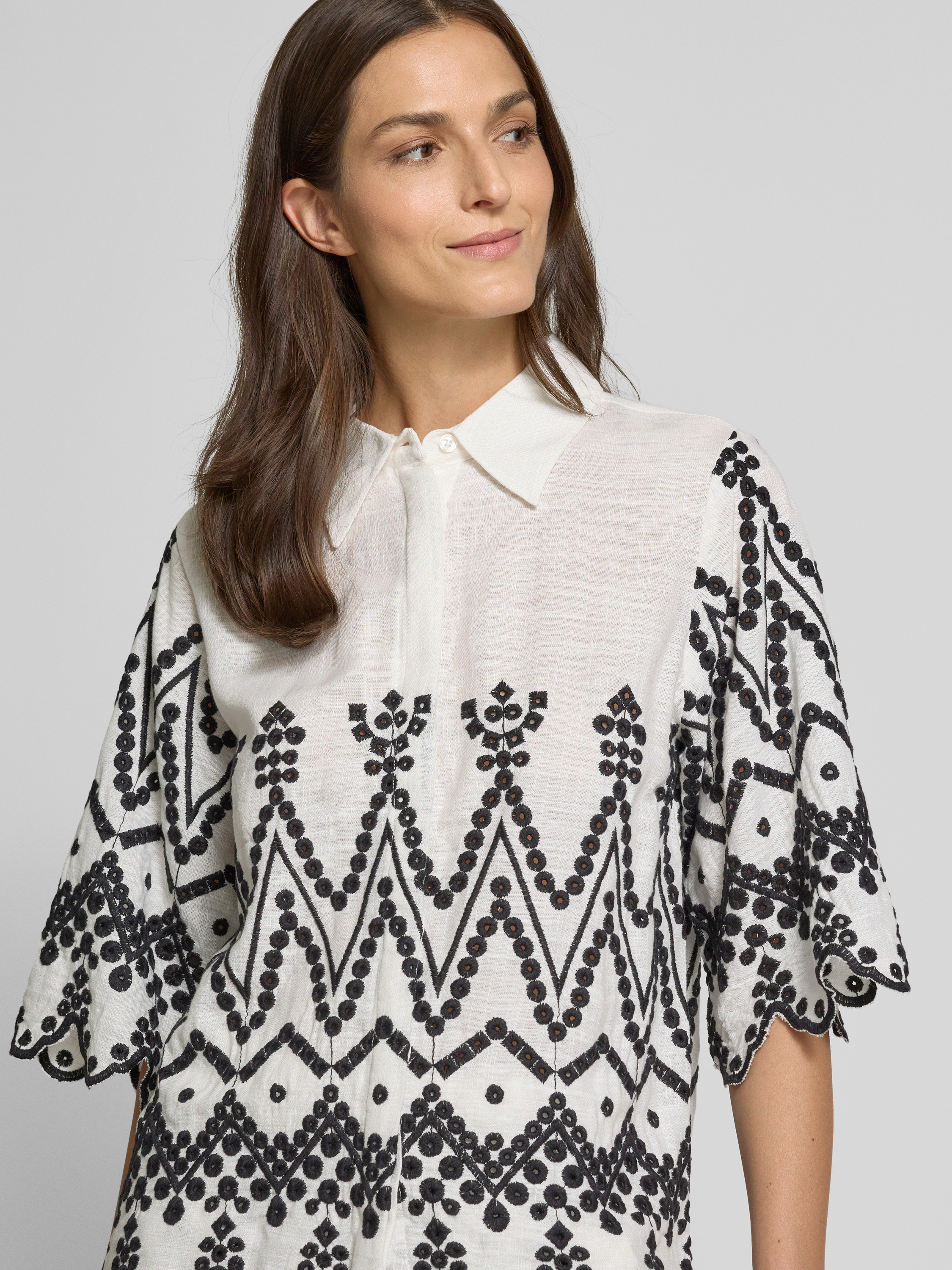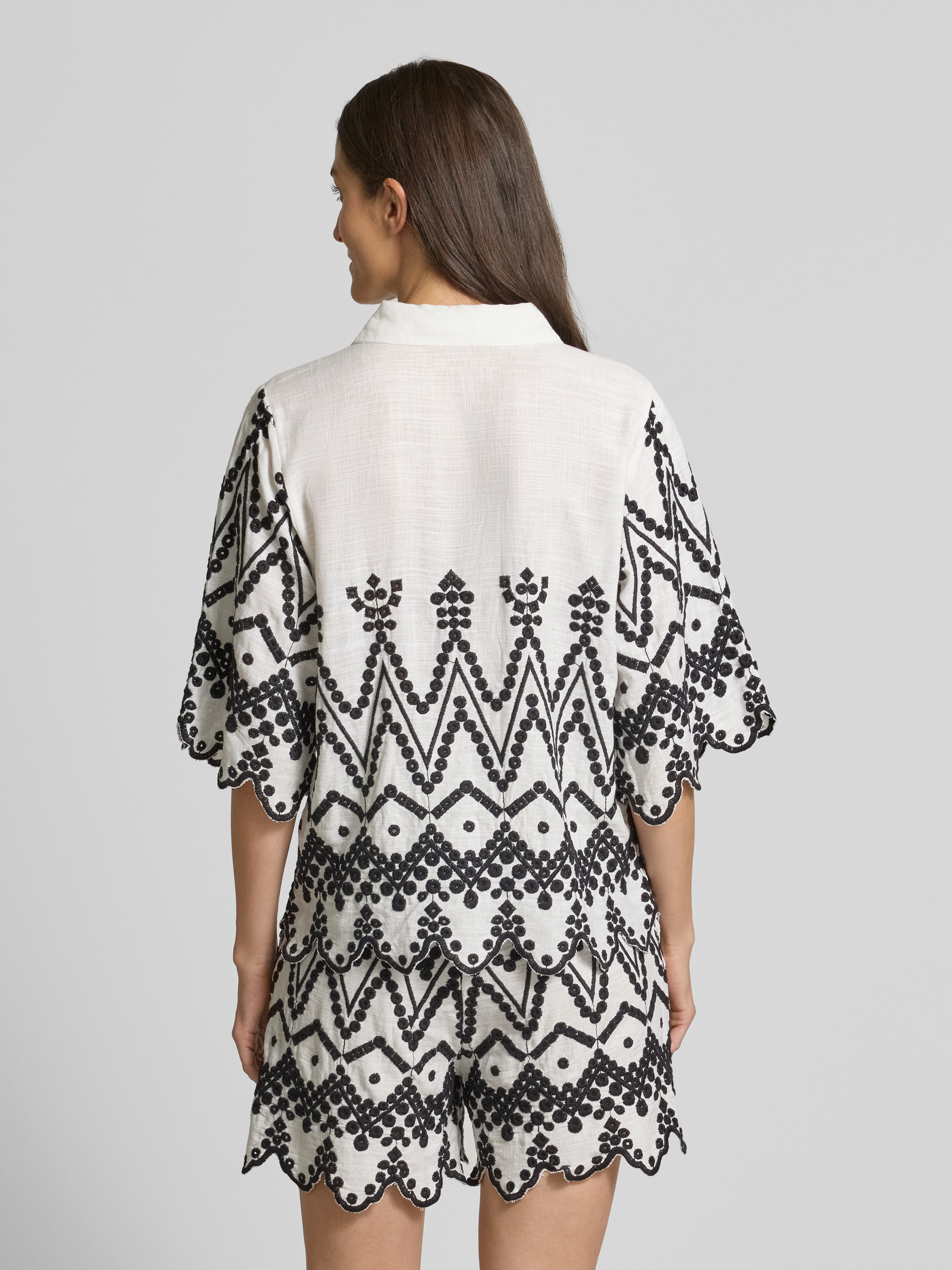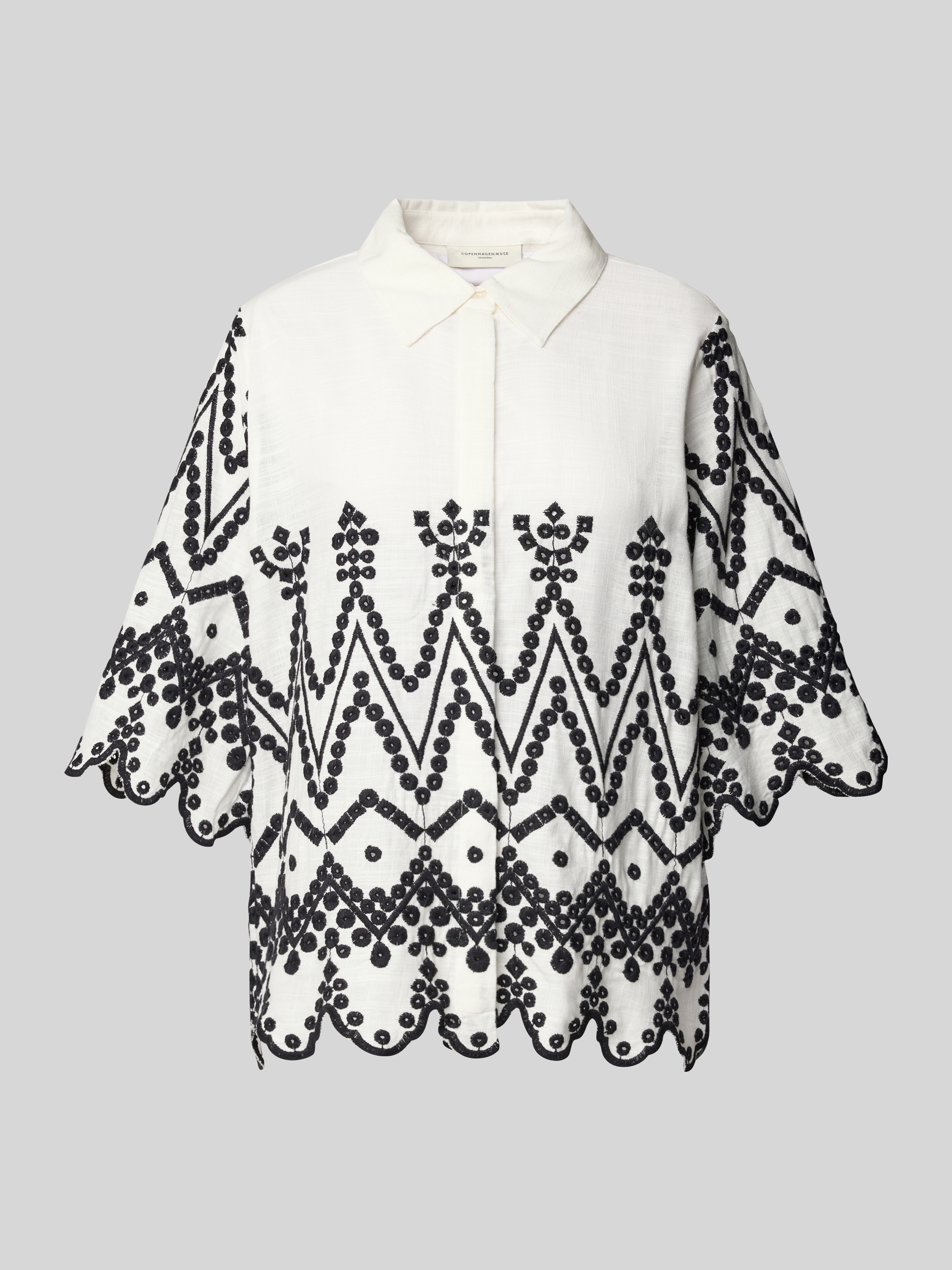 Bluzka z haftami i krytą listwą guzikową - złamany biały