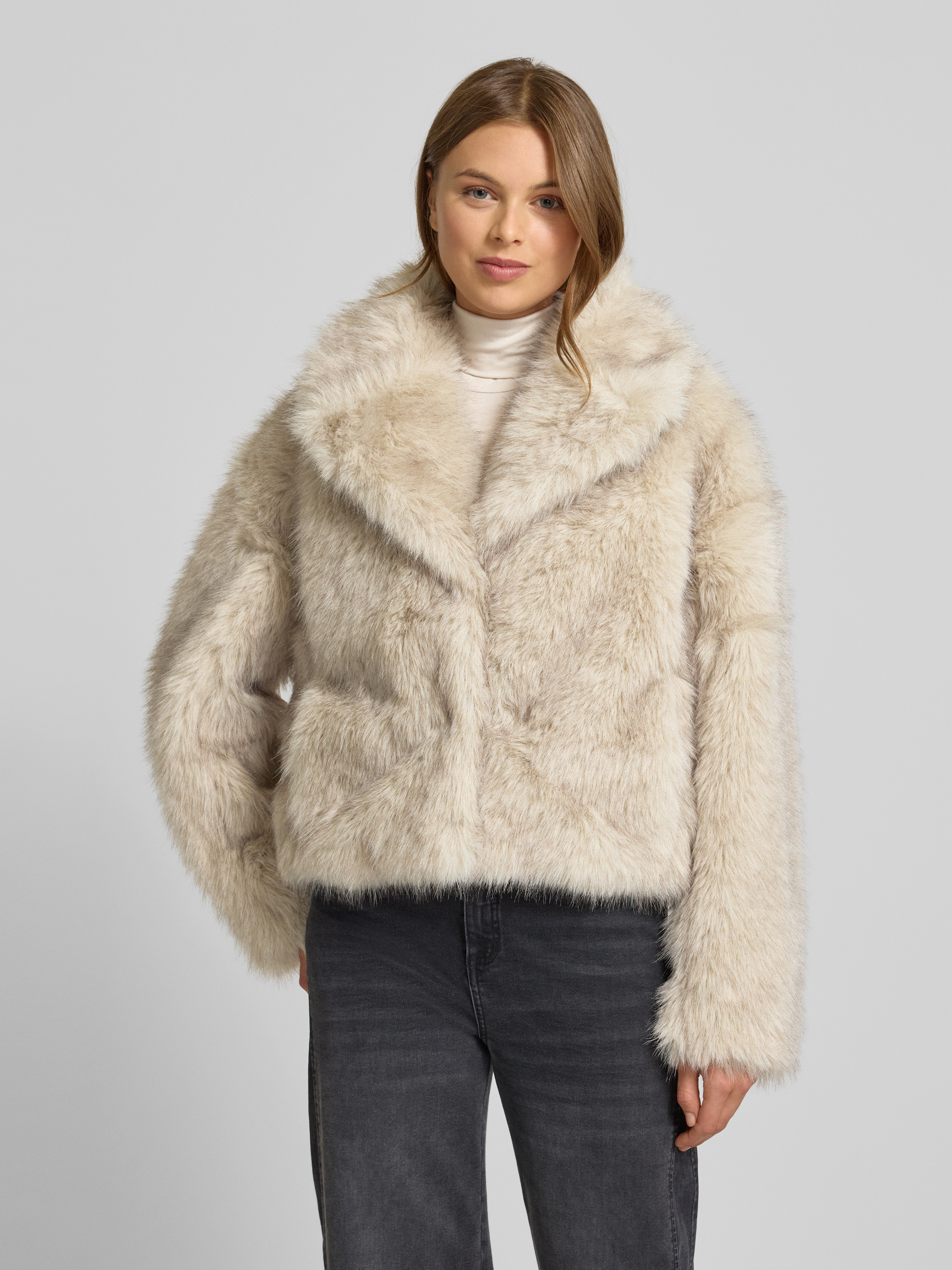 Kurtka ze sztucznego futra model ‘PLUSHY’ - beżowy