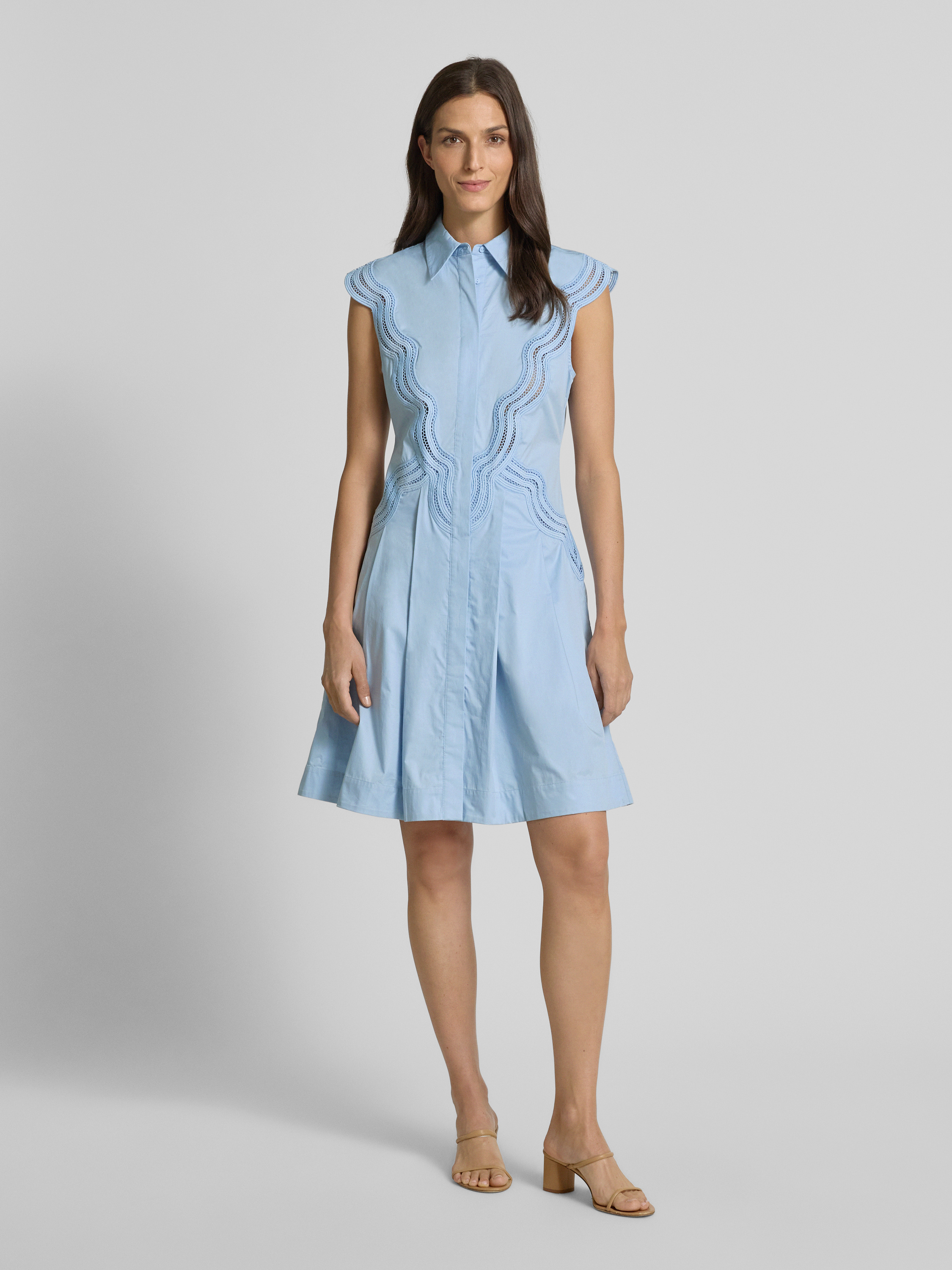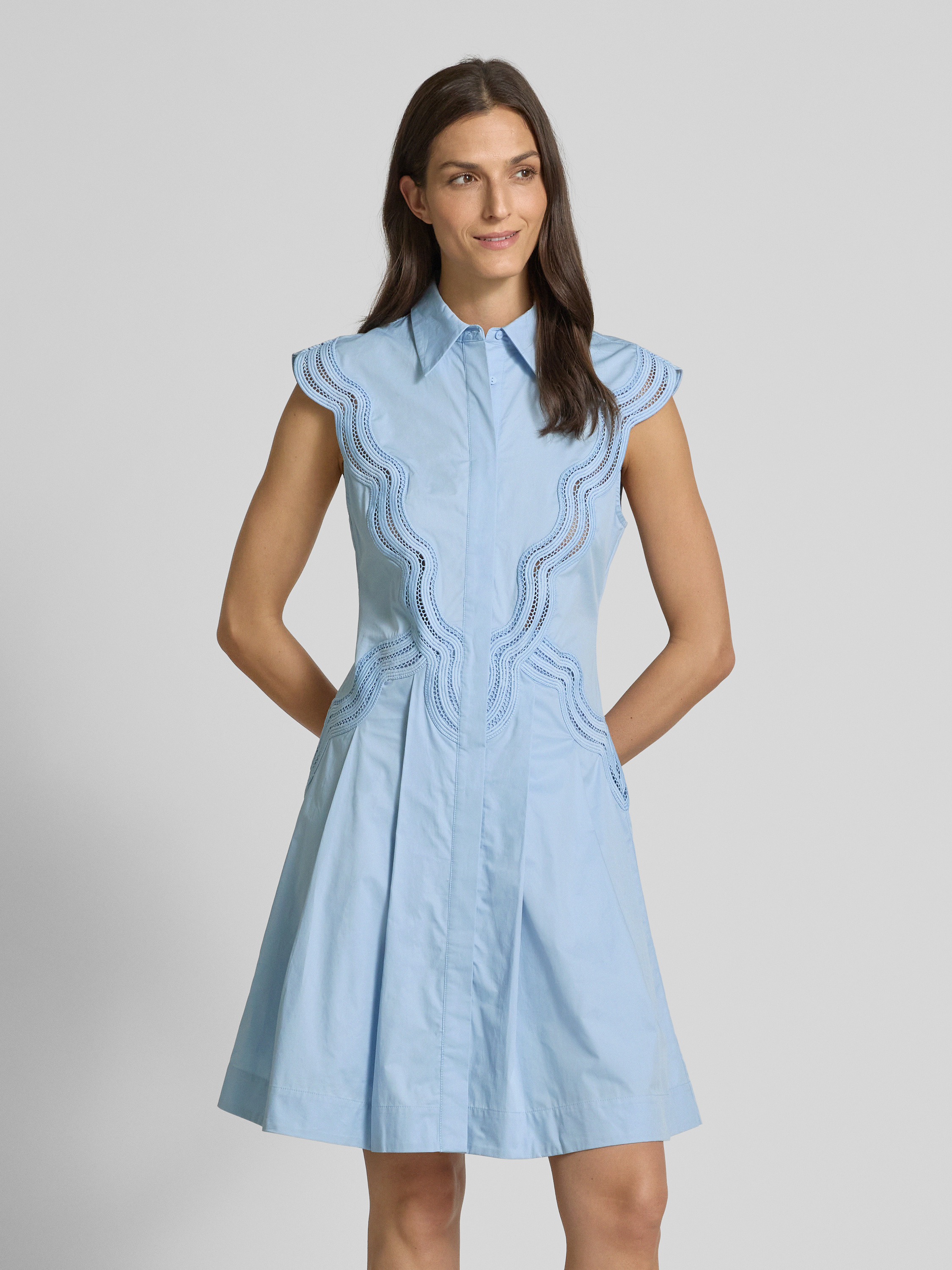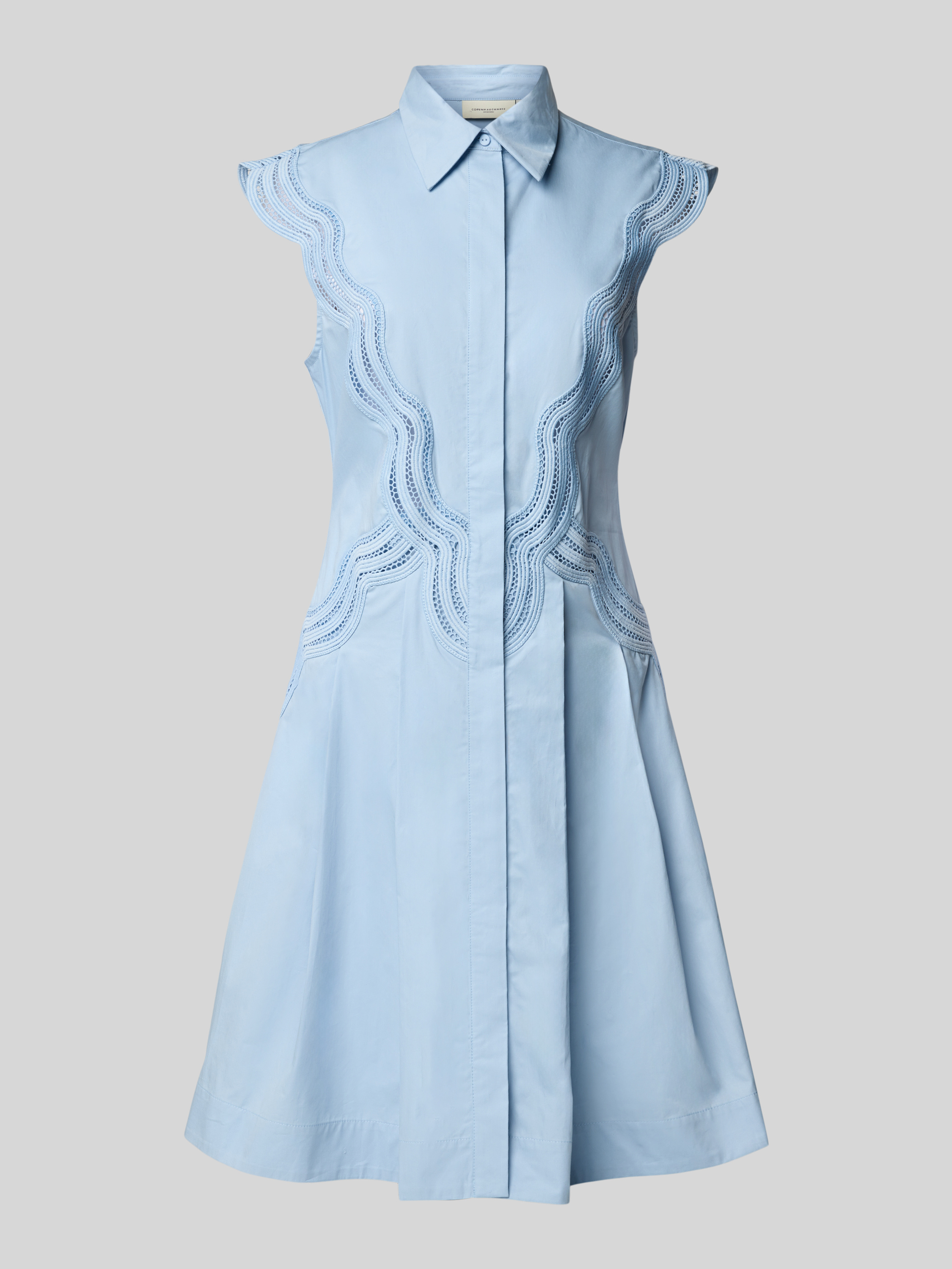 Sukienka o długości do kolan z wykładanym kołnierzem i krytą listwą guzikową - jasnoniebieski
