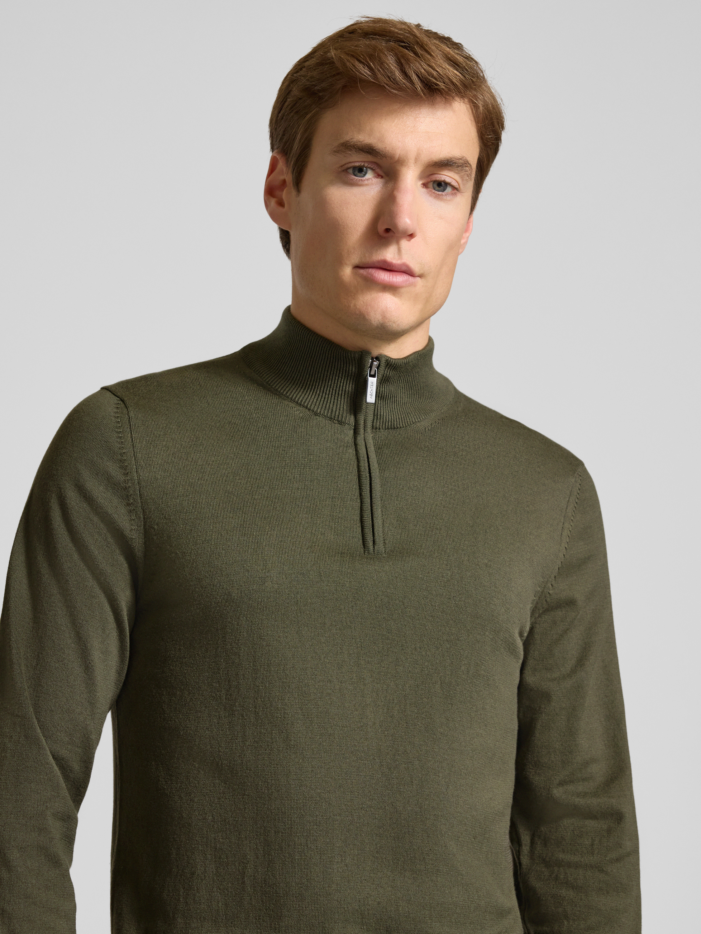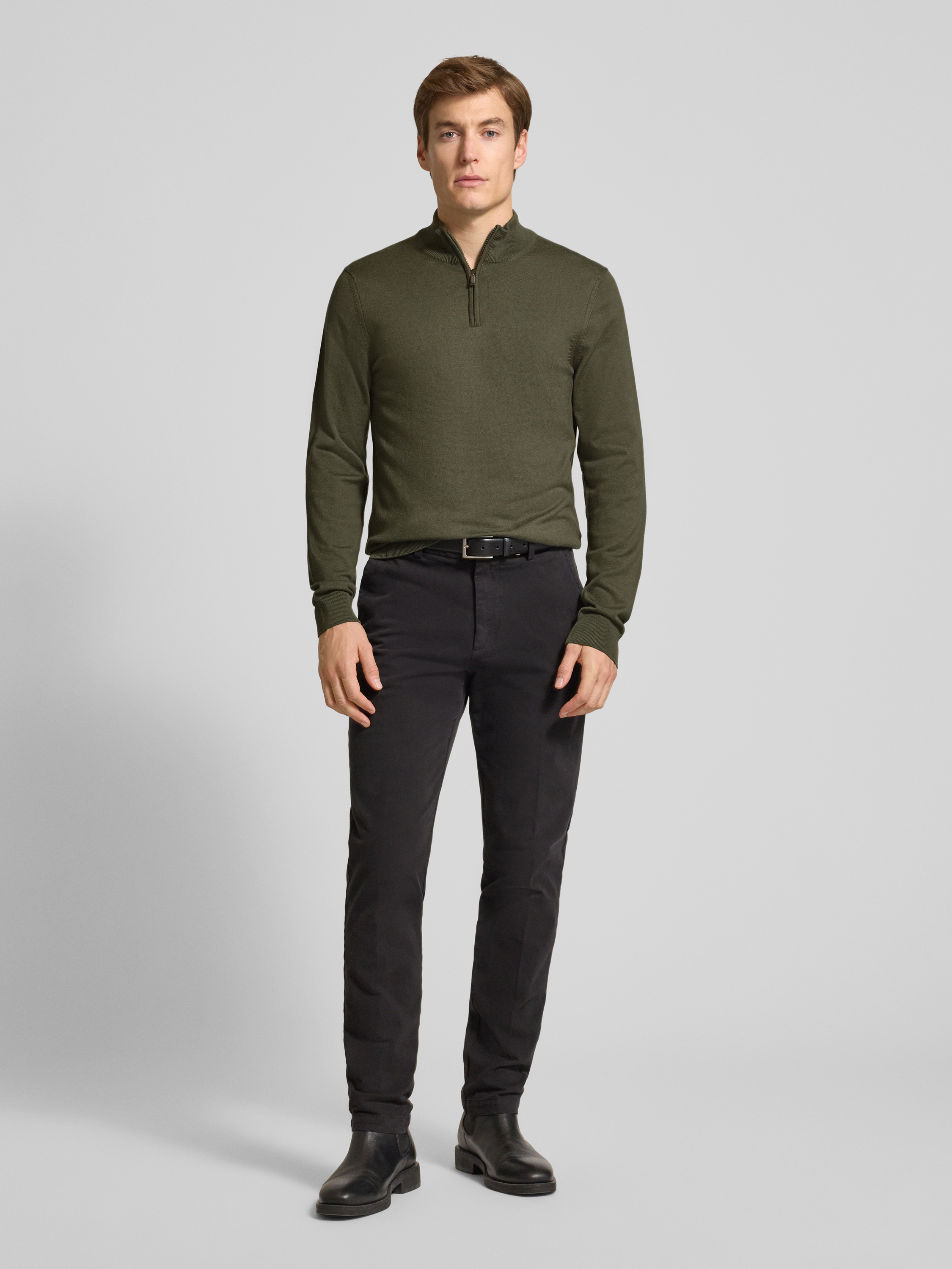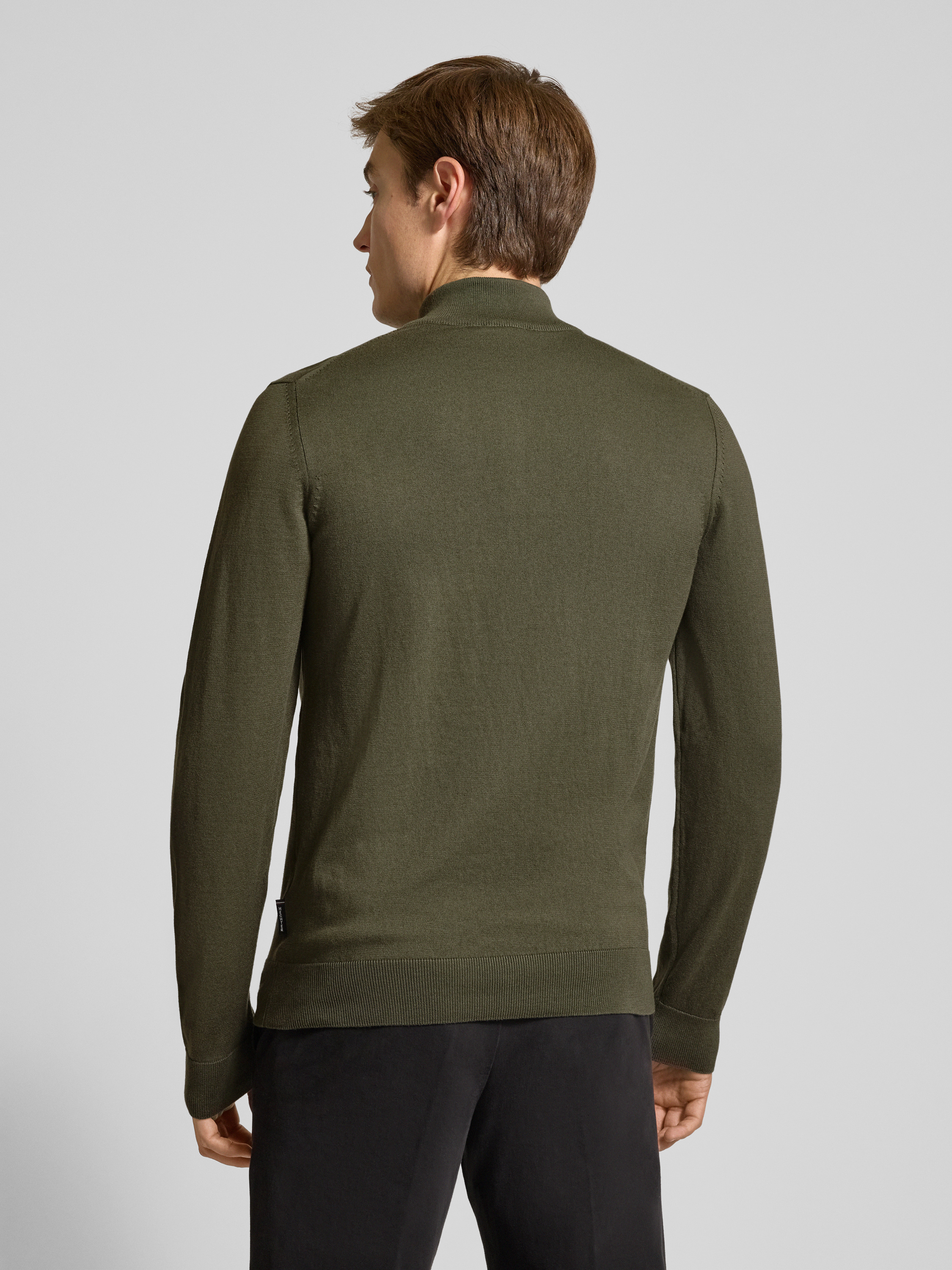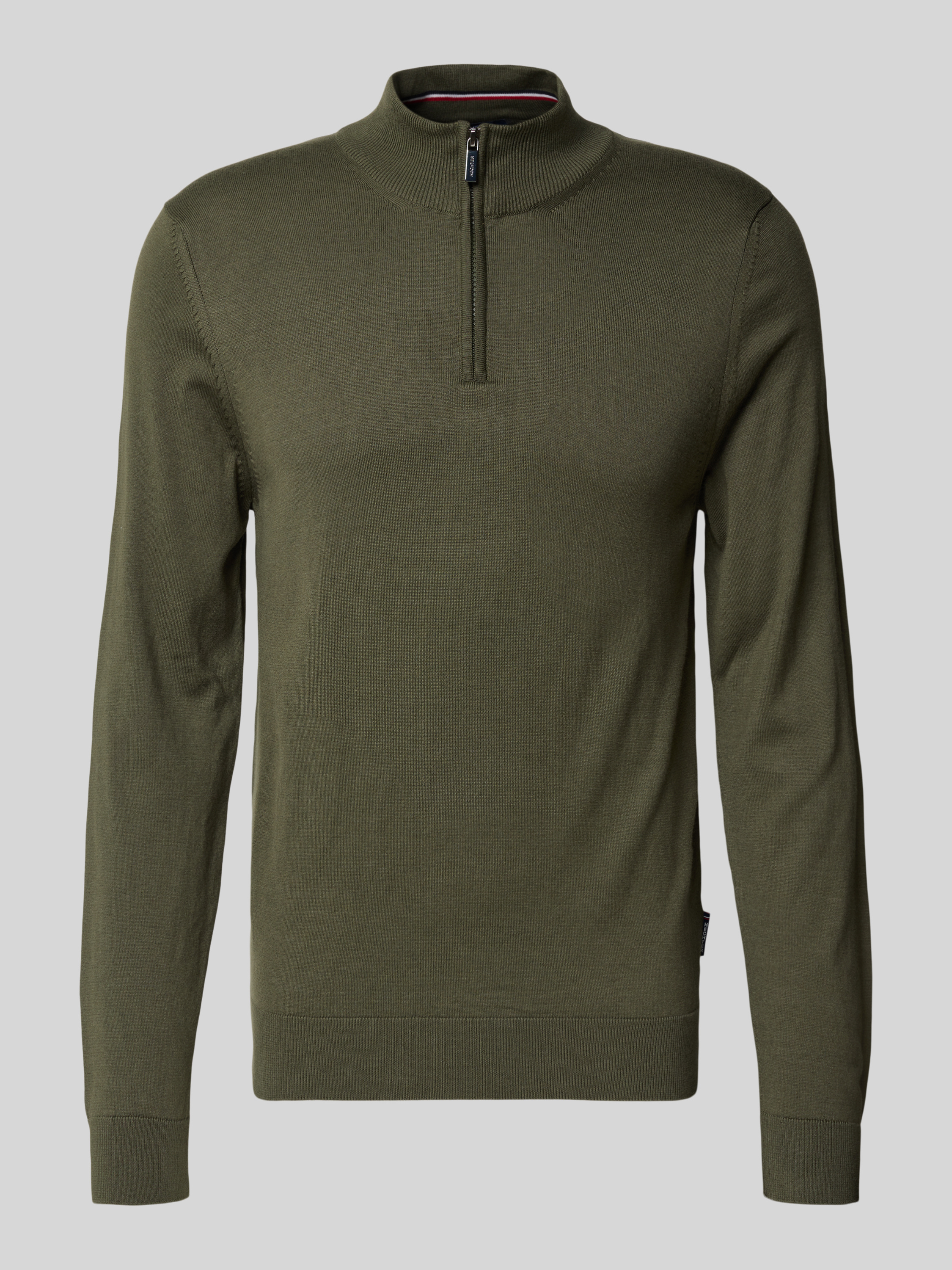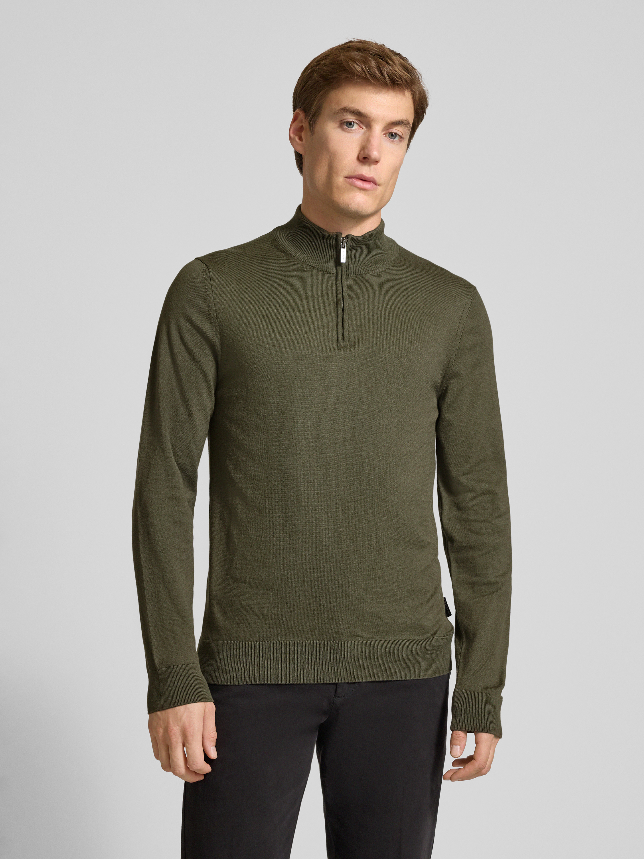 Sweter z dzianiny ze stójką i zamkiem błyskawicznym - oliwkowy