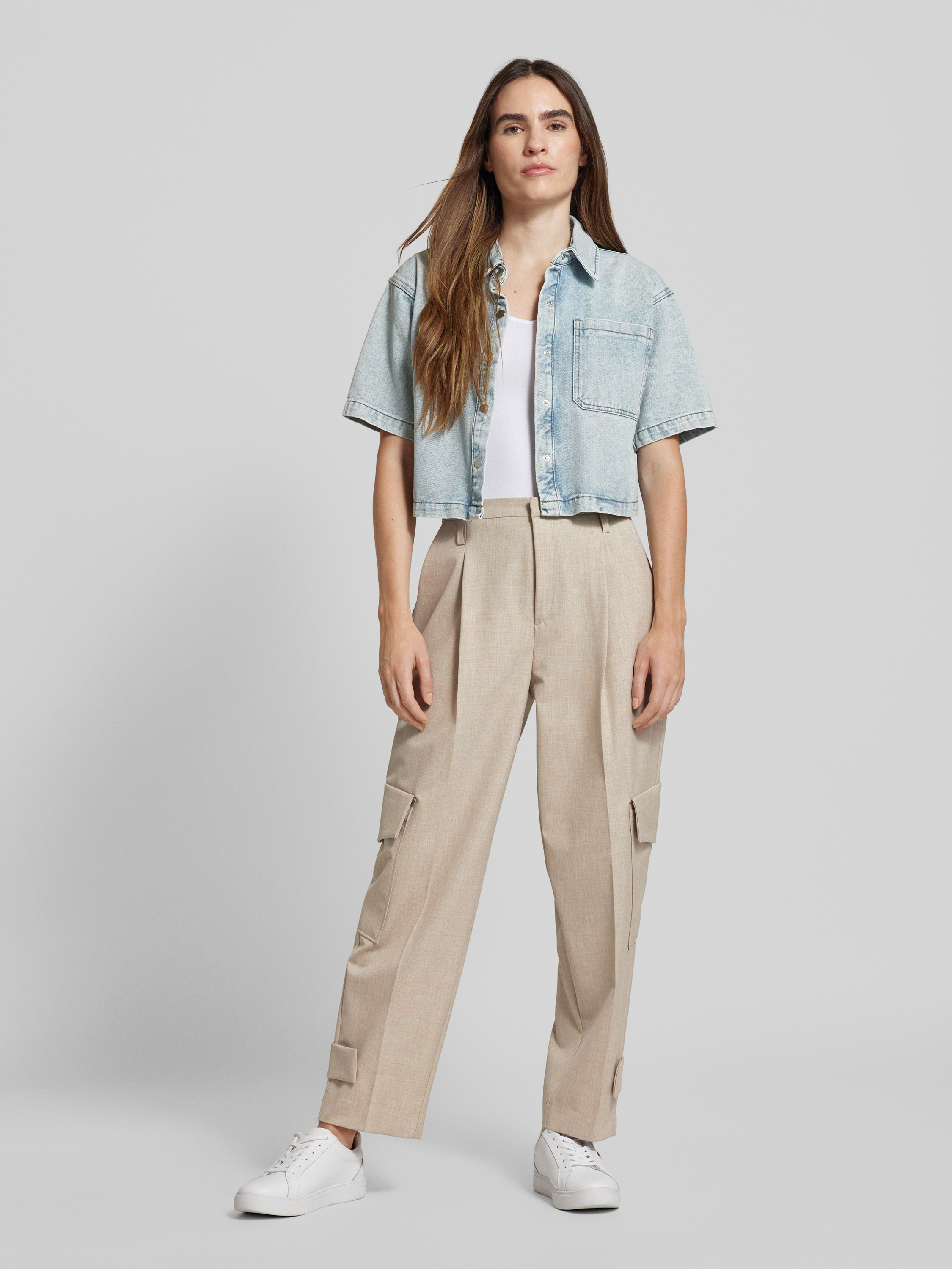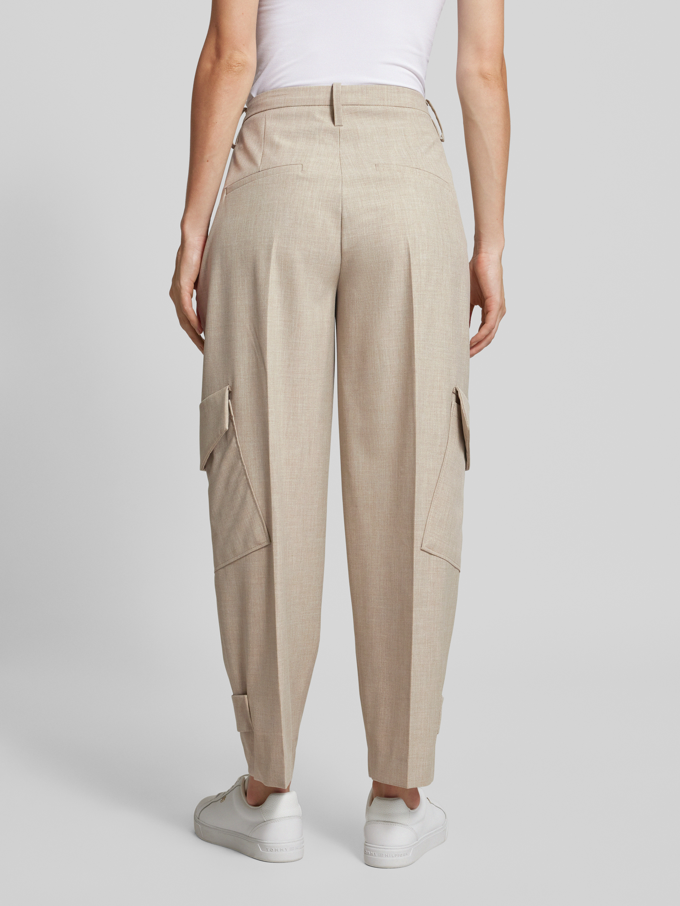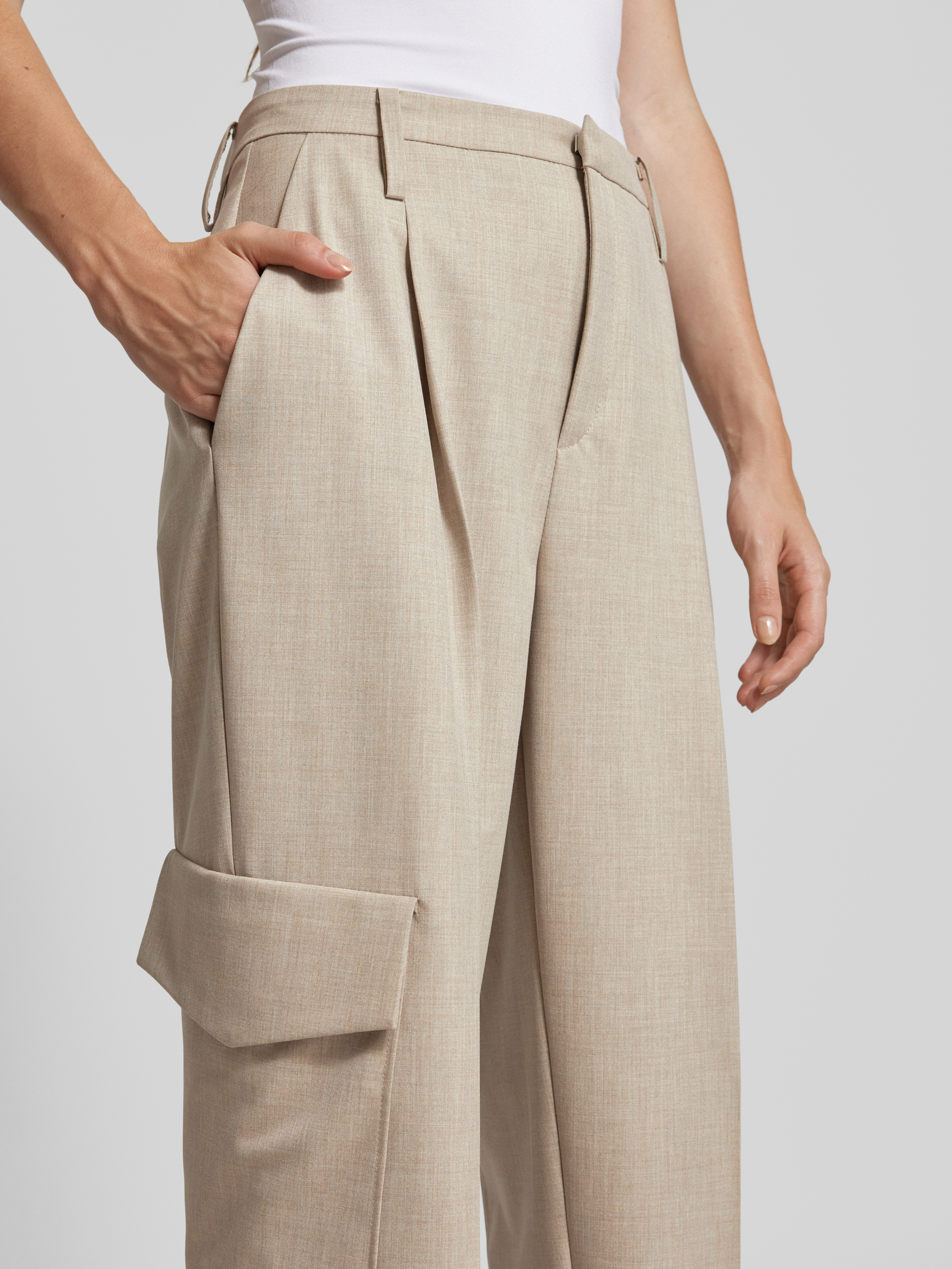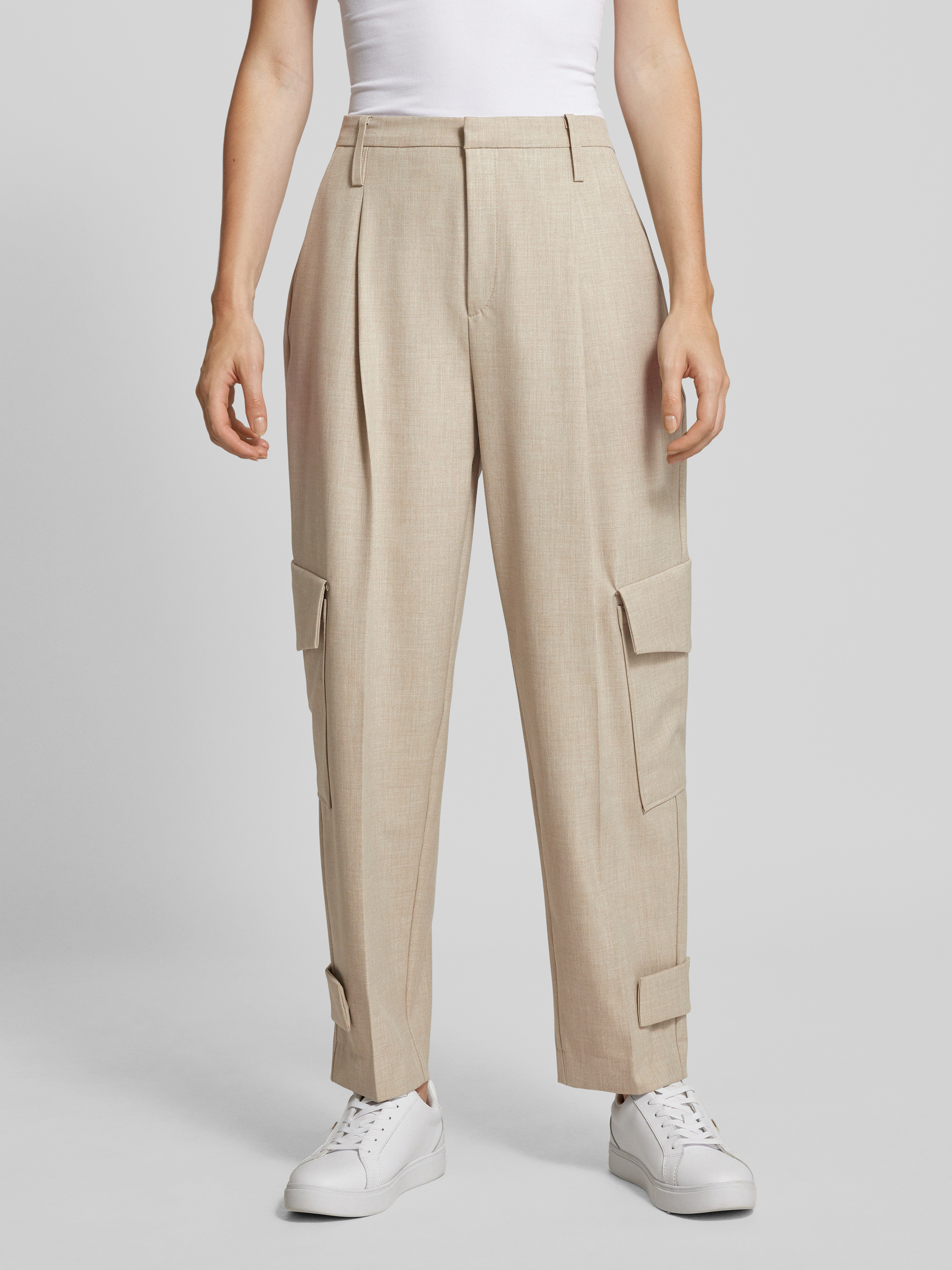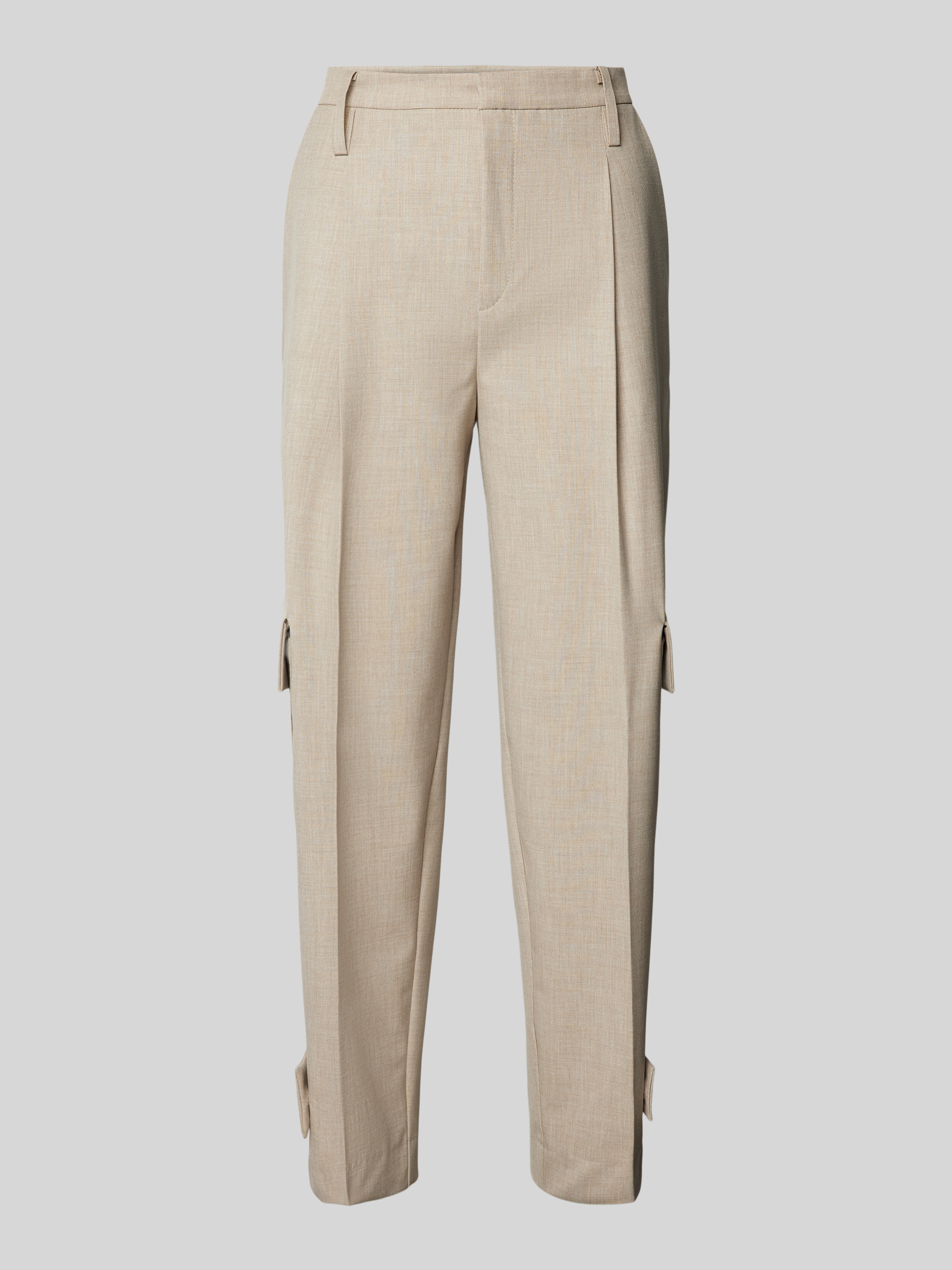 Spodnie materiałowe z prostą nogawką i zakładkami w pasie model ‘Columbia’ - beżowy
