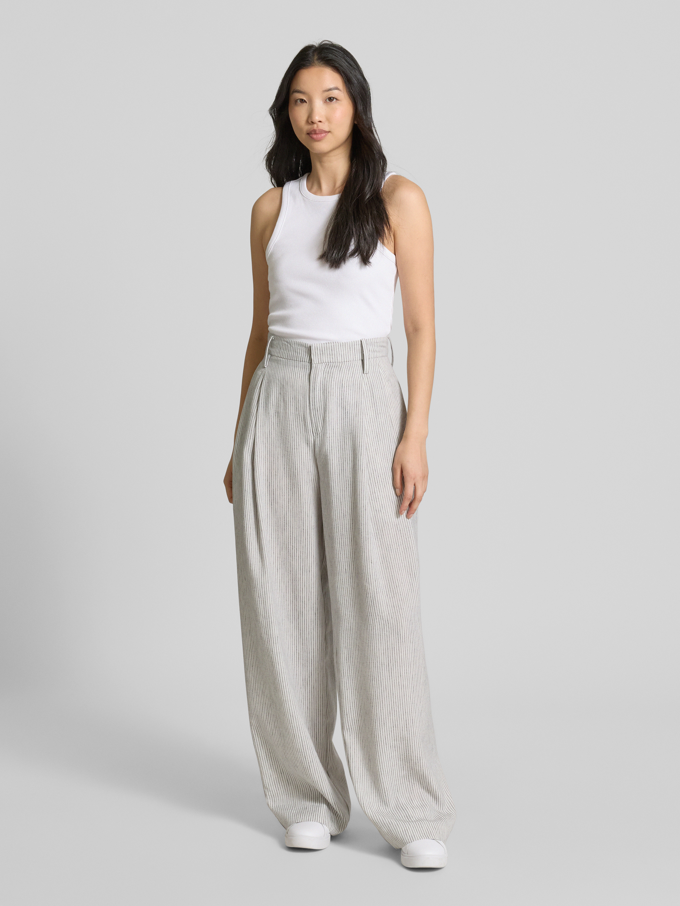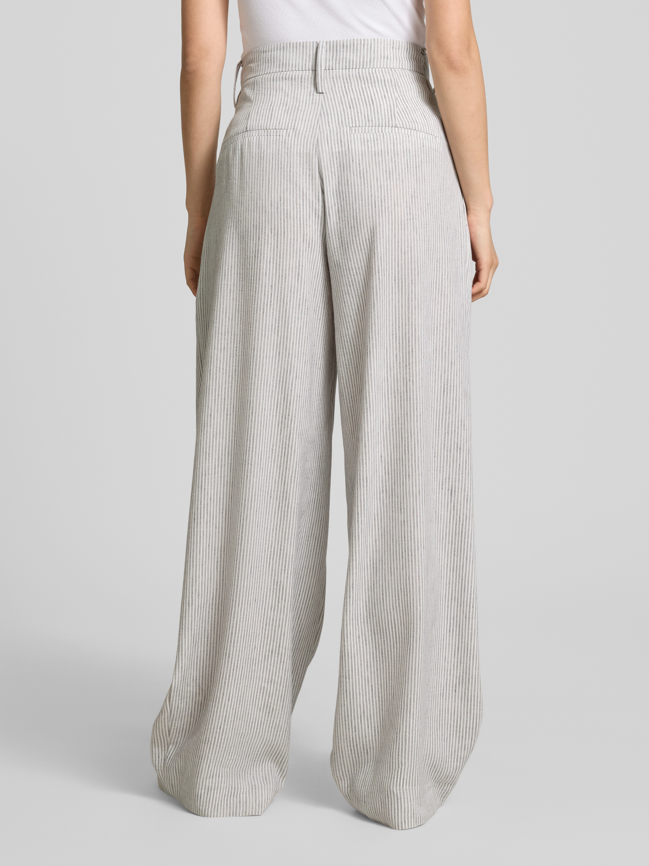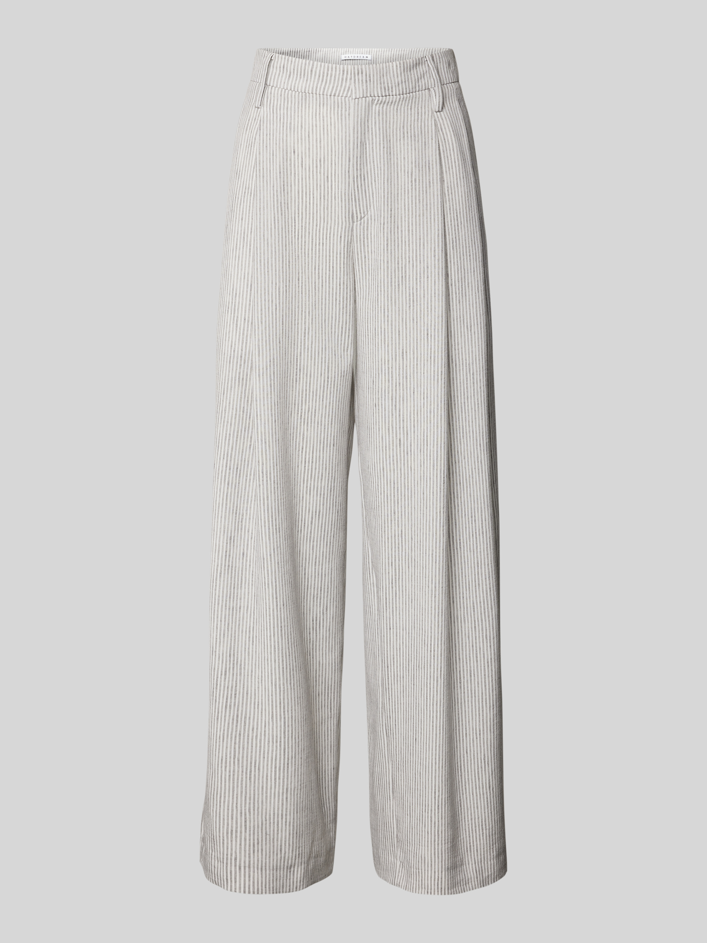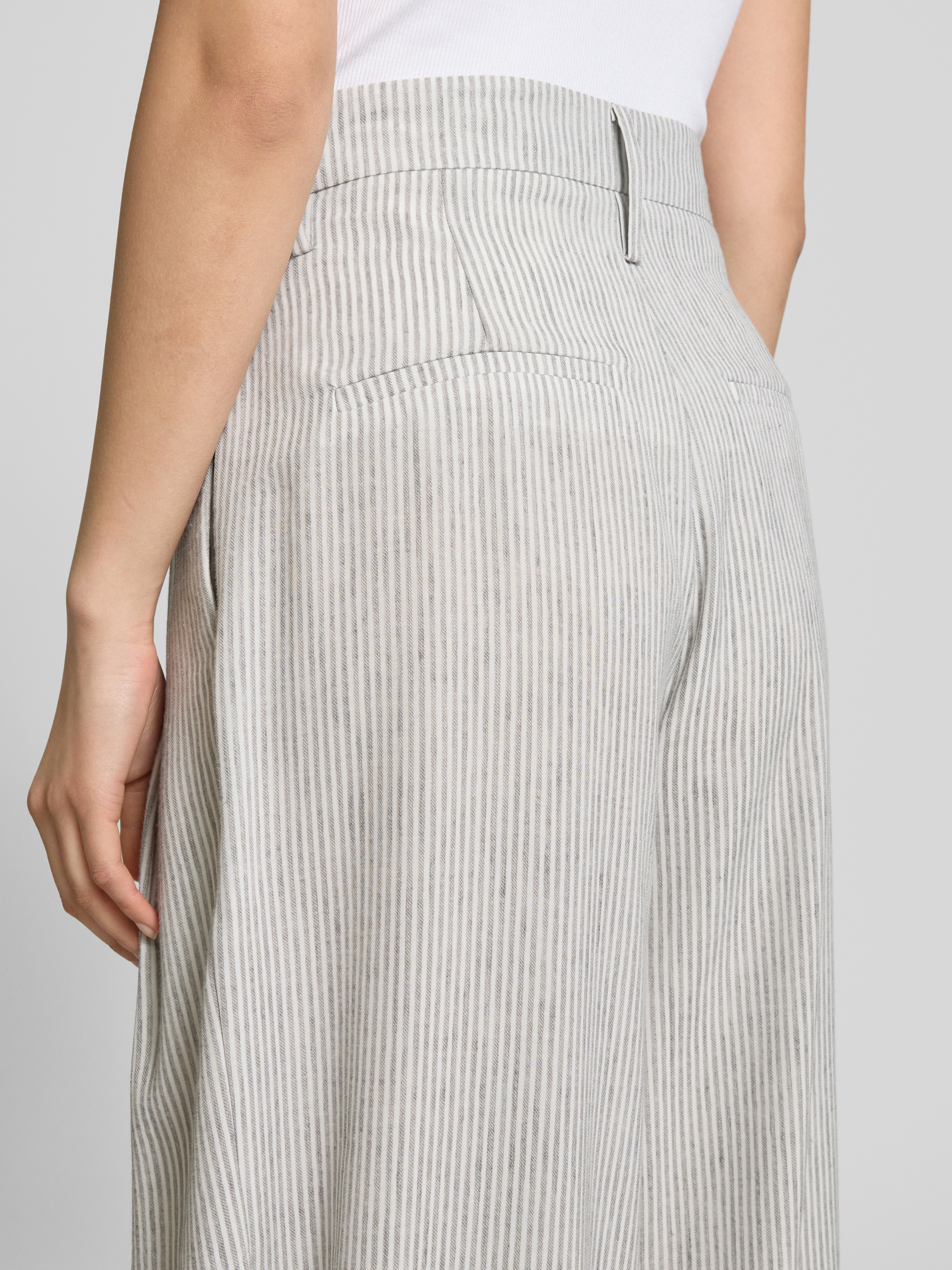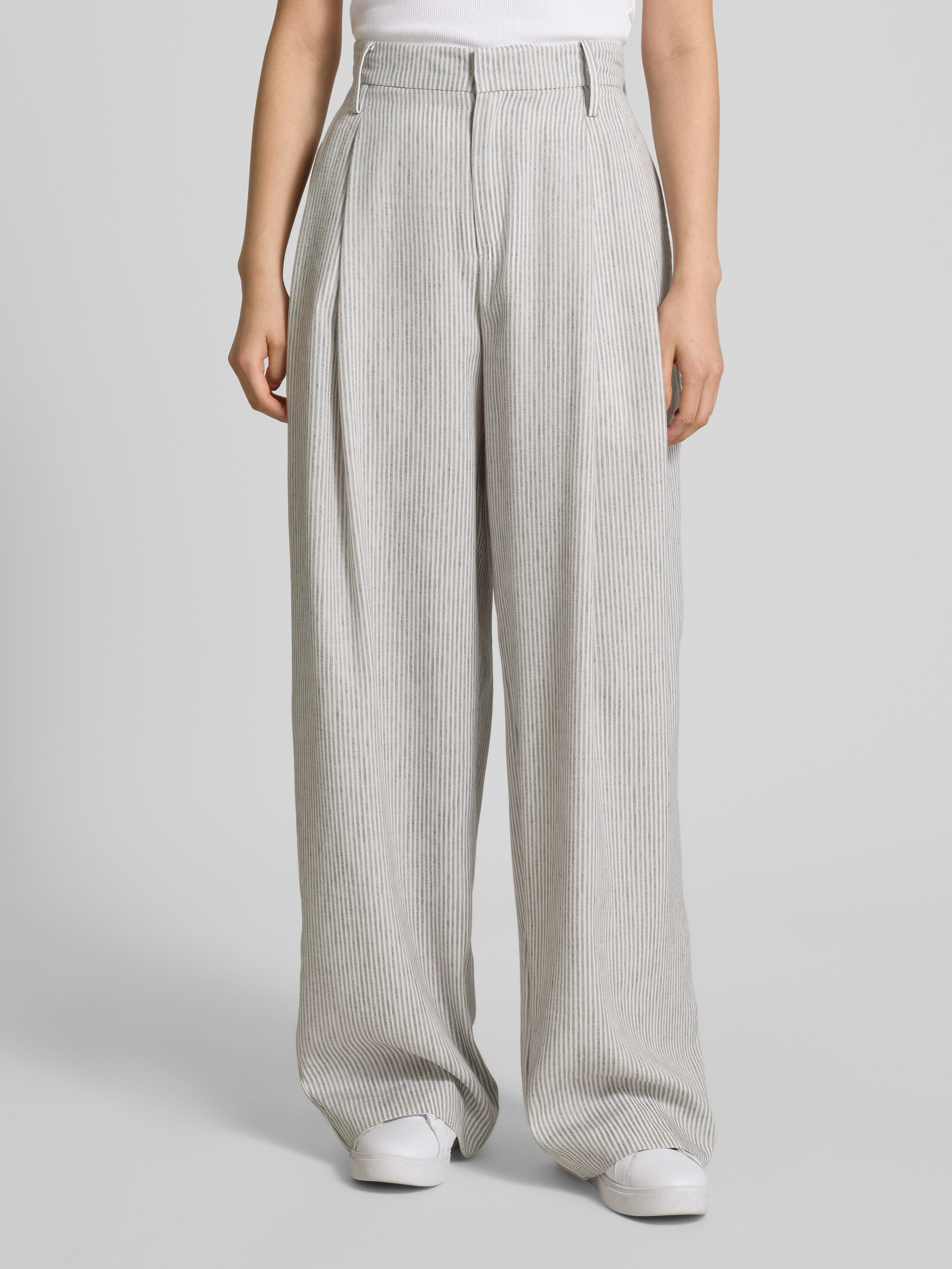 Spodnie materiałowe z szeroką nogawką i zakładkami w pasie model ‘Washington’ - złamany biały