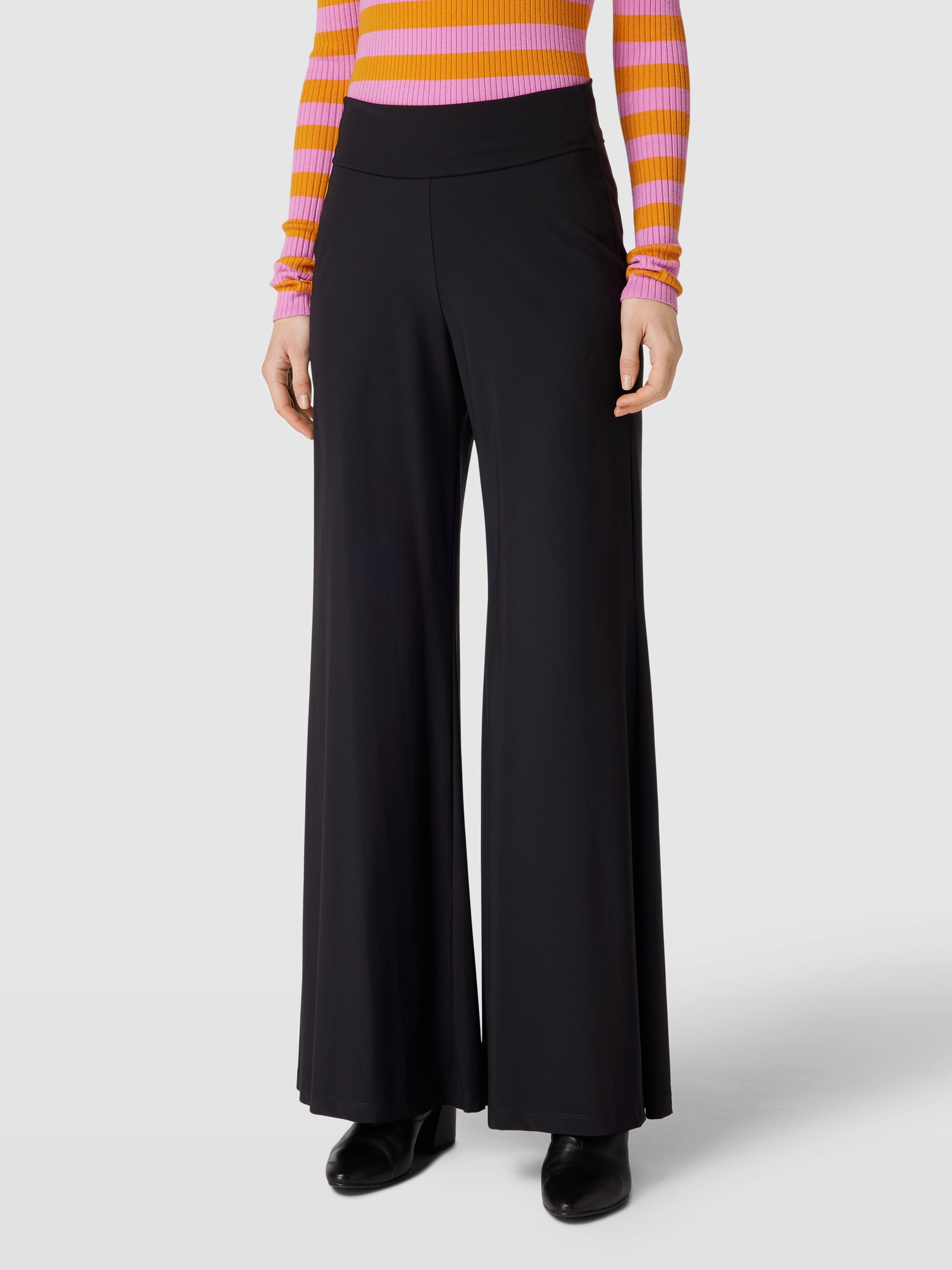 Spodnie z szerokim pasem model ‘Avalon’ - czarny