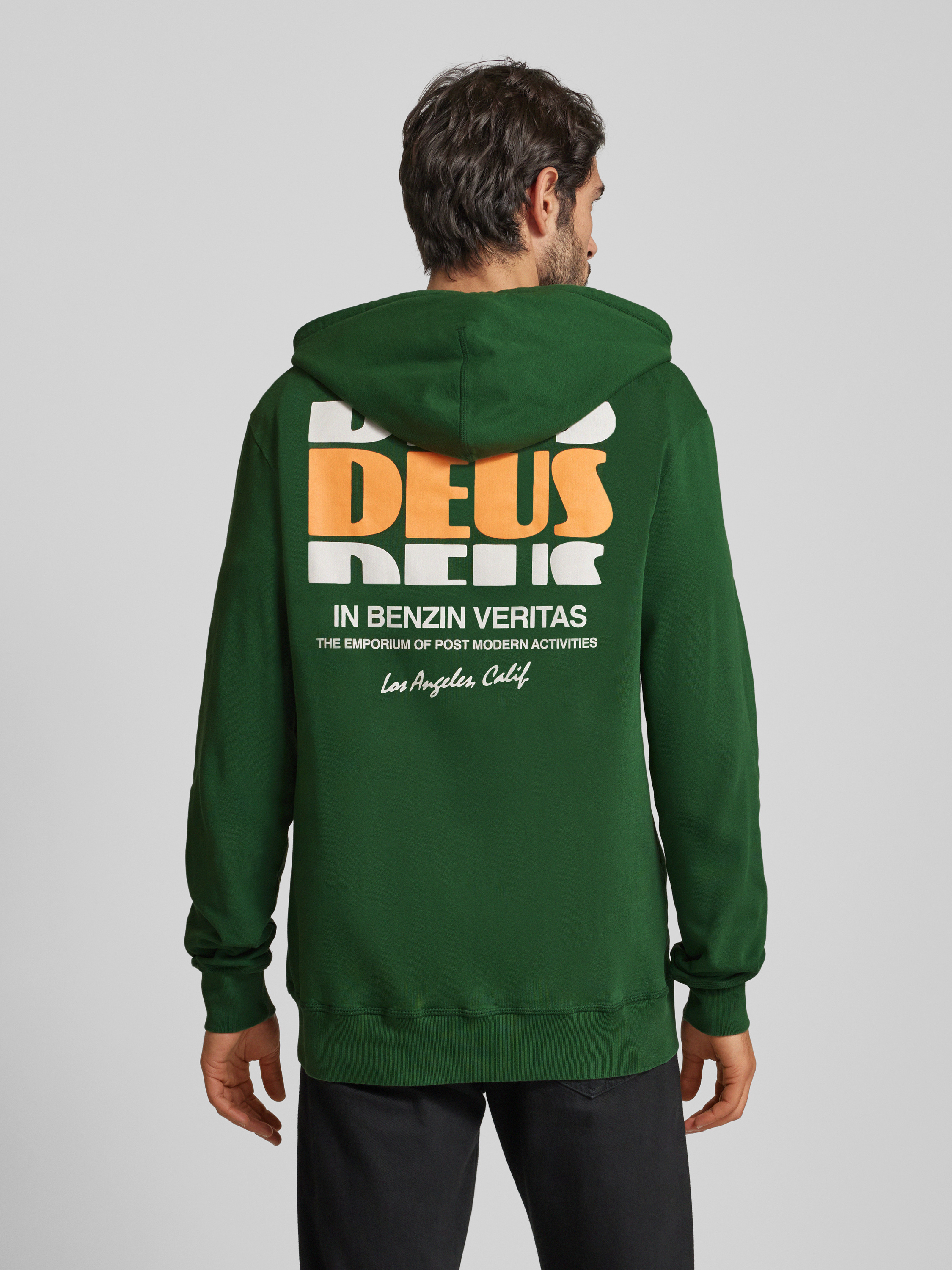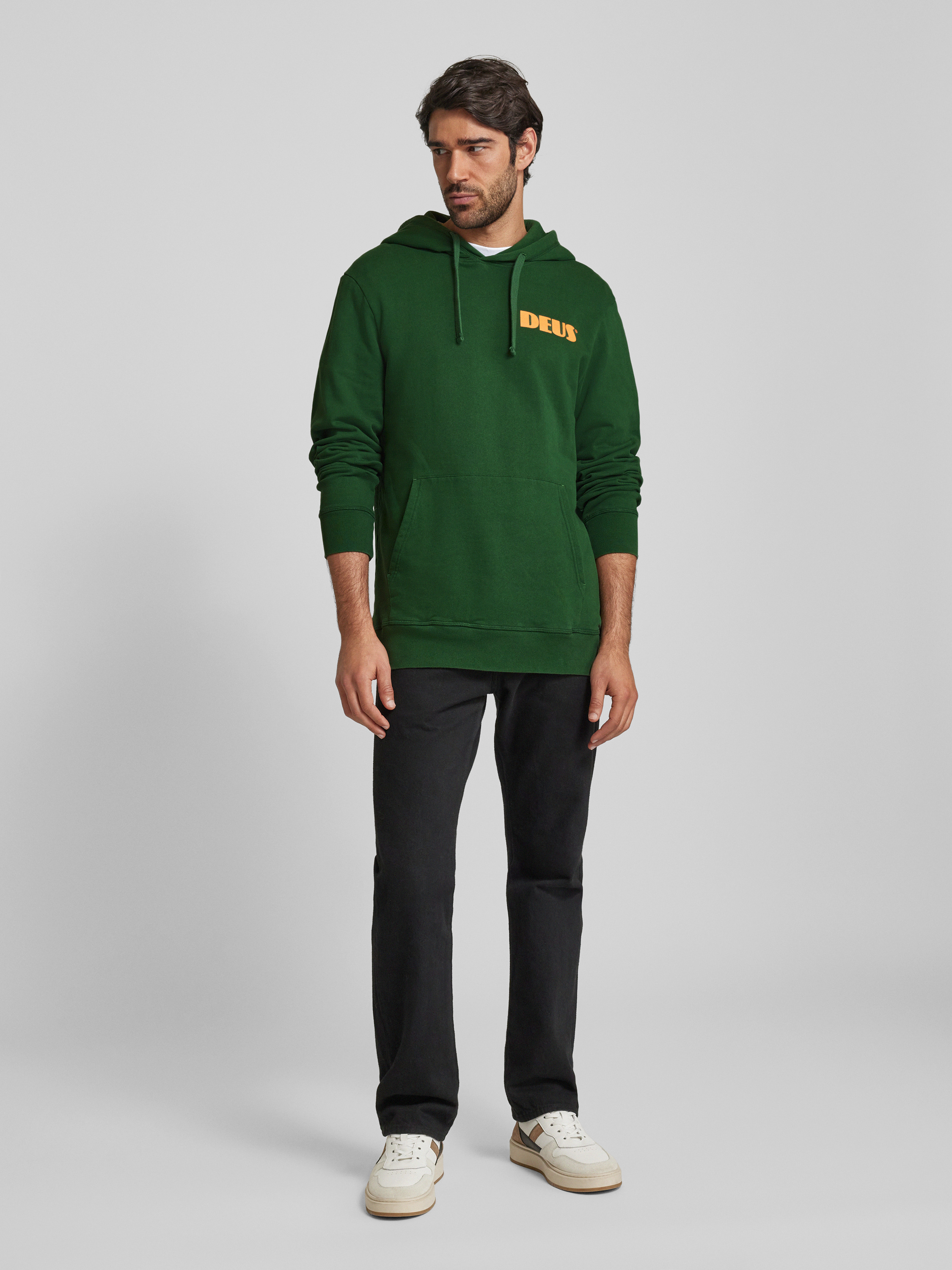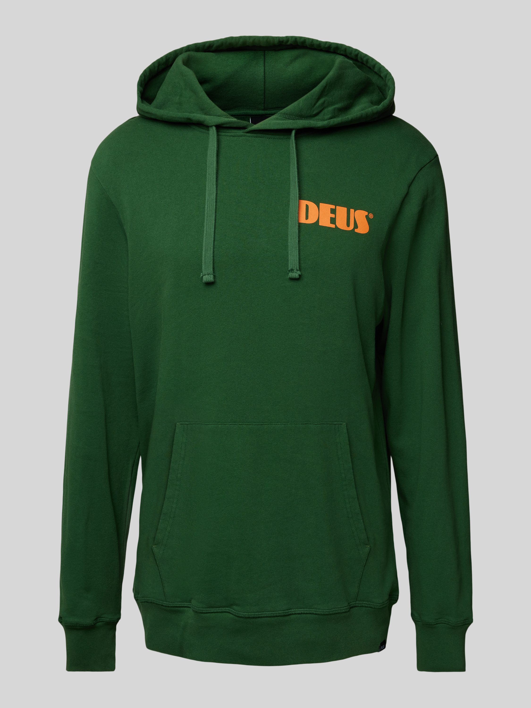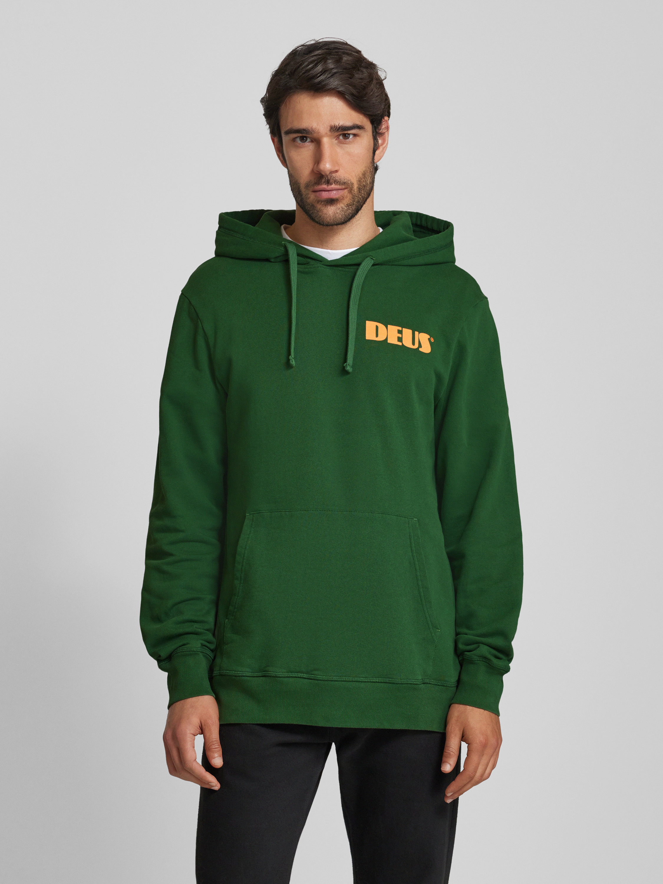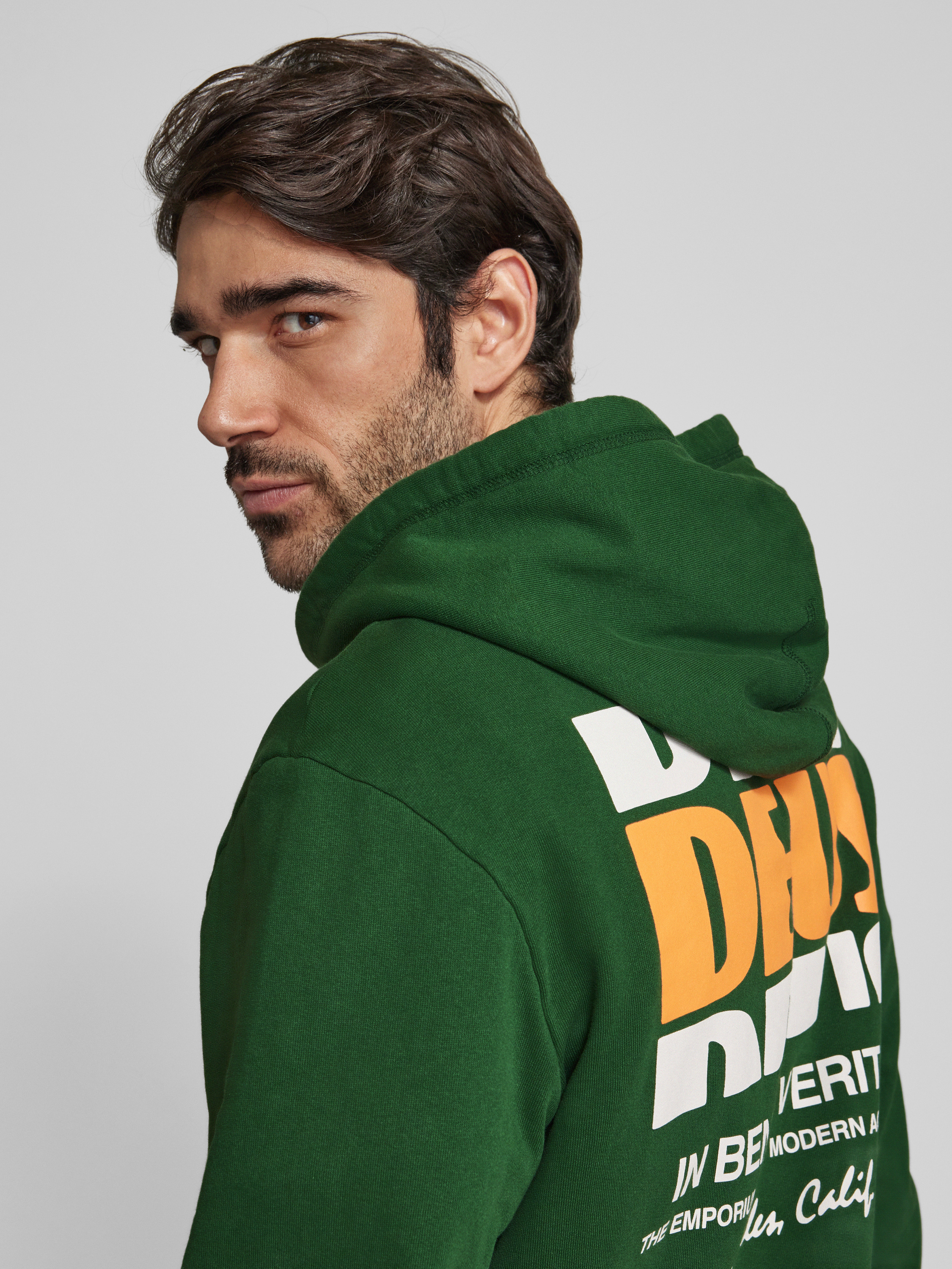 Bluza z kapturem o kroju oversized z nadrukiem z logo - ciemnozielony