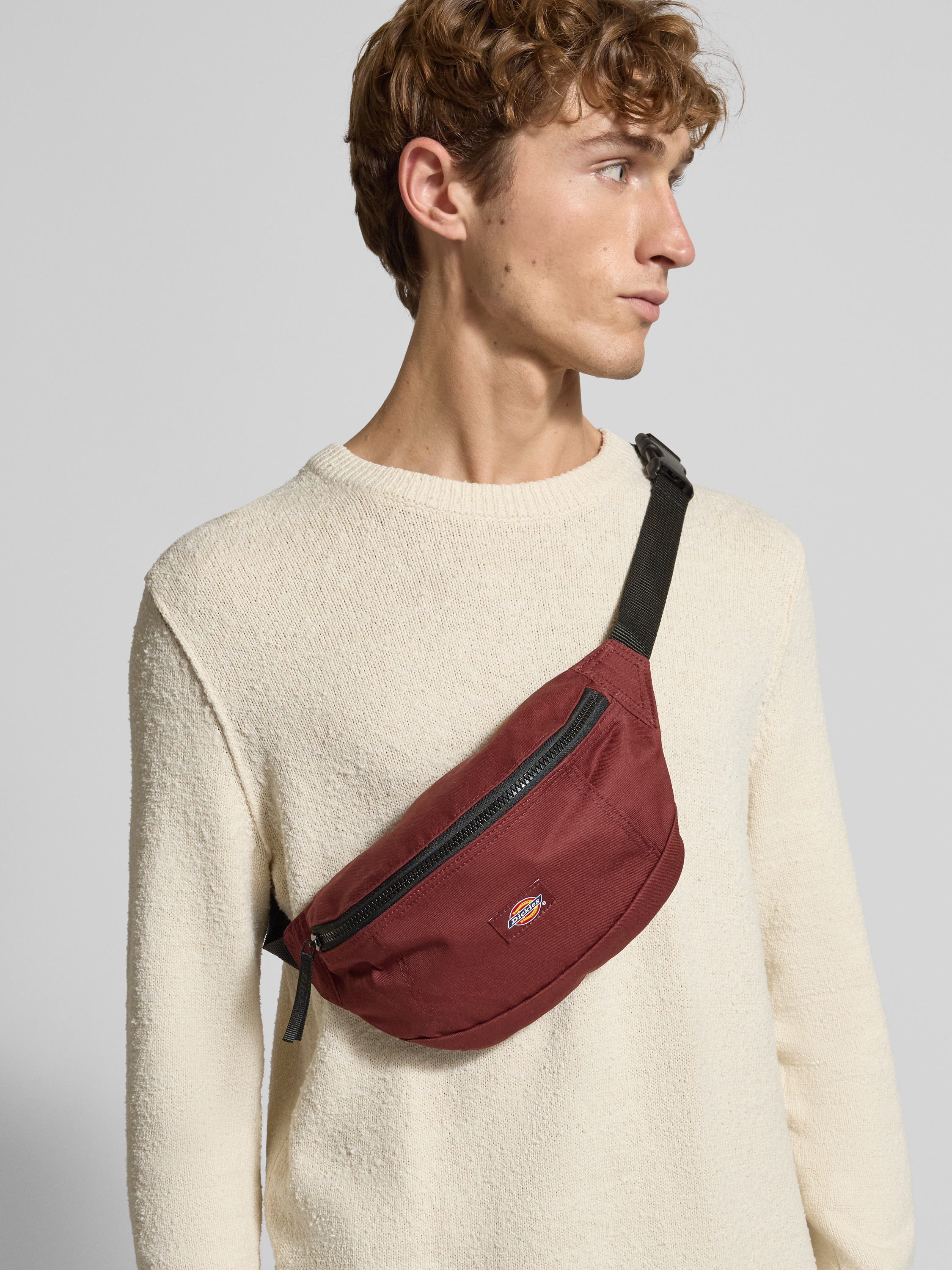 Saszetka nerka z detalem z logo - ciemnoczerwony