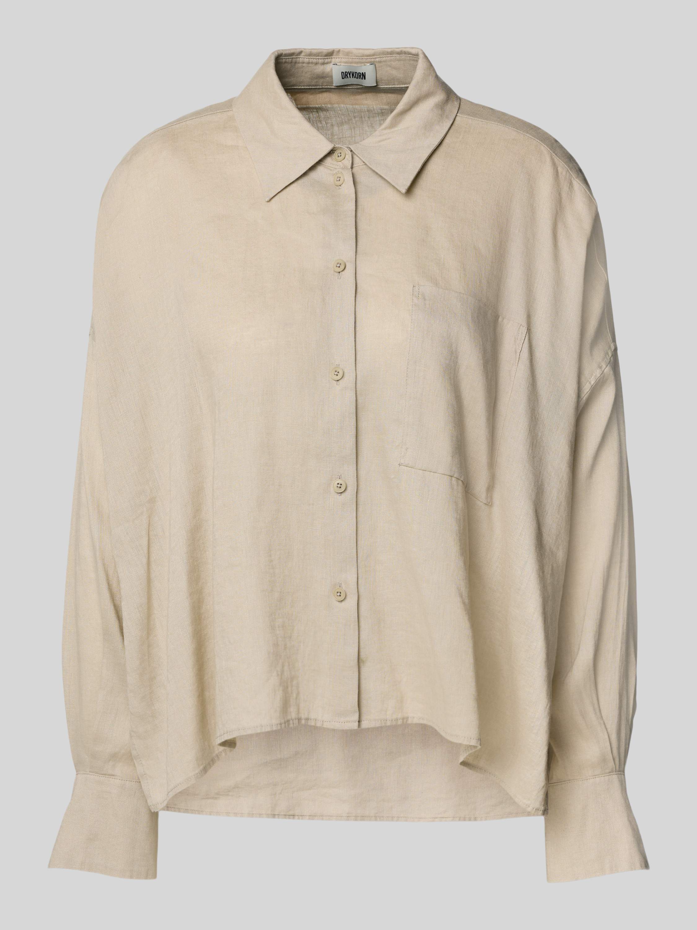 Bluzka lniana o kroju relaxed fit z kieszenią na piersi model ‘NAMIDA’ - piaskowy