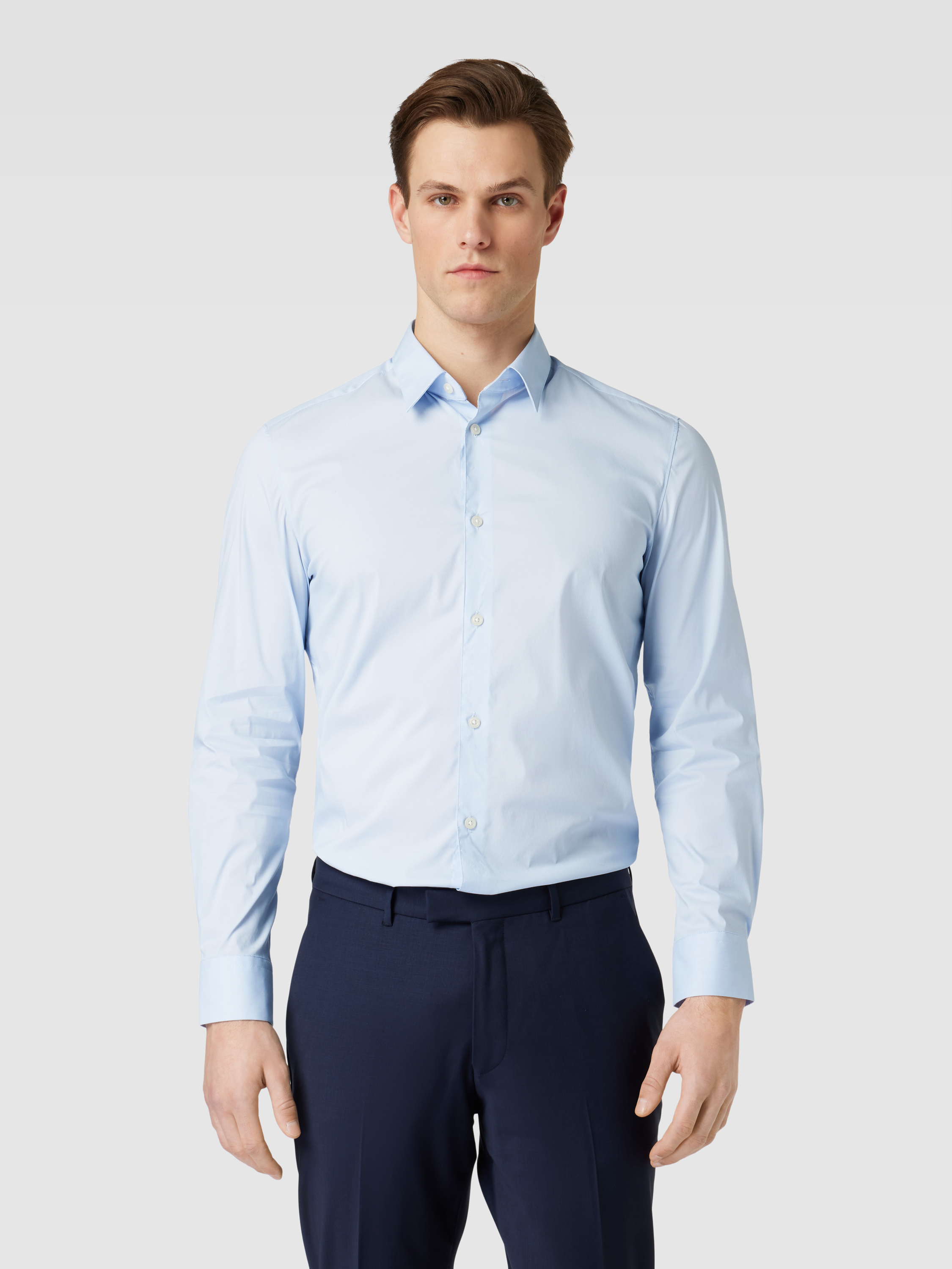 Koszula biznesowa z kołnierzykiem typu kent w jednolitym kolorze - błękitny