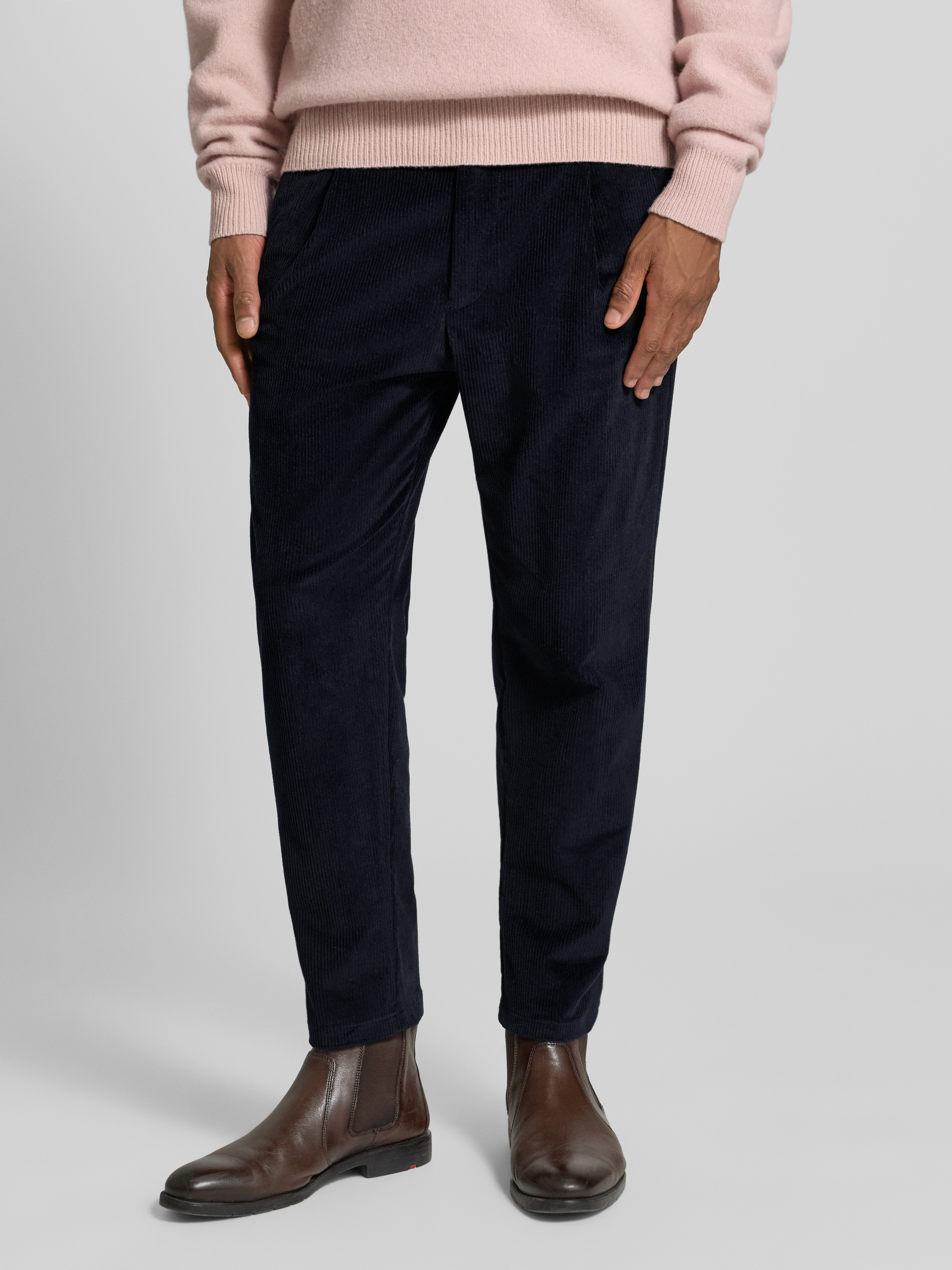 Spodnie sztruksowe z wpuszczanymi kieszeniami w stylu francuskim - granatowy