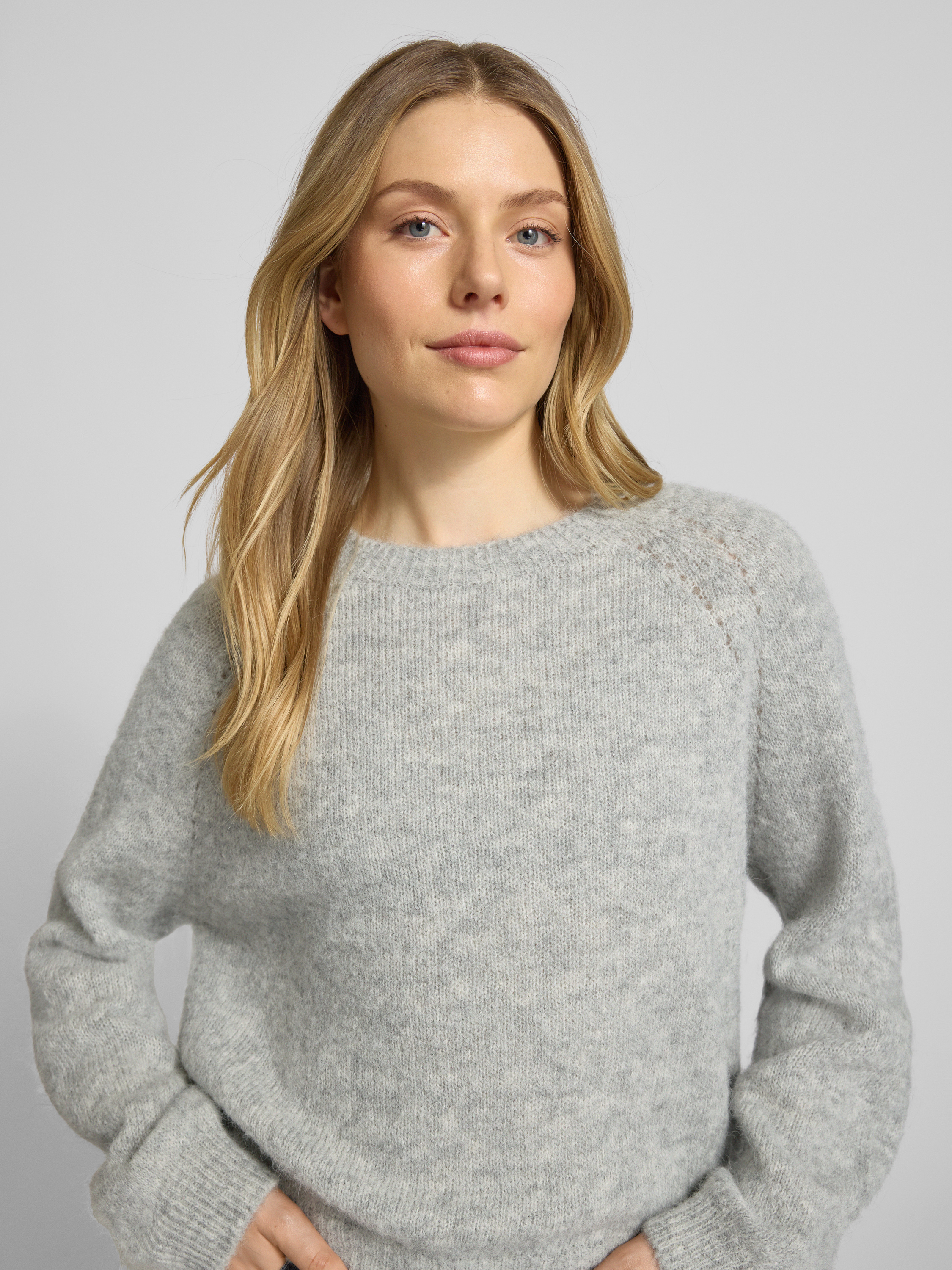 Sweter z dzianiny z mieszanki wełny z alpaki model ‘PEMIRI’ - jasnoszary melanż