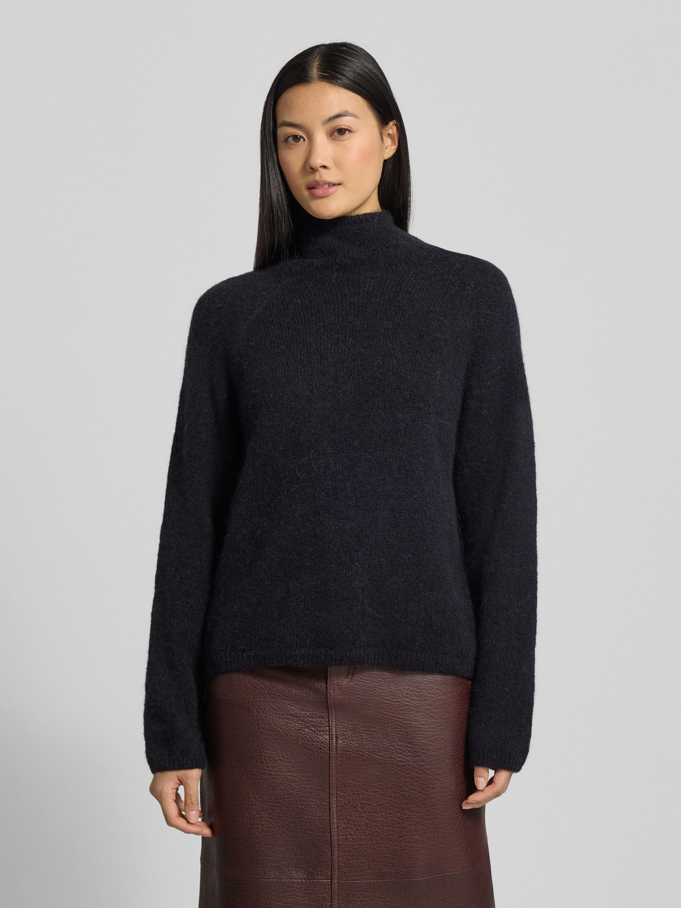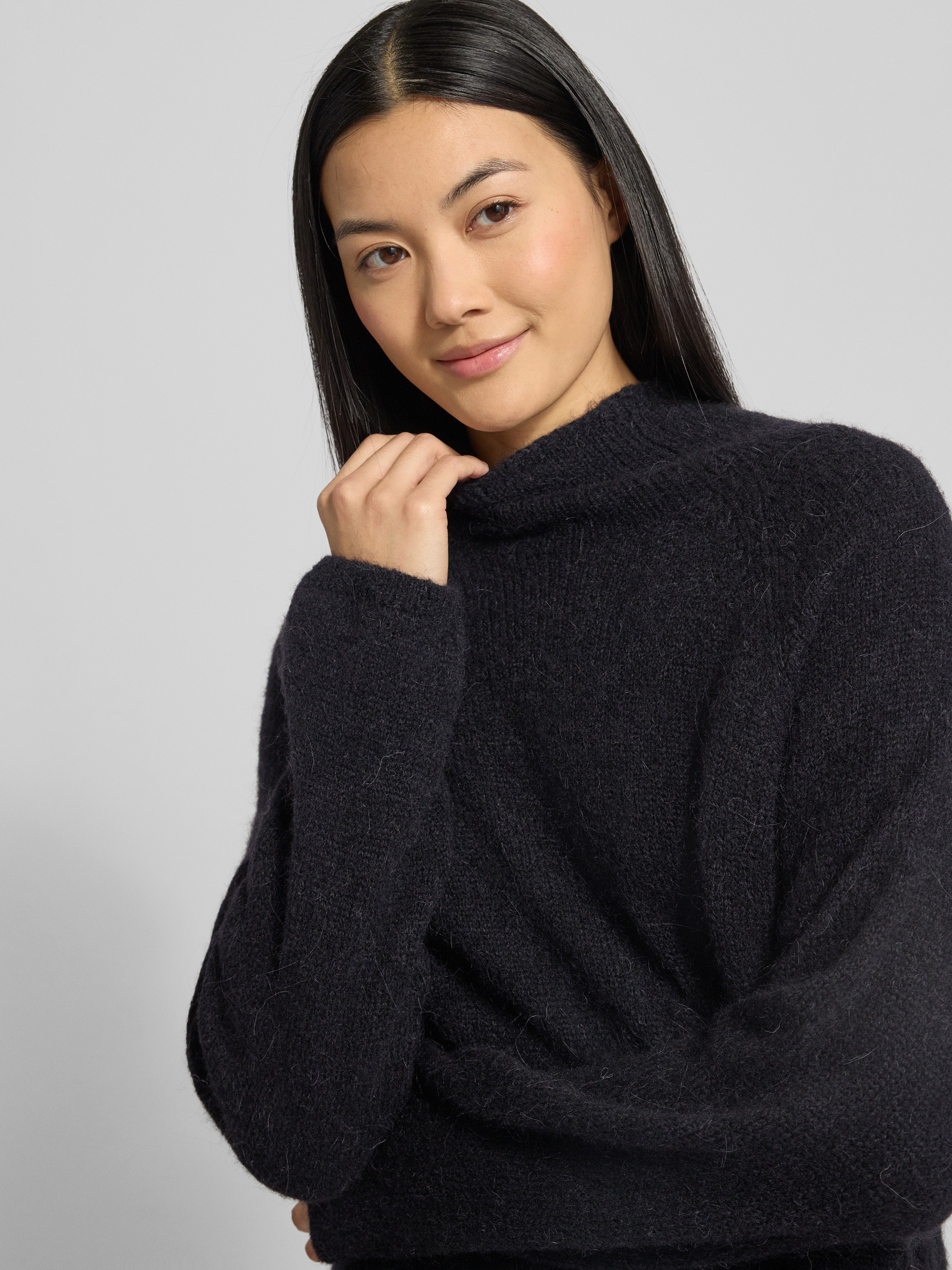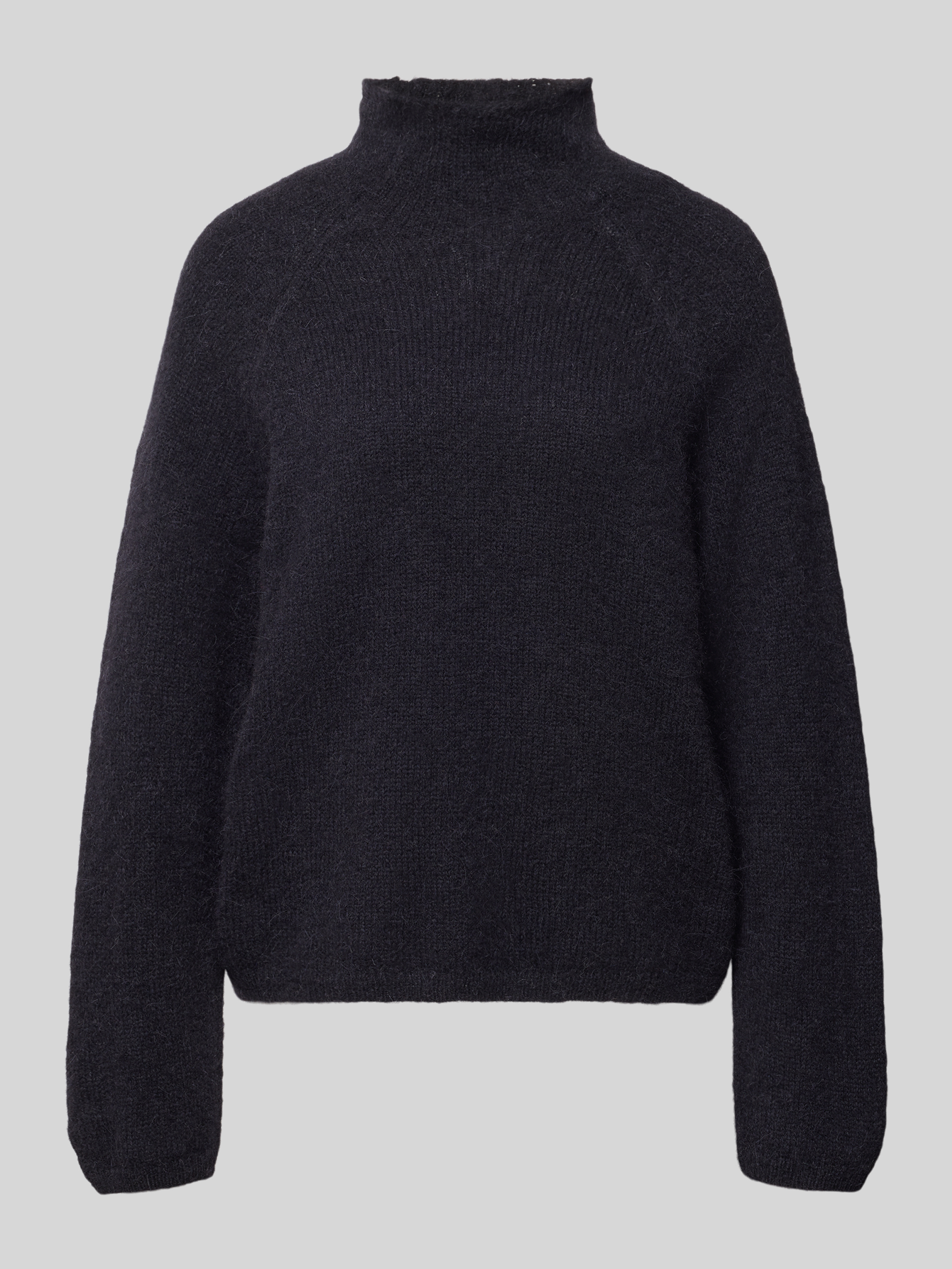 Sweter z dzianiny z prążkowanymi wykończeniami model ‘SARWEN’ - czarny
