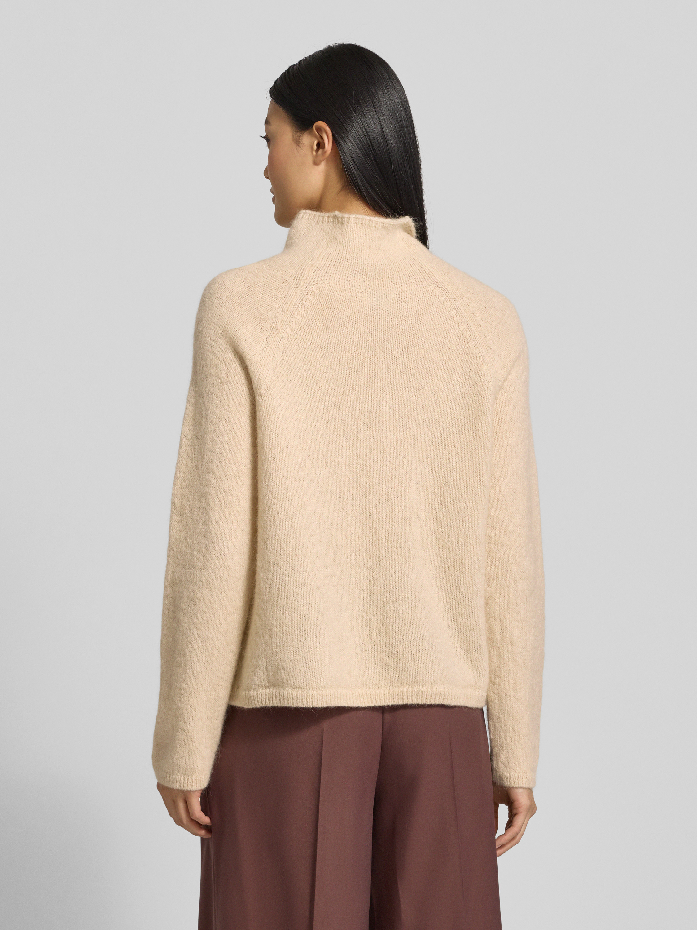Sweter z dzianiny z prążkowanymi wykończeniami model ‘SARWEN’ - piaskowy melanż