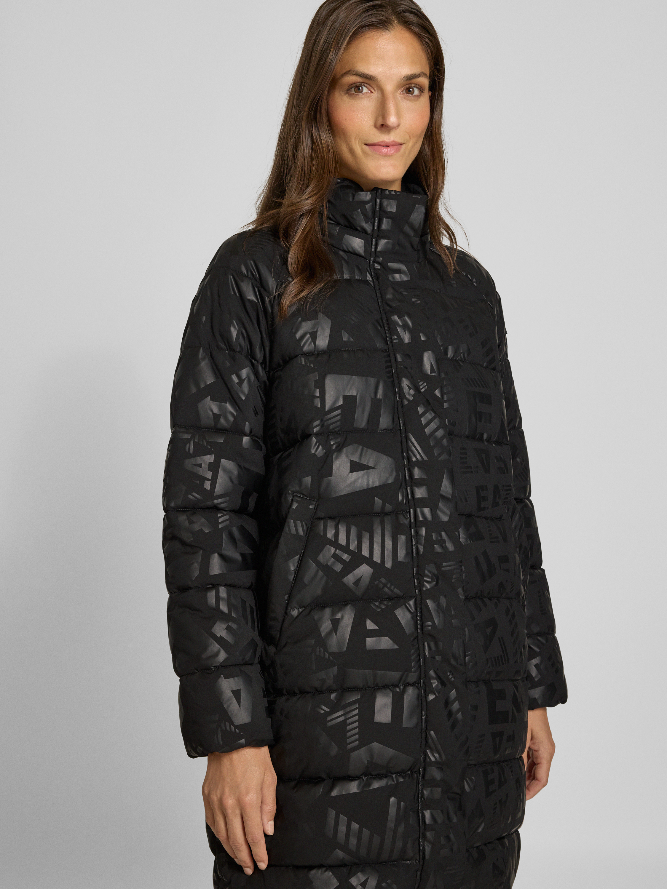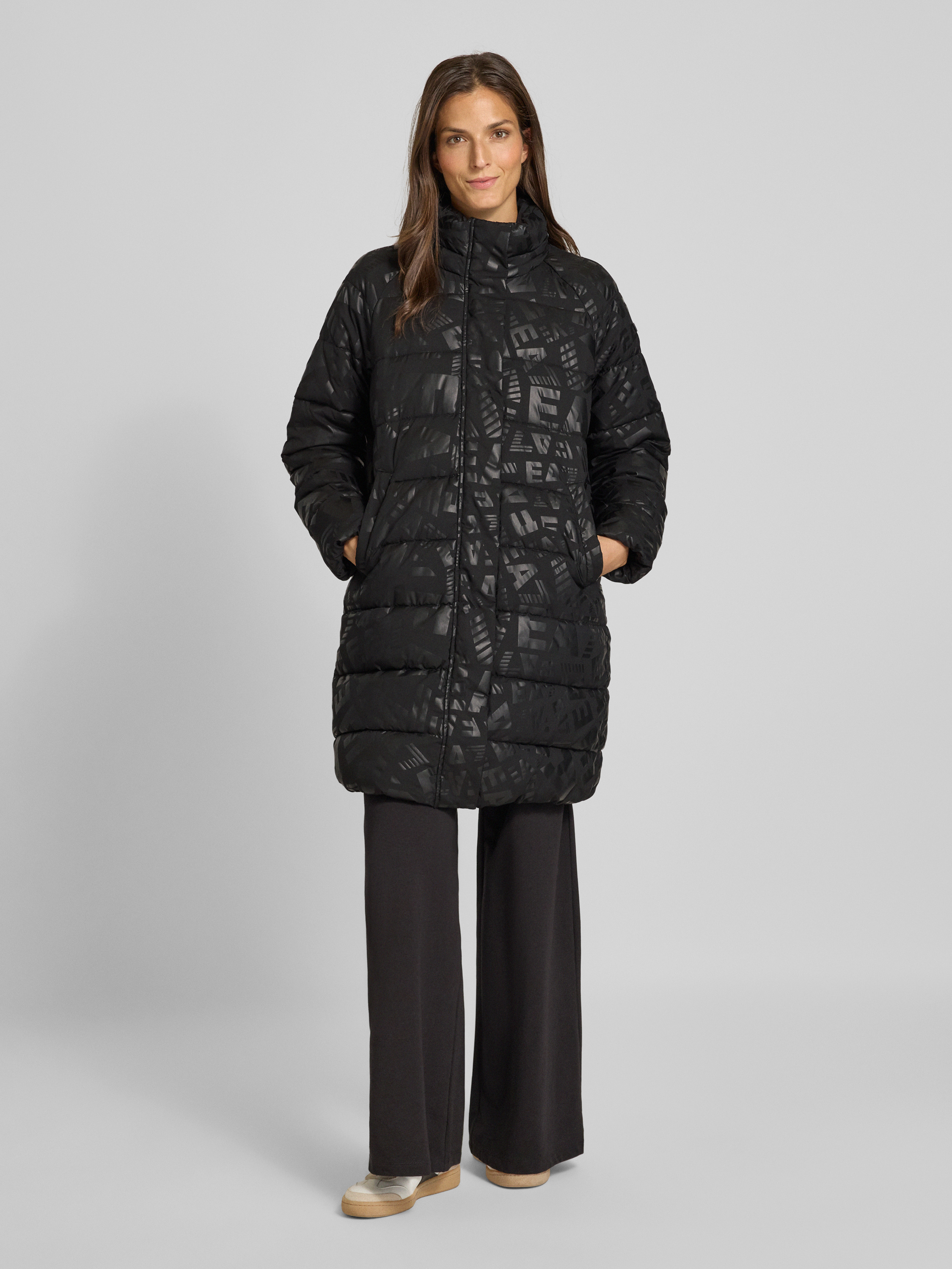 Płaszcz pikowany o kroju regular fit z nadrukiem z logo na całej powierzchni model ‘Caban’ - czarny