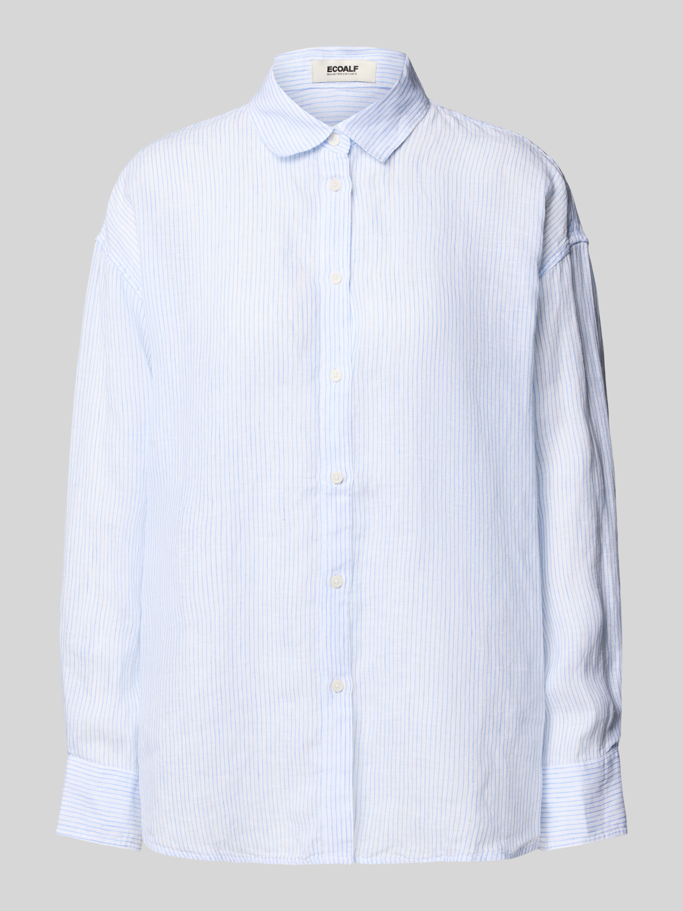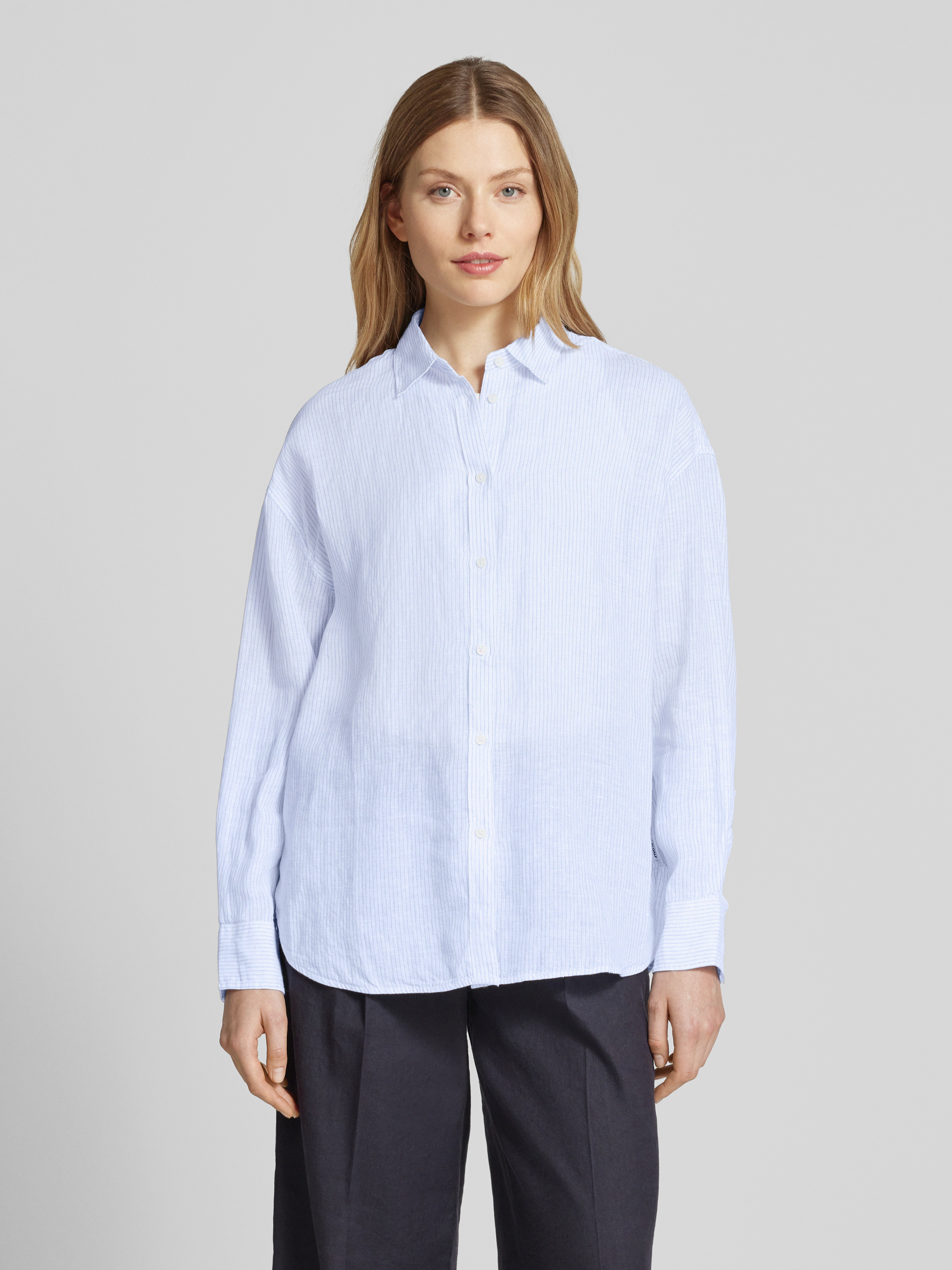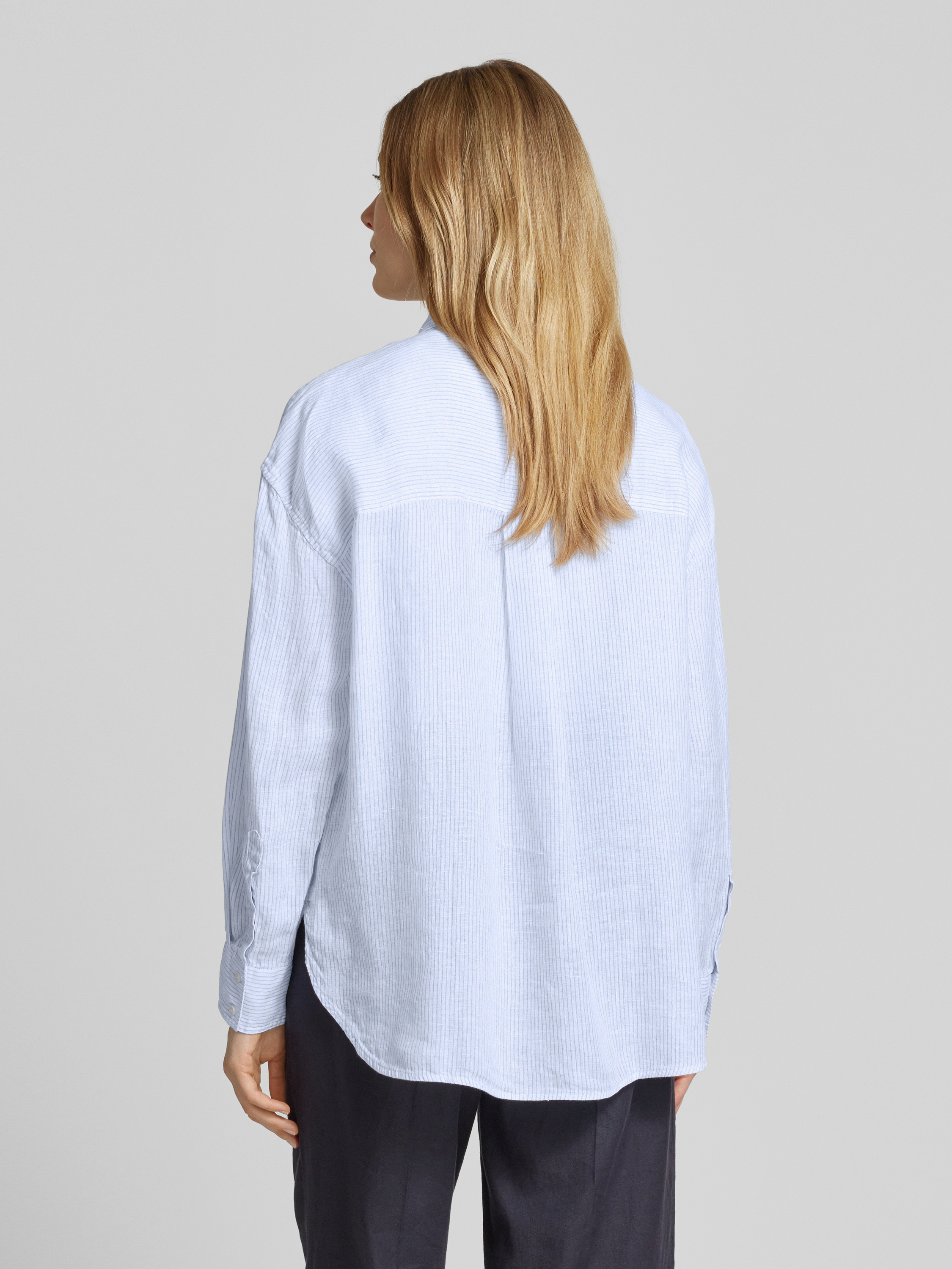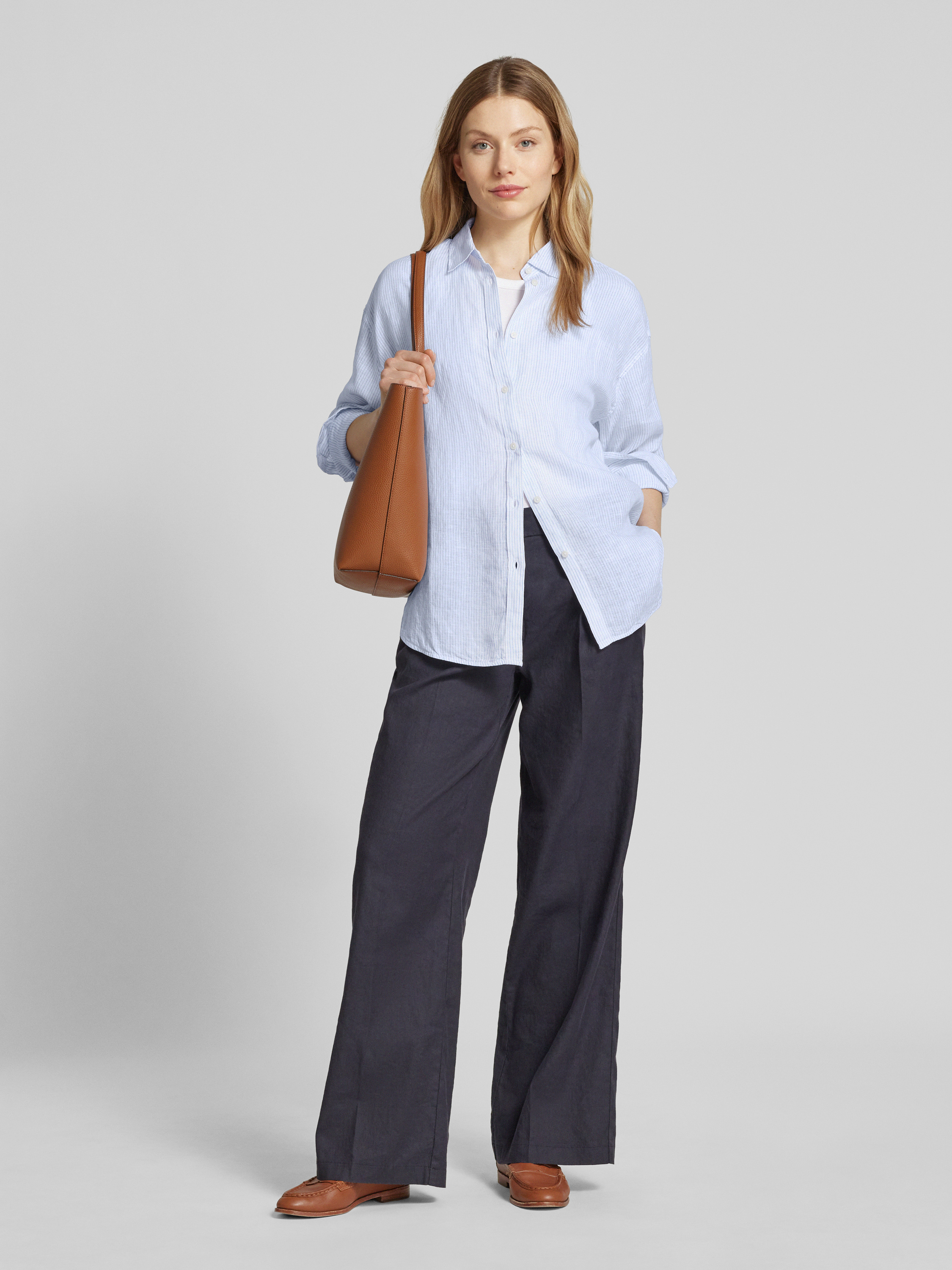 Bluzka koszulowa lniana o kroju relaxed fit z listwą guzikową na całej długości - biały