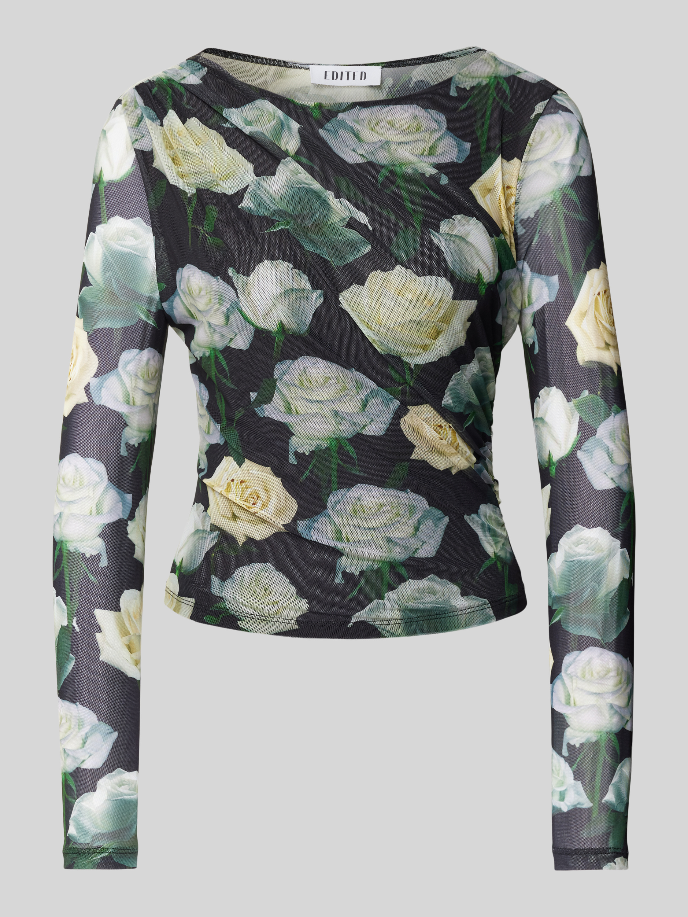 Bluzka z długim rękawem i plisami model ‘Samira’ - czarny