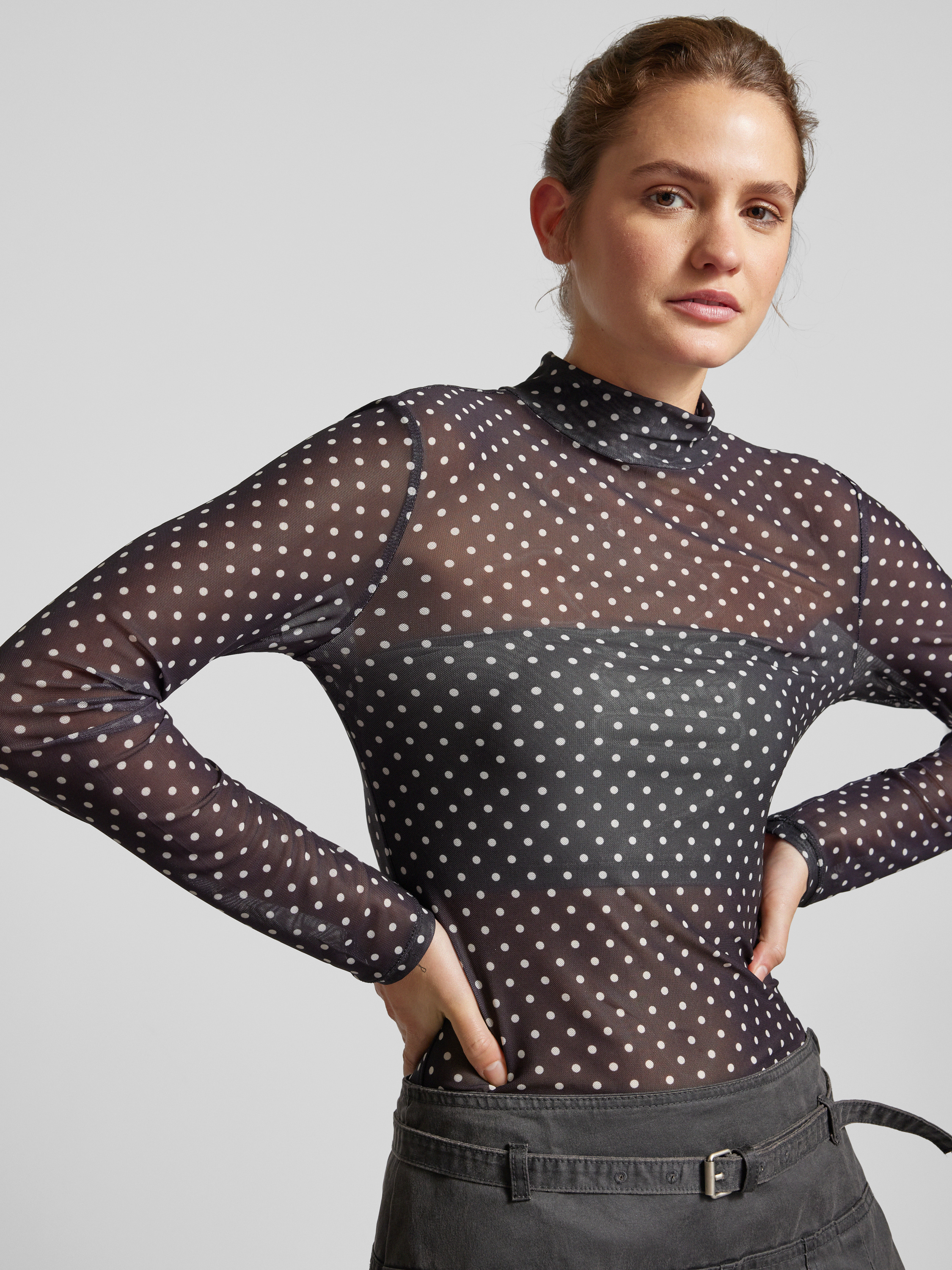 Bluzka z długim rękawem i stójką model ‘Flore’ - czarny